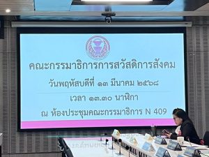 วันที่ 13 มีนาคม 2568 เวลา 13.30 น. นายบุญสงค์ ทัพชัยยุทธ์ ปลัดกระทรวงแรงงาน มอบหมายให้ นายณัฐวุฒิ ภัทรประยูร จัดหางานจังหวัดร้อยเอ็ด รักษาการในตำแหน่งที่ปรึกษาวิชาการแรงงาน ร่วมประชุม กับคณะกรรมาธิการการสวัสดิการสังคม สภาผู้แทนราษฎร เพื่อให้ข้อมูล ข้อเท็จจริง หรือแสดงความคิดเห็น ที่เป็นประโยชน์ ต่อการพิจารณาในประเด็นเกี่ยวกับแนวทางการจัดทำแผนงบประมาณ การจัดสรร และแผนการใช้จ่ายงบประมาณ ประจำปีงบประมาณ พ.ศ.2569 เพื่อเตรียมความพร้อมขับเคลื่อนการดำเนินงานด้านสวัสดิการสังคม ตามภารกิจของหน่วยงาน ร่วมกับหน่วยงานที่เกี่ยวข้อง