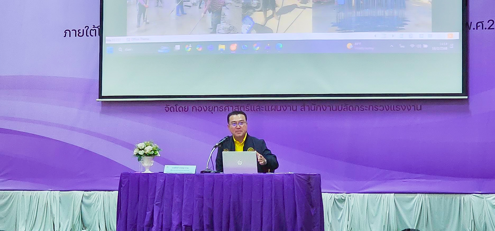 ปลัดกระทรวงแรงงาน มอบ รักษาการฯ รองปลัดกระทรวงแรงงาน บรรยายหัวข้อ การถอดบทเรียนช่วยเหลือผู้ประสบภัย “เชียงรายโมเดล” แก่ 5 เสือแรงงาน 14 จังหวัดภาคใต้