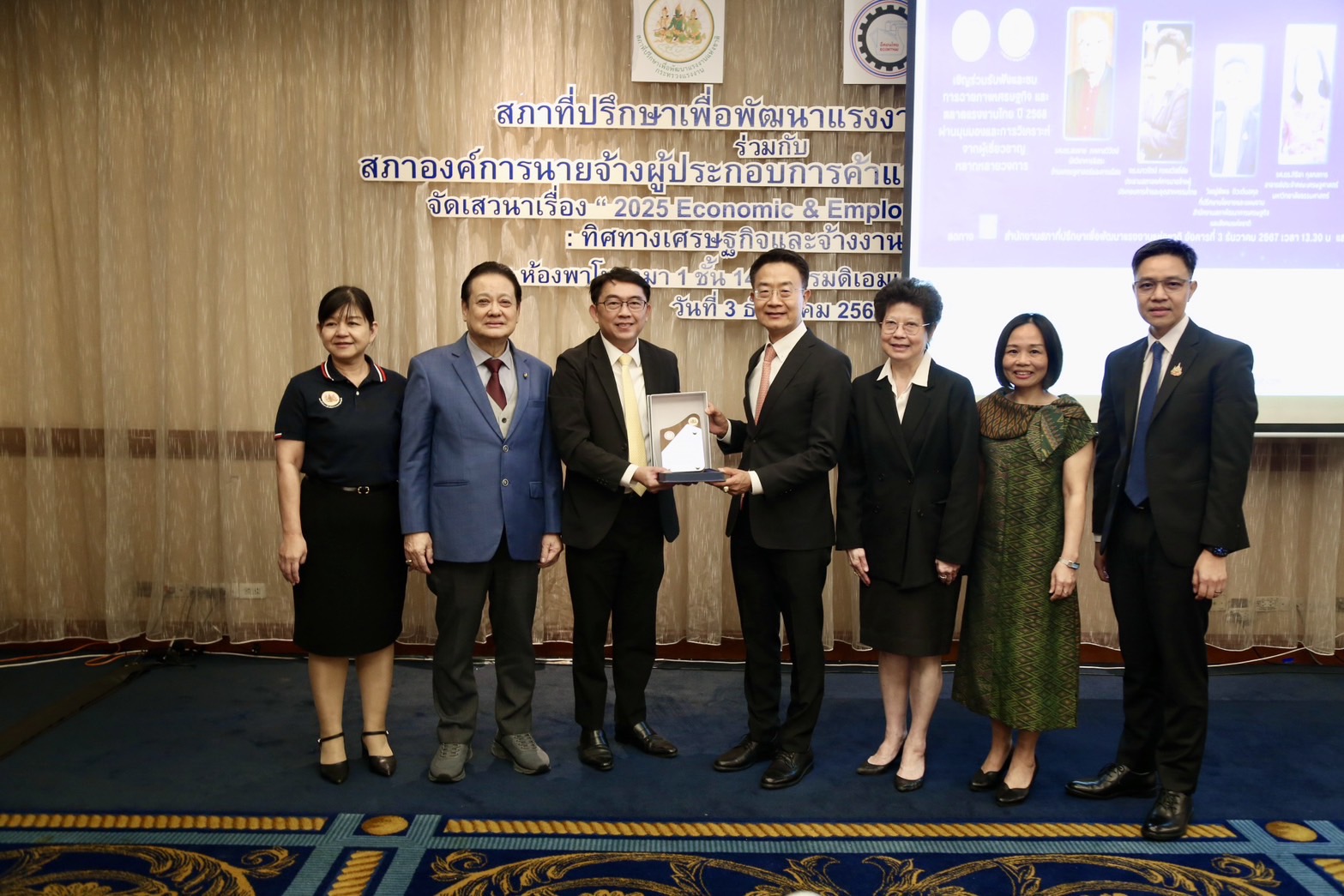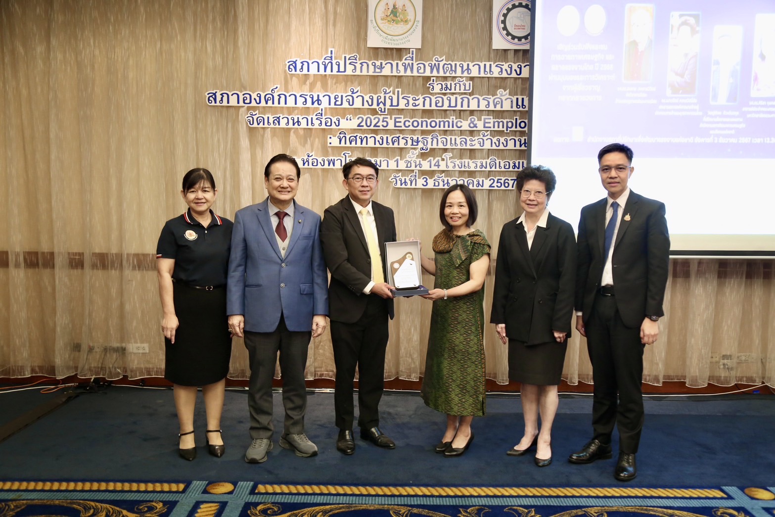 วันที่ 3 ธันวาคม 2567 น. เวลา 13.30 น. นายบุญสงค์ ทัพชัยยุทธ์ ปลัดกระทรวงแรงงาน มอบหมายให้ นายณัฐวุฒิ ภัทรประยูร จัดหางานจังหวัดร้อยเอ็ด รักษาการในตำแหน่งที่ปรึกษาวิชาการแรงงาน เข้าร่วมการสัมมนาทางวิชาการทิศทางเศรษฐกิจและการจ้างงานปี 2568 (2025 : Economic & Employment Trend Forum) ณ ห้องประชุม พาโนรามา ชั้น 14 โรงแรม ดิเอมเมอรัลด์ กรุงเทพมหานคร