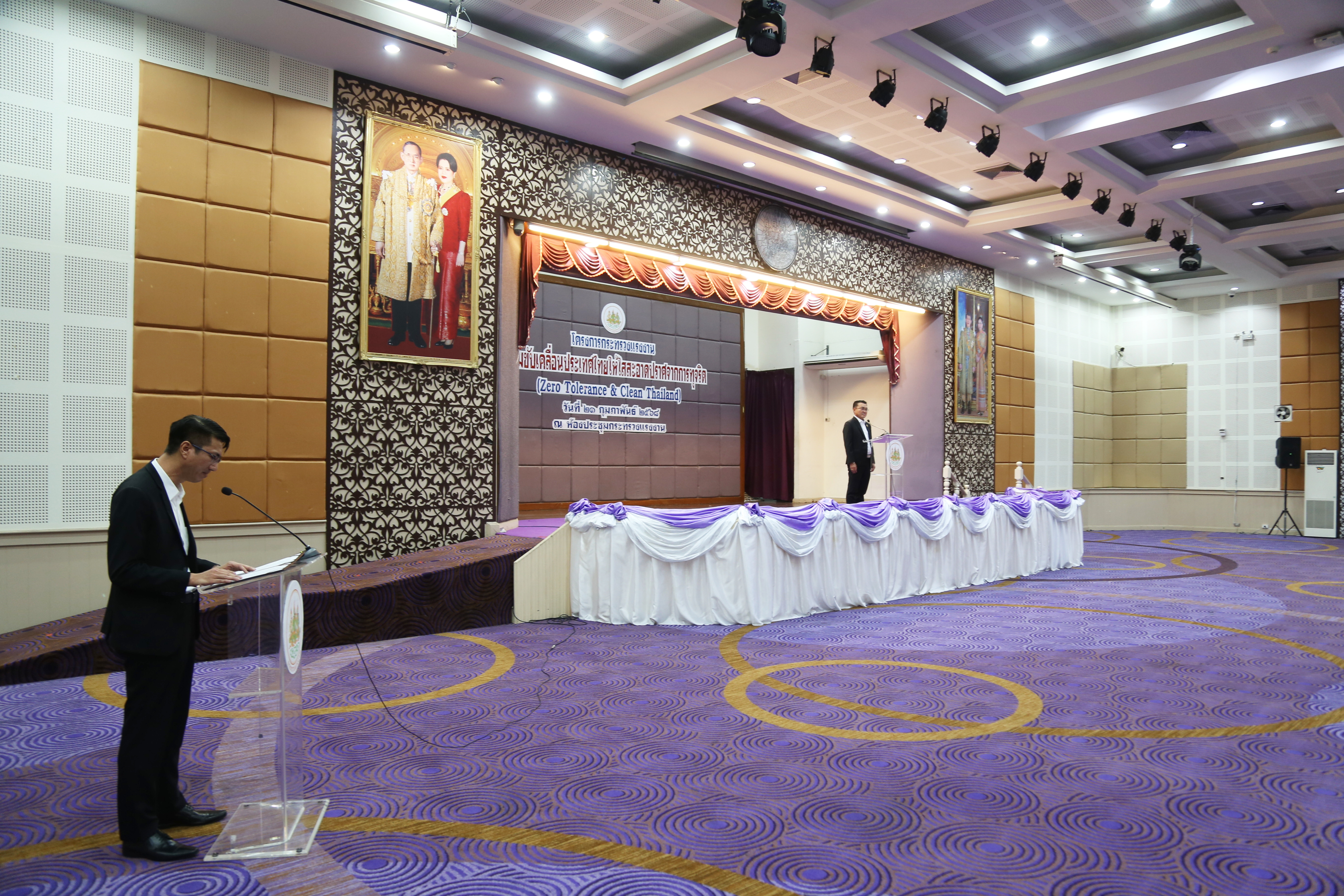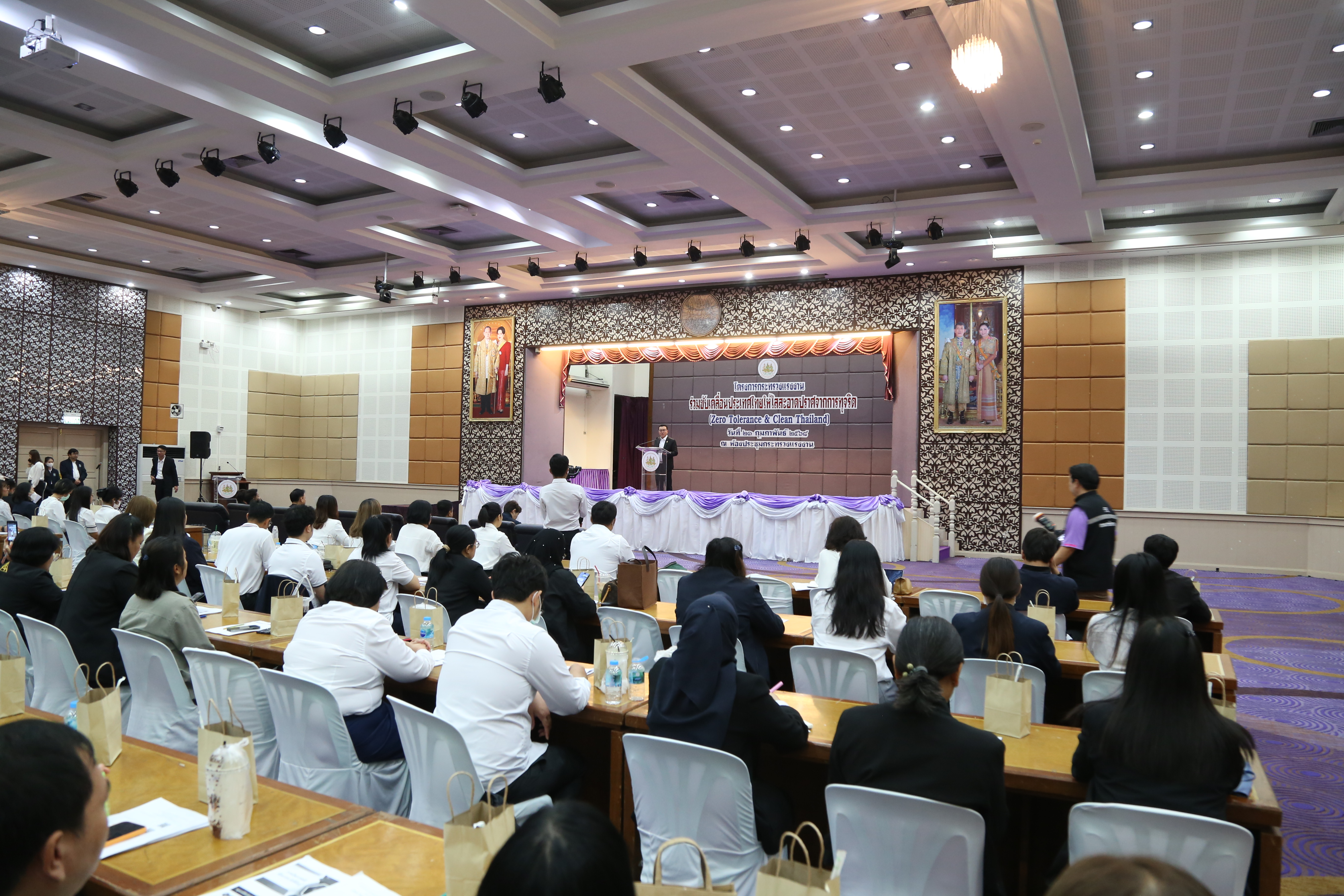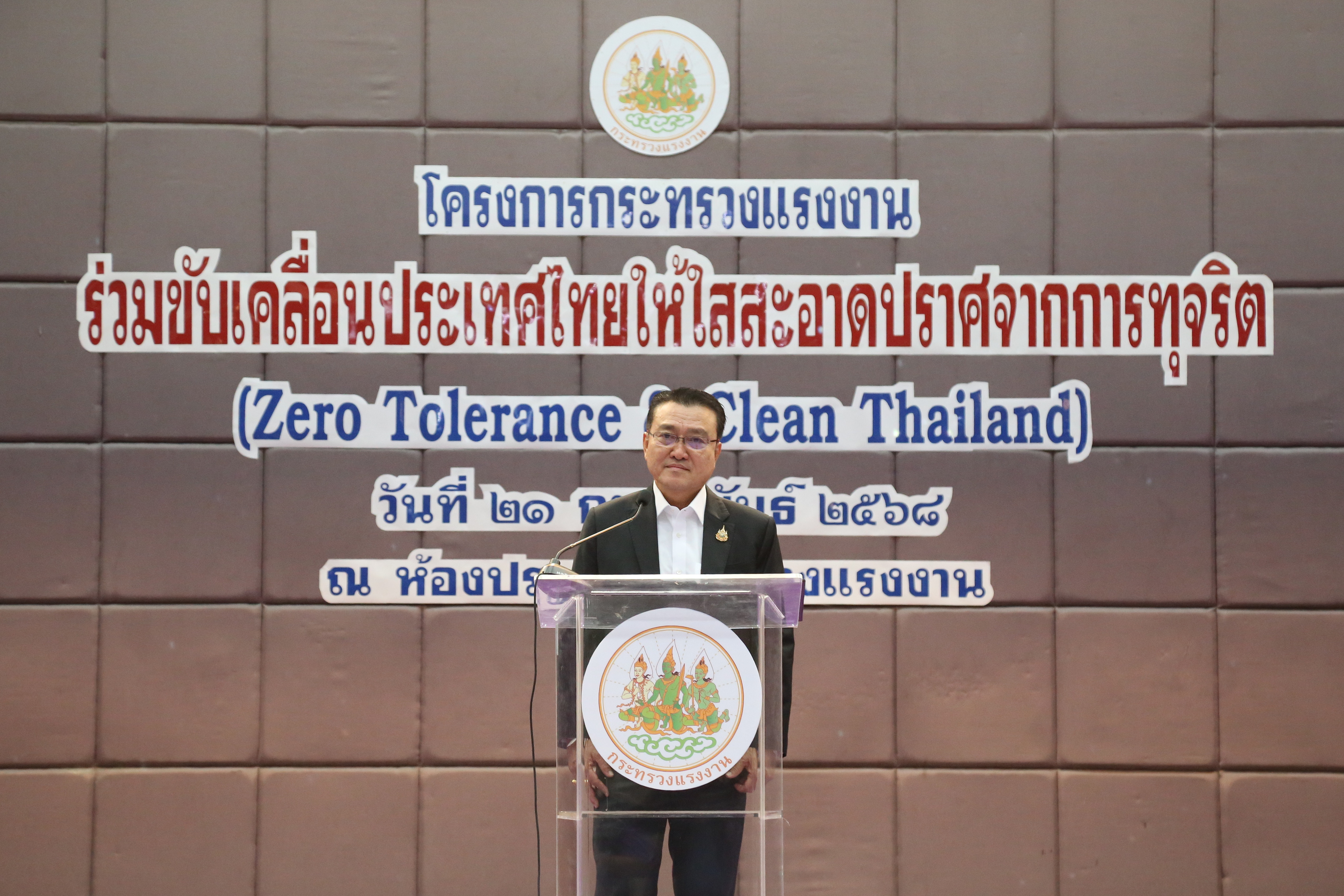 วันที่ 21 กุมภาพันธ์ 2568 เวลา 08.45 น. นายบุญสงค์ ทัพชัยยุทธ์ ปลัดกระทรวงแรงงาน มอบหมายให้ นายสันติ นันตสุวรรณ ผู้ตรวจราชการกระทรวงแรงงาน รักษาราชการแทน รองปลัดกระทรวงแรงงาน เป็นประธานพิธีเปิดโครงการกระทรวงแรงงานร่วมขับเคลื่อนประเทศไทยให้ใสสะอาด ปราศจากการทุจริต (Zero Tolerance & Clean Thailand) โดยมี นางสาวกรจิรัฏฐ์ พงจันทร์ศธร ผู้ช่วยปลัดกระทรวงแรงงาน ร่วมเป็นเกียรติในพิธีเปิดโครงการ รวมถึงข้าราชการและเจ้าหน้าที่ส่วนกลางจากทุกหน่วยงานในสังกัดกระทรวงแรงงาน เข้ารวมการอบรมจำนวน 100 คน ณ ห้องประชุมกระทรวงแรงงาน ชั้น 5 อาคารกระทรวงแรงงาน