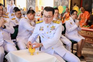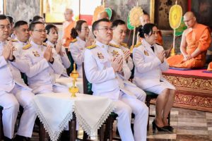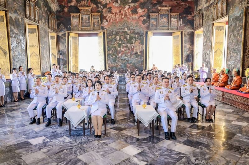 วันที่ 13 มกราคม 2568 เวลา 09.00 น. นายบุญสงค์ ทัพชัยยุทธ์ ปลัดกระทรวงแรงงาน มอบหมายให้ นายสันติ นันตสุวรรณ ผู้ตรวจราชการกระทรวงแรงงาน รักษาราชการแทน รองปลัดกระทรวงแรงงาน ร่วมพิธีเจริญพระพุทธมนต์ถวายพระราชกุศล เฉลิมพระเกียรติพระบาทสมเด็จพระเจ้าอยู่หัว เนื่องในโอกาสพระราชพิธีสมมงคลพระชนมายุเท่าพระบาทสมเด็จพระพุทธยอดฟ้าจุฬาโลกมหาราช โดยมี นางสาวชมภารี ชมภูรัตน์ ผู้ตรวจราชการกระทรวงดิจิทัลเพื่อเศรษฐกิจและสังคม นายวิชิต อินทรเจริญ รองอธิบดีกรมการจัดหางาน นายสมบัติ โพธิวัฒน์ ผู้ตรวจราชการกรม กรมพัฒนาฝีมือแรงงาน นายศักดิ์ศิลป์ ตุลาธร หัวหน้าผู้ตรวจราชการกรม กรมสวัสดิการและคุ้มครองแรงงาน นางนงลักษณ์ กอวรกุล ผู้ตรวจราชการกรม สำนักงานประกันสังคม พร้อมด้วยข้าราชการสังกัดกระทรวงแรงงาน จำนวน 50 คน เข้าร่วมพิธีฯ ณ วัดสุทัศน์เทพวรารามราชวรมหาวิหาร เขตพระนคร กรุงเทพมหานคร