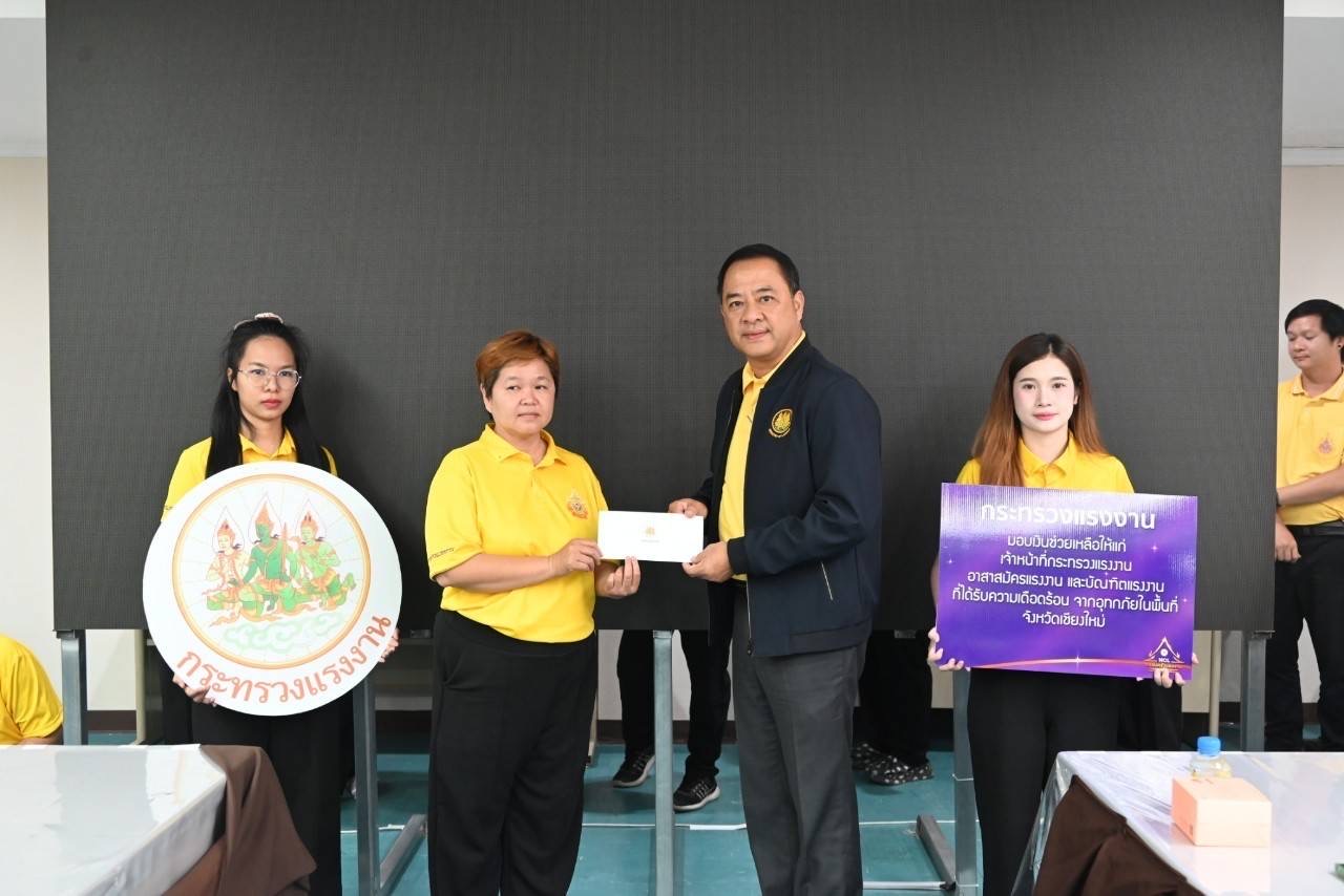 เมื่อวันที่ 9 ตุลาคม 2567 นายพิพัฒน์ รัชกิจประการ รัฐมนตรีว่าการกระทรวงแรงงาน มีความห่วงใยต่อความเป็นอยู่ของครอบครัวแรงงานที่ได้รับผลกระทบจากอุทกภัย โดยนายบุญสงค์ ทัพชัยยุทธ์ ปลัดกระทรวงแรงงาน ได้มอบหมายให้ นายสมาสภ์ ปัทมะสุคนธ์ หัวหน้าผู้ตรวจราชการกระทรวงแรงงาน รักษาราชการแทนรองปลัดกระทรวงแรงงาน ลงพื้นที่ตรวจเยี่ยมให้กำลังใจ พร้อมมอบเงินและถุงยังชีพช่วยเหลือบุคลากรกระทรวงแรงงาน อาสาสมัครแรงงาน และบัณฑิตแรงงานที่ได้รับผลกระทบจากสถานการณ์อุทกภัยในพื้นที่ จังหวัดเชียงใหม่ และจังหวัดลำปาง รวมจำนวน 82 ราย เพื่อสร้างขวัญกำลังใจและบรรเทาความเดือดร้อนในเบื้องต้น “ด้วยรักและห่วงใยจากใจครอบครัวแรงงาน”