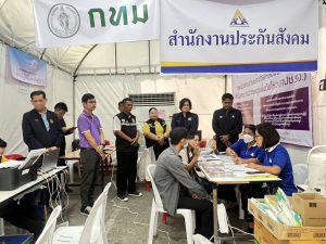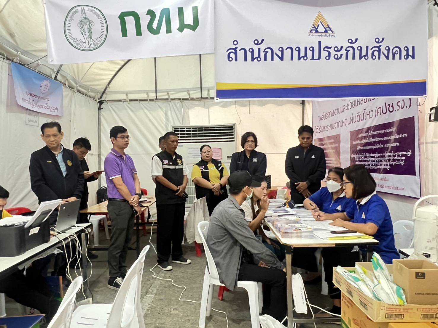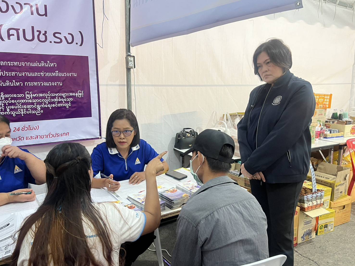 วันที่ 18 เมษายน 2568 นายบุญสงค์ ทัพชัยยุทธ์ ปลัดกระทรวงแรงงาน มอบหมายให้ นางสาวบุณยวีร์ ไขว้พันธุ์ หัวหน้าผู้ตรวจราชการกระทรวงแรงงาน ลงพื้นที่เยี่ยมให้กำลังใจเจ้าหน้าที่ผู้ปฏิบัติงาน เพื่อสร้างขวัญกำลังใจ และติดตามการให้ความช่วยเหลือด้านสิทธิประโยชน์แรงงาน บริเวณศูนย์ประสานงานและช่วยเหลือแรงงาน ผู้ได้รับผลกระทบจากเหตุแผ่นดินไหว (ศปช.รง.) และจุดรับแจ้งสิทธิประโยชน์ประกันสังคมผู้ได้รับผลกระทบจากเหตุโครงสร้างอาคารของโครงการก่อสร้างอาคารสำนักงานการตรวจเงินแผ่นดิน ถนนกำแพงเพชร 2 เขตจตุจักร กรุงเทพมหานคร ณ เต็นท์สำนักงานเขตจตุจักร กทม. ด้านข้าง JJ Mall