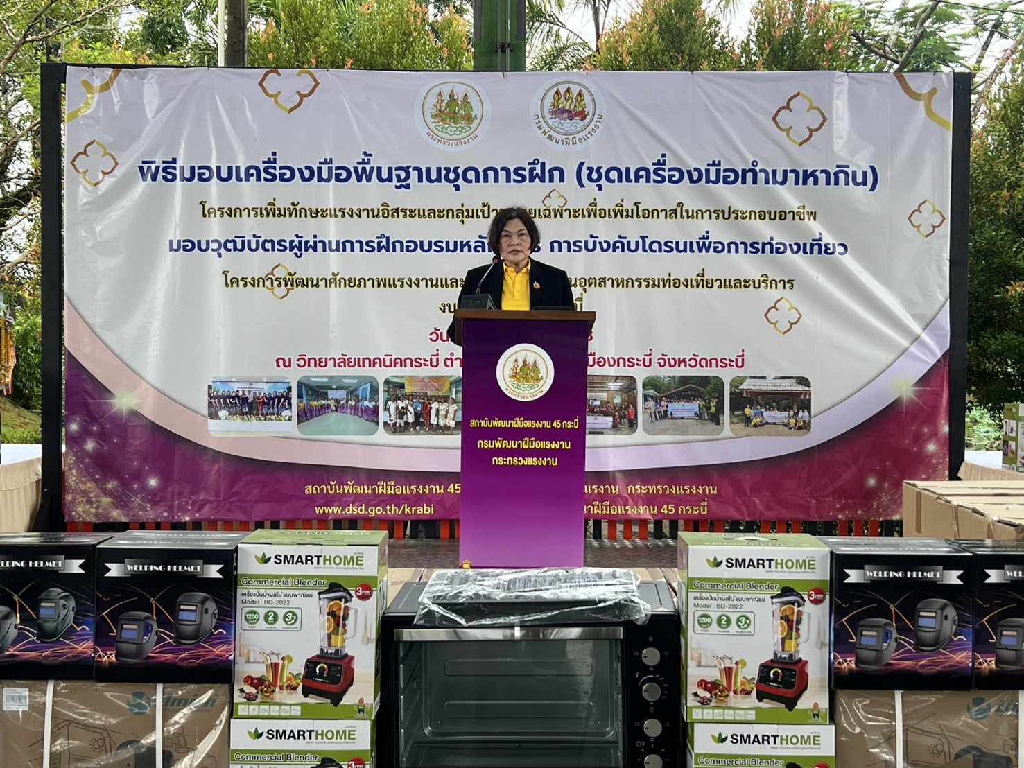 หลังจากนั้น หัวหน้าผู้ตรวจราชการกระทรวงแรงงาน ยังได้เป็นประธานมอบวุฒิบัตรผู้ผ่านการอบรมการควบคุมโดรนเพื่อการท่องเที่ยว และมอบชุดเครื่องมือพื้นฐานชุดการฝึก (ชุดเครื่องมือทำมาหากิน) จำนวน 3 สาขา ณ อาคารโดม วิทยาลัยเทคนิค และพบปะกับผู้อบรมโครงการพัฒนาศักยภาพแกนนำเครือข่ายประกันสังคม ปี 2568 ณ ห้องประชุมชัยพฤกษ์ ด้วย