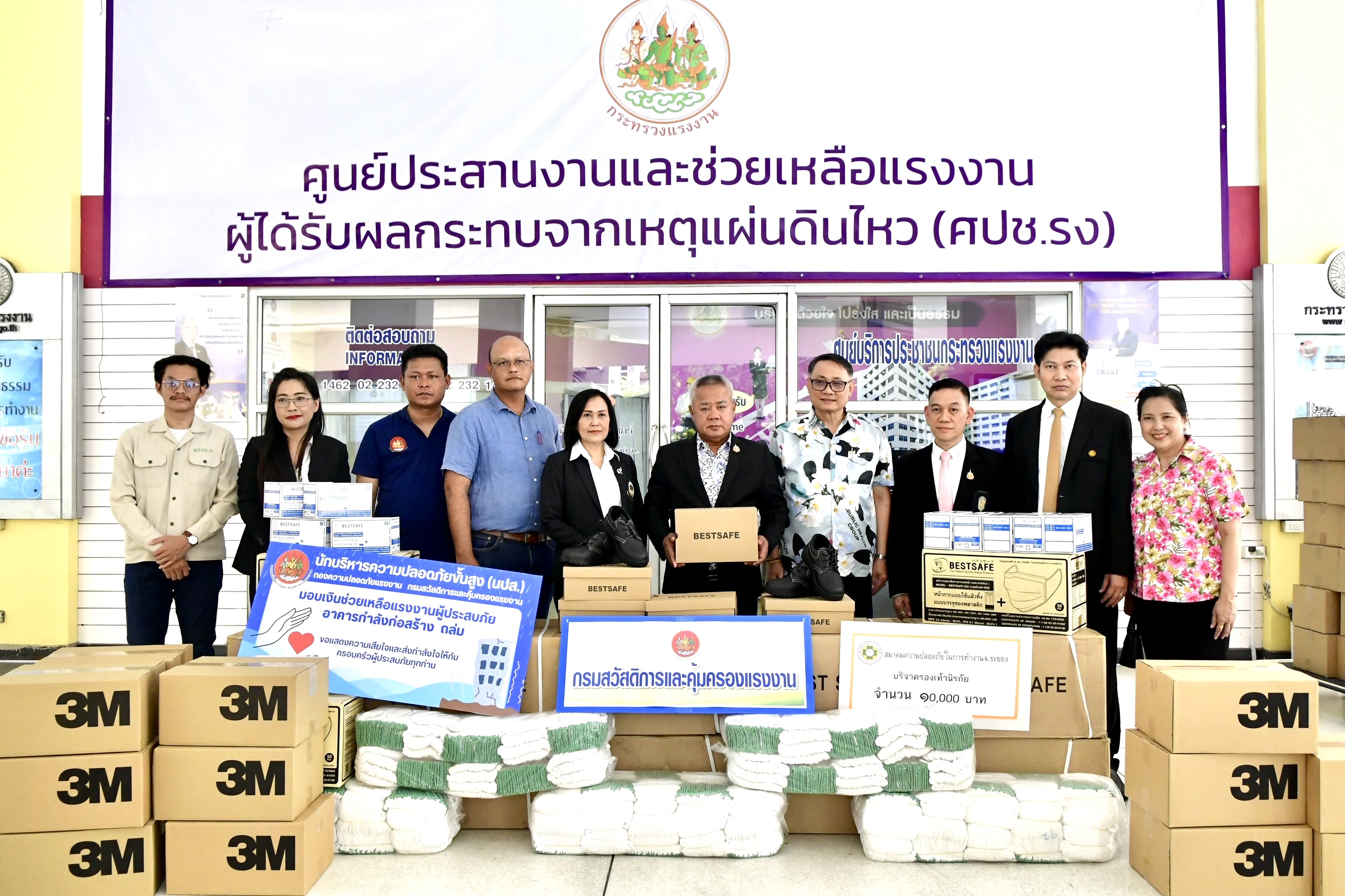 วันที่ 10 เมษายน 2568 เวลา 15.00 น.นายบุญสงค์ ทัพชัยยุทธ์ ปลัดกระทรวงแรงงาน รับมอบสิ่งของบริจาค ซึ่งกระทรวงแรงงาน โดยกรมสวัสดิการและคุ้มครองแรงงาน ร่วมกับเครือข่ายความปลอดภัยในการทำงานโดยนักบริหารความปลอดภัยขั้นสูง รุ่น 1- 6 ร่วมกับสมาคม จป.จังหวัดระยอง ที่ได้นำรองเท้านิรภัย จำนวน 100 คู่ ถุงมือ 50 โหล และหน้ากากอนามัย 3 ลัง จำนวน 1,500 ชิ้น เพื่อสนับสนุนการปฏิบัติงานของเจ้าหน้าที่ที่ปฏิบัติงานช่วยเหลือแรงงานผู้ได้รับผลกระทบจากเหตุแผ่นดินไหว อาคารกำลังก่อสร้าง สตง. ถล่ม โดยมี เรือเอก สาโรจน์ คมคาย อธิบดีกรมสวัสดิการและคุ้มครองแรงงาน คณะกรรมการประกันสังคม และหน่วยงานที่เกี่ยวข้อง ร่วมรับมอบ ณ บริเวณโถงชั้นล่าง อาคารกระทรวงแรงงาน