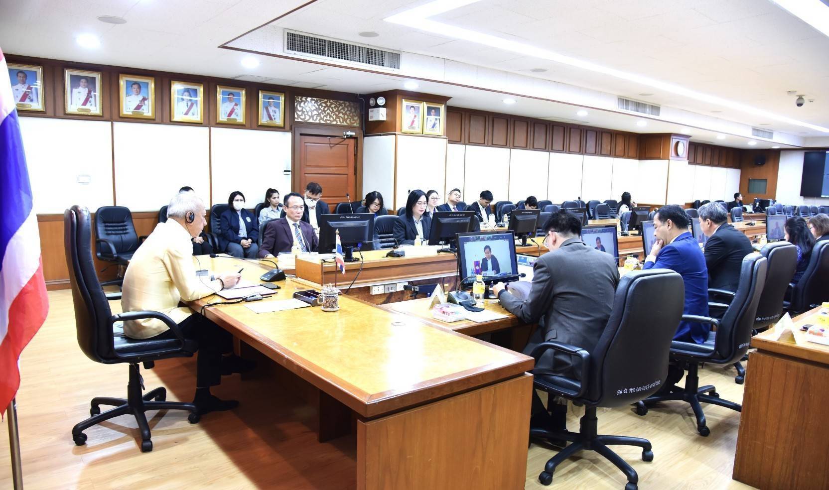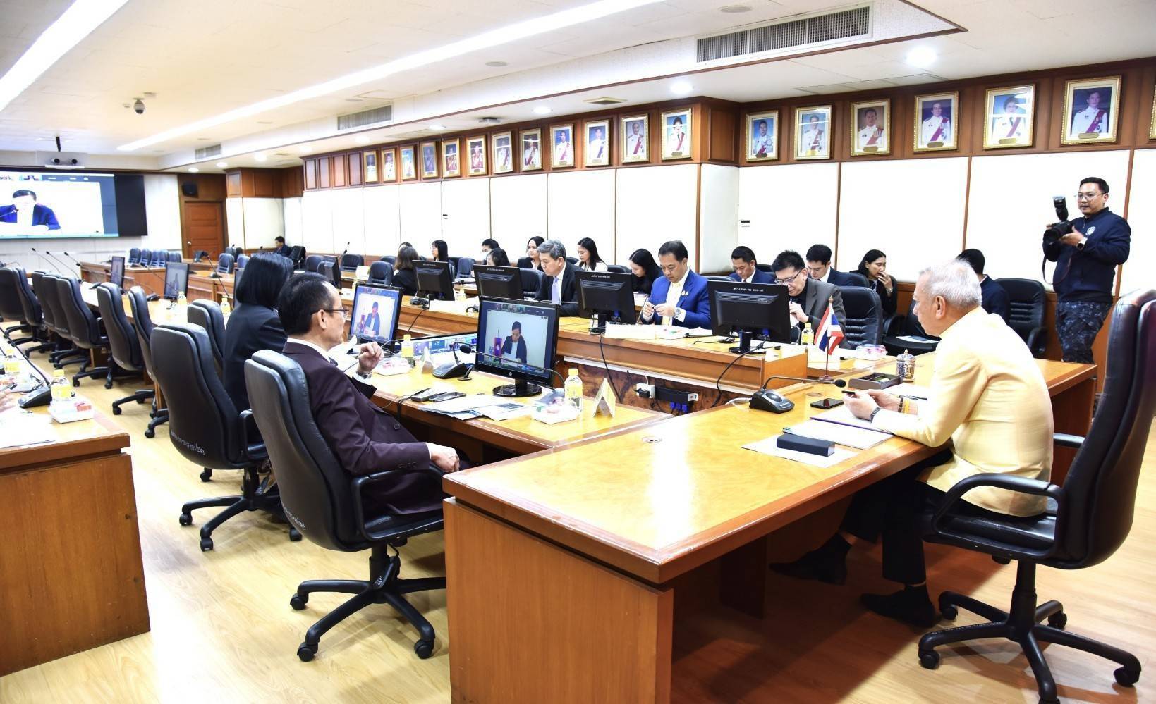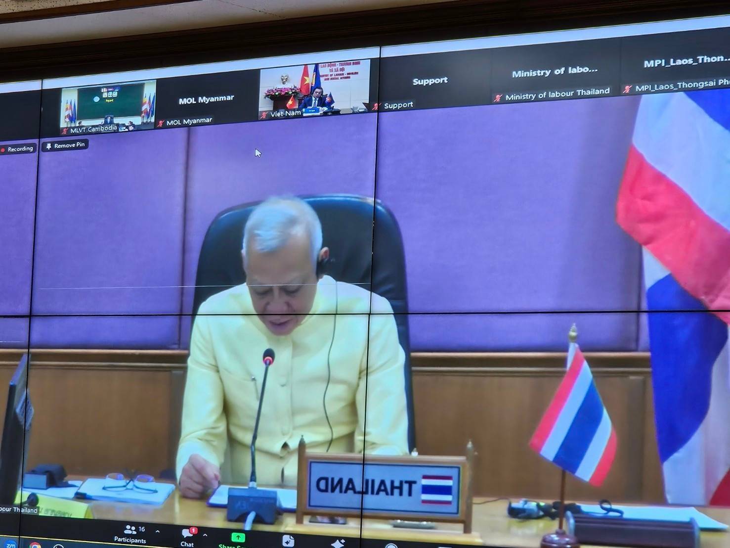 On May 23, 2024, at 14.00 hours, the Permanent Secretary of Labour, Mr. Pairoj Chotikasathien, joined the fourth Labour Ministerial Meeting on the mobilization of social security rights for migrant workers in CLMTV countries. The Labour Minister, Mr. Phiphat Ratchakitprakarn, chaired the meeting. The Ministry of Labour’s Inspector-General, Mr. Samat Pattamasukon, the Assistant to the Permanent Secretary of Labour, Mr. Sakdinart Sonthisakyotin, the Ministry of Labour’s executives, and relevant agencies joined the occasion at the Prasong Rananant meeting room, 5th floor, Ministry of Labour, and via video conferencing.