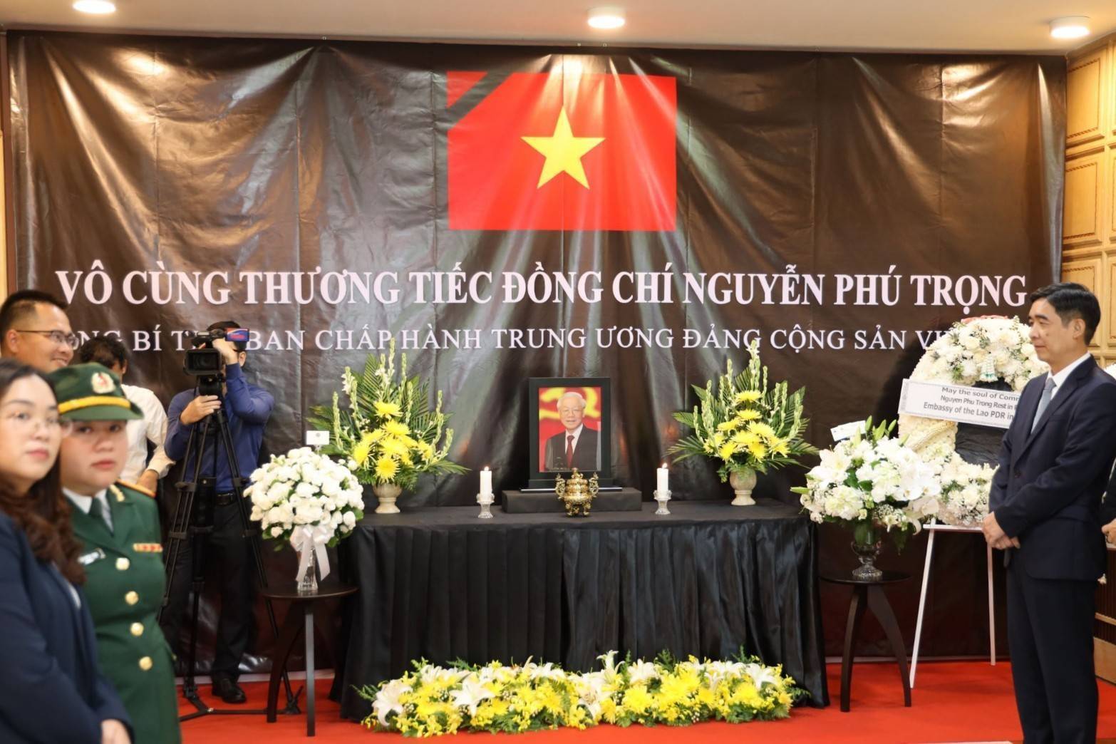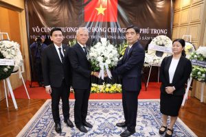 วันที่ 26 กรกฎาคม 2567 เวลา 11.30 น. นายไพโรจน์ โชติกเสถียร ปลัดกระทรวงแรงงาน ร่วมคณะ นายพิพัฒน์ รัชกิจประการ รัฐมนตรีว่าการกระทรวงแรงงาน ลงนามในสมุดไว้อาลัยต่อการถึงแก่อสัญกรรมของนายเหวียน ฝู จ่อง (Nguyen Phu Trong) เลขาธิการพรรคคอมมิวนิสต์เวียดนาม โดยมีนายฝั่ม เหวียต หุ่ง (Pham Viet Hung) เอกอัครราชทูตสาธารณรัฐสังคมนิยมเวียดนามประจำประเทศไทยให้การต้อนรับ ณ สถานเอกอัครราชทูตสาธารณรัฐสังคมนิยมเวียดนามประจำประเทศไทย ถนนวิทยุ เขตปทุมวัน กรุงเทพมหานคร