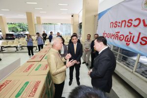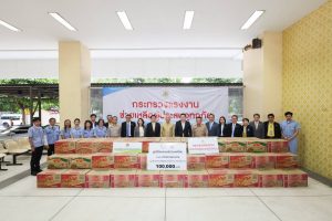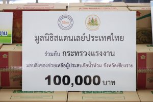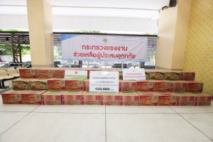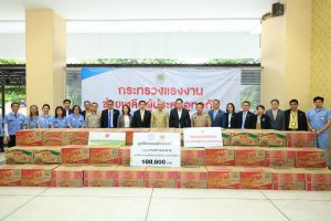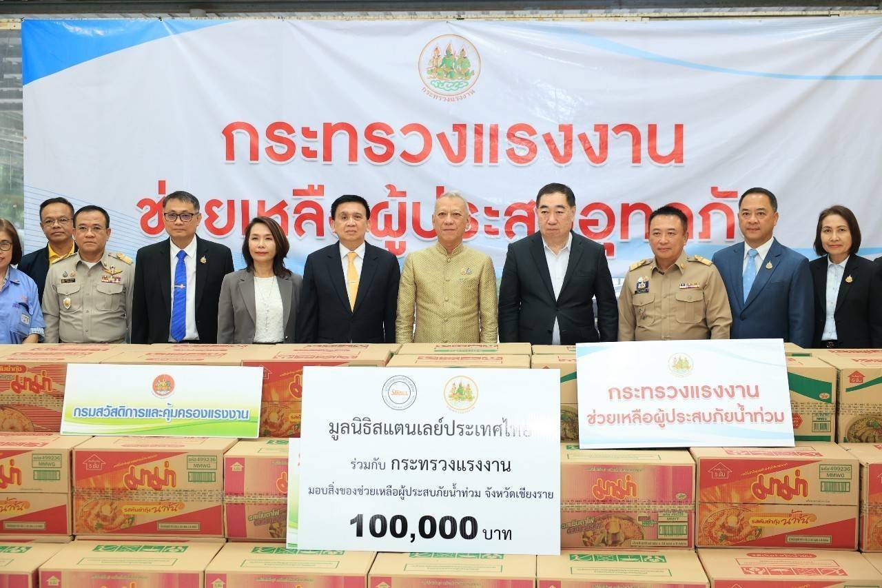 วันที่ 17 กันยายน 2567 เวลา 16.30 น. นายไพโรจน์ โชติกเสถียร ปลัดกระทรวงแรงงาน ร่วมคณะ นายพิพัฒน์ รัชกิจประการ รัฐมนตรีว่าการกระทรวงแรงงาน รับมอบผลิตภัณฑ์บะหมี่กึ่งสำเร็จรูป มูลค่า 100,000 บาท จากคุณอภิชาต ลี้อิสสระนุกูล ประธานกรรมการบริษัท ไทยสแตนเลย์การไฟฟ้า จำกัด (มหาชน) และประธานมูลนิธิสแตนเลย์ประเทศไทย และคณะ เป็นผู้มอบ เพื่อให้กระทรวงแรงงานบรรจุถุงยังชีพนำไปช่วยเหลือผู้ประสบภัยน้ำท่วมในพื้นที่จังหวัดทางภาคเหนือ โดยมี ผู้บริหารระดับสูงกระทรวงแรงงาน ร่วมเป็นเกียรติ ณ บริเวณโถงชั้นล่างอาคารกระทรวงแรงงาน
