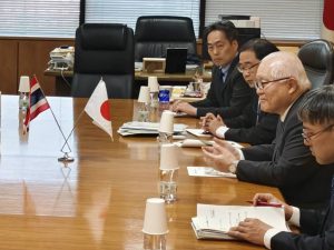 On April 10, 2024, the Permanent Secretary of Labour, Mr. Pairoj Chotikasathien, met with the Minister of Health, Labour and Welfare of Japan, Mr. Takemi Keizo, to pay a courtesy call and congratulate him on the opportunity of taking the position. He thanked the Ministry of Health, Labour and Welfare of Japan for supporting the Ministry of Labour in various areas. They discussed and exchanged information on labour. The Labour Minister, Mr. Phiphat Ratchakitprakarn, led the delegation at the Ministry of Public Health, Labour and Welfare in Japan.