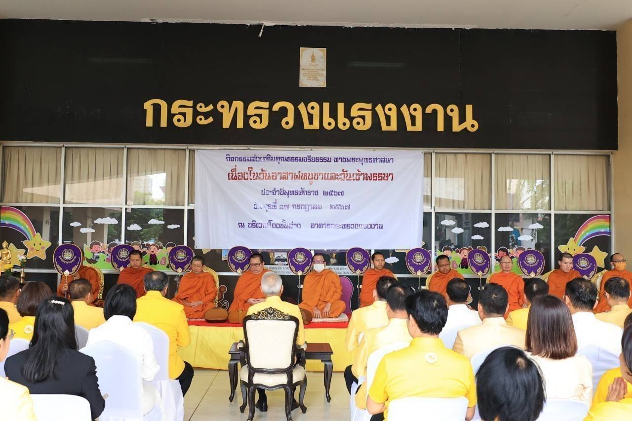 วันที่ 17 กรกฎาคม 2567 เวลา 08.30 น.นายไพโรจน์ โชติกเสถียร ปลัดกระทรวงแรงงาน ร่วมพิธีทำบุญตักบาตรพระสงฆ์ จำนวน 10 รูปเนื่องในวันอาสาฬหบูชาและวันเข้าพรรษา ประจำปีพุทธศักราช 2567 โดยมี นายพิพัฒน์ รัชกิจประการ รัฐมนตรีว่าการกระทรวงแรงงาน เป็นประธาน พร้อมด้วยผู้บริหารระดับสูง ข้าราชการ พนักงาน เจ้าหน้าที่กระทรวงแรงงาน เข้าร่วมกิจกรรมโดยพร้อมเพรียงกัน ณ โถงชั้นล่างอาคารกระทรวงแรงงาน และลานพระพุทธสุทธิธรรมบพิตร
