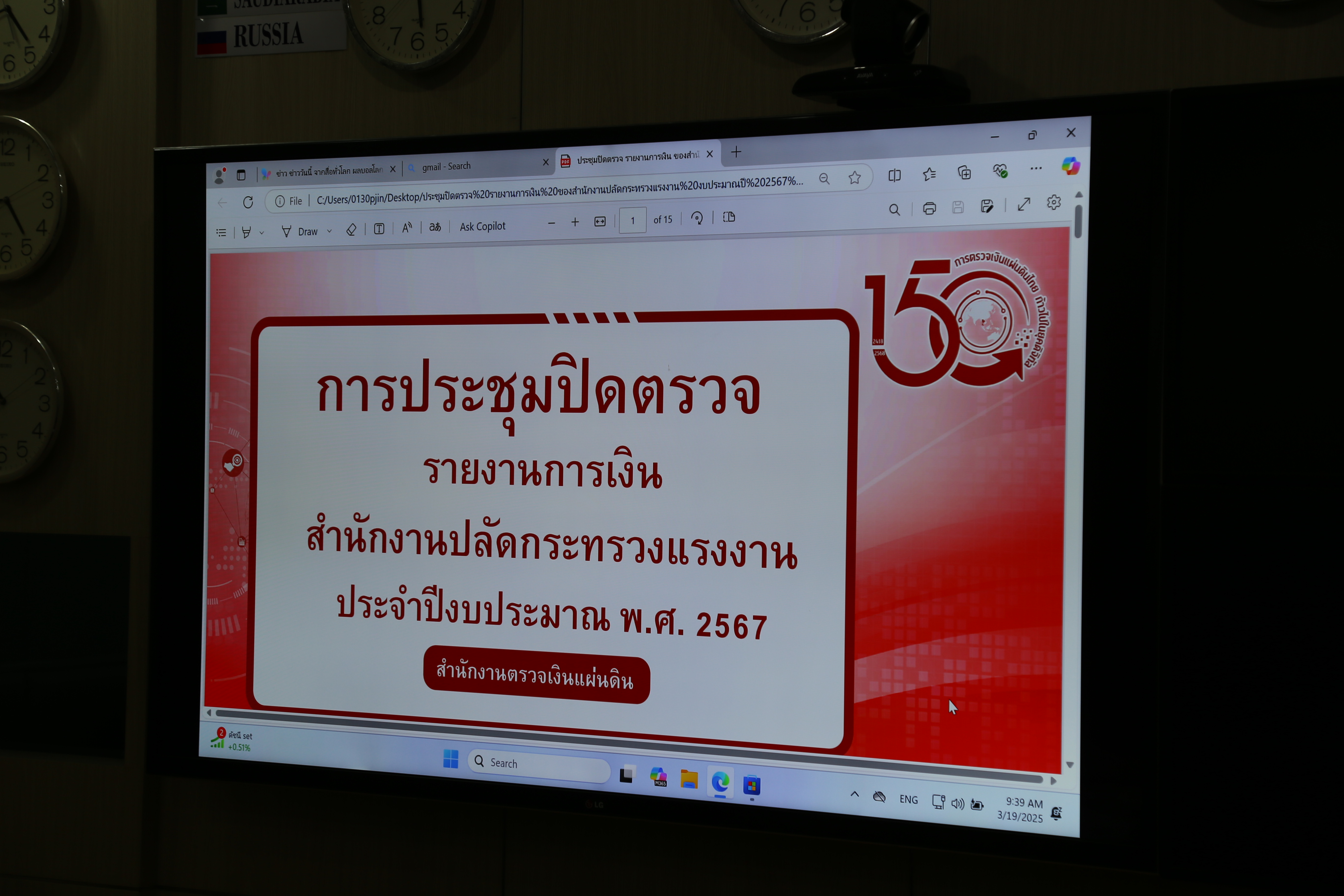 วันที่ 19 มีนาคม 2568 เวลา 09.30 น. นายบุญสงค์ ทัพชัยยุทธ์ ปลัดกระทรวงแรงงาน เป็นประธานการประชุมการปิดตรวจรายงานการเงินของสำนักงานปลัดกระทรวงแรงงาน สำหรับปีสิ้นสุดวันที่ 30 กันยายน 2567 โดยมี ผู้แทนสำนักงานการตรวจเงินแผ่นดิน ผู้บริหารหน่วยงานที่เกี่ยวข้องของสำนักงานปลัดกระทรวงแรงงาน เข้าร่วมการประชุม ณ ห้องประชุมแสงสิงแก้ว ชั้น 5 อาคารกระทรวงแรงงาน