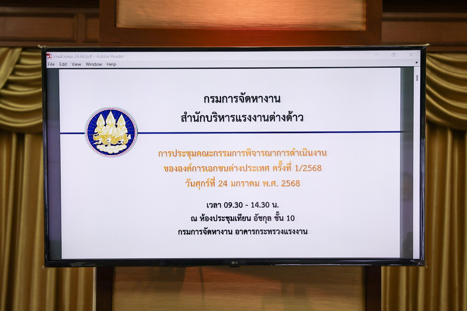 วันที่ 24 มกราคม 2568 เวลา 09.30 น. นายบุญสงค์ ทัพชัยยุทธ์ ปลัดกระทรวงแรงงาน เป็นประธานการประชุมคณะกรรมการพิจารณาการดำเนินงานขององค์การเอกชนต่างประเทศ ครั้งที่ 1/2568 โดยมี นายสมชาย มรกตศรีวรรณ อธิบดีกรมการจัดหางาน และหน่วยงานที่เกี่ยวข้อง เข้าร่วมประชุมด้วย ณ ห้องประชุมเทียน อัชกุล ชั้น 10 กรมการจัดหางาน