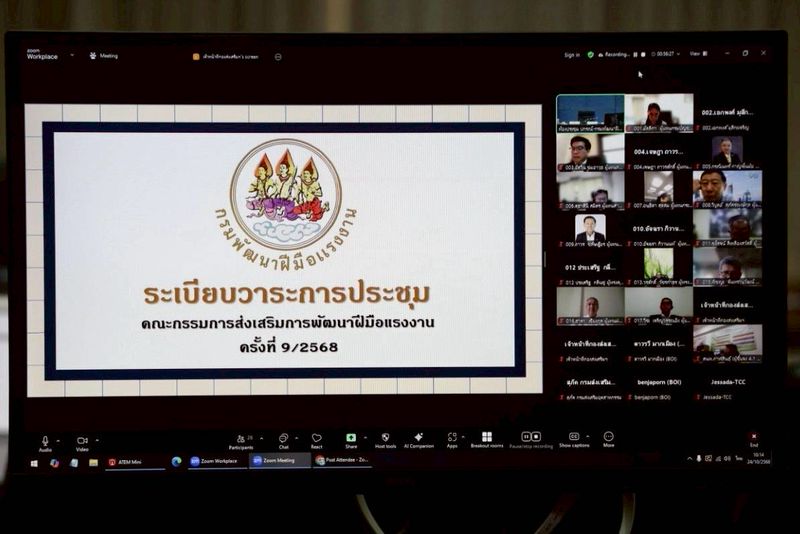 วันที่ 24 ตุลาคม 2568 เวลา 10.00 น. พันตำรวจโท วรรณพงษ์ คชรักษ์ ปลัดกระทรวงแรงงาน เป็นประธานการประชุมคณะกรรมการส่งเสริมการพัฒนาฝีมือแรงงาน ครั้งที่ 9/2568 โดยมีผู้บริหาร และหน่วยงานที่เกี่ยวข้องเข้าร่วมประชุม ณ ห้องประชุมปกรณ์ อังศุสิงห์ ชั้น 10 กรมพัฒนาฝีมือแรงงาน