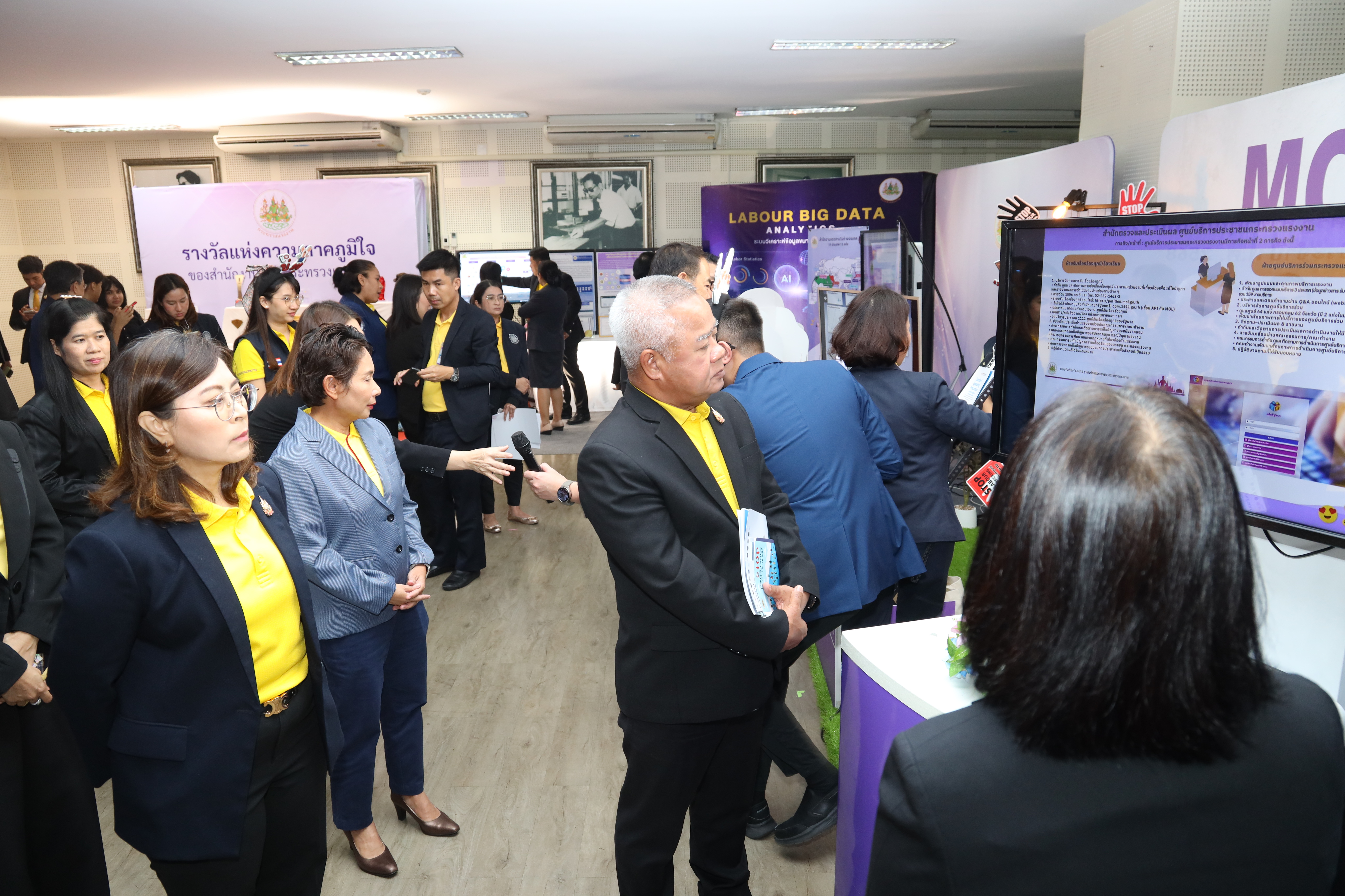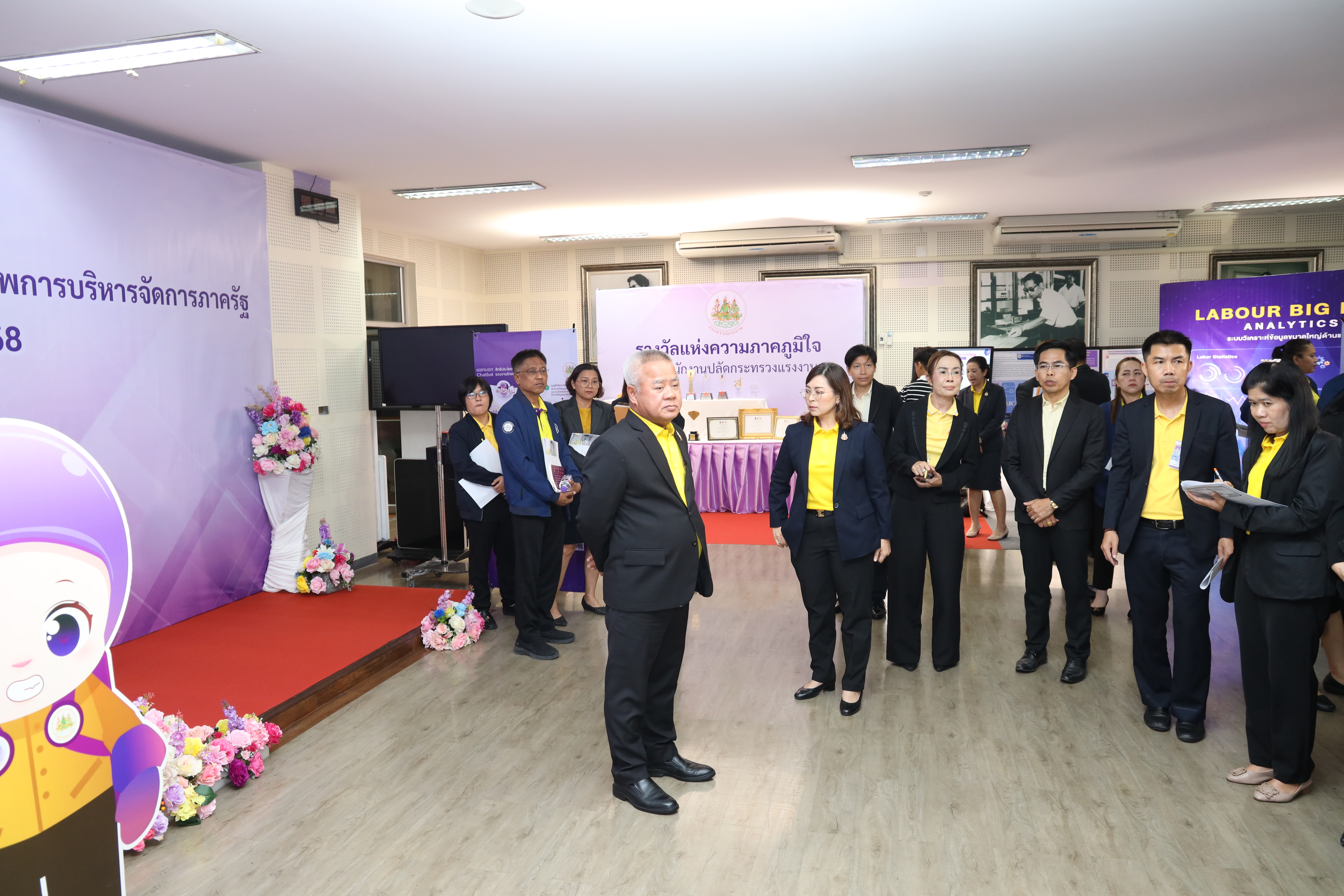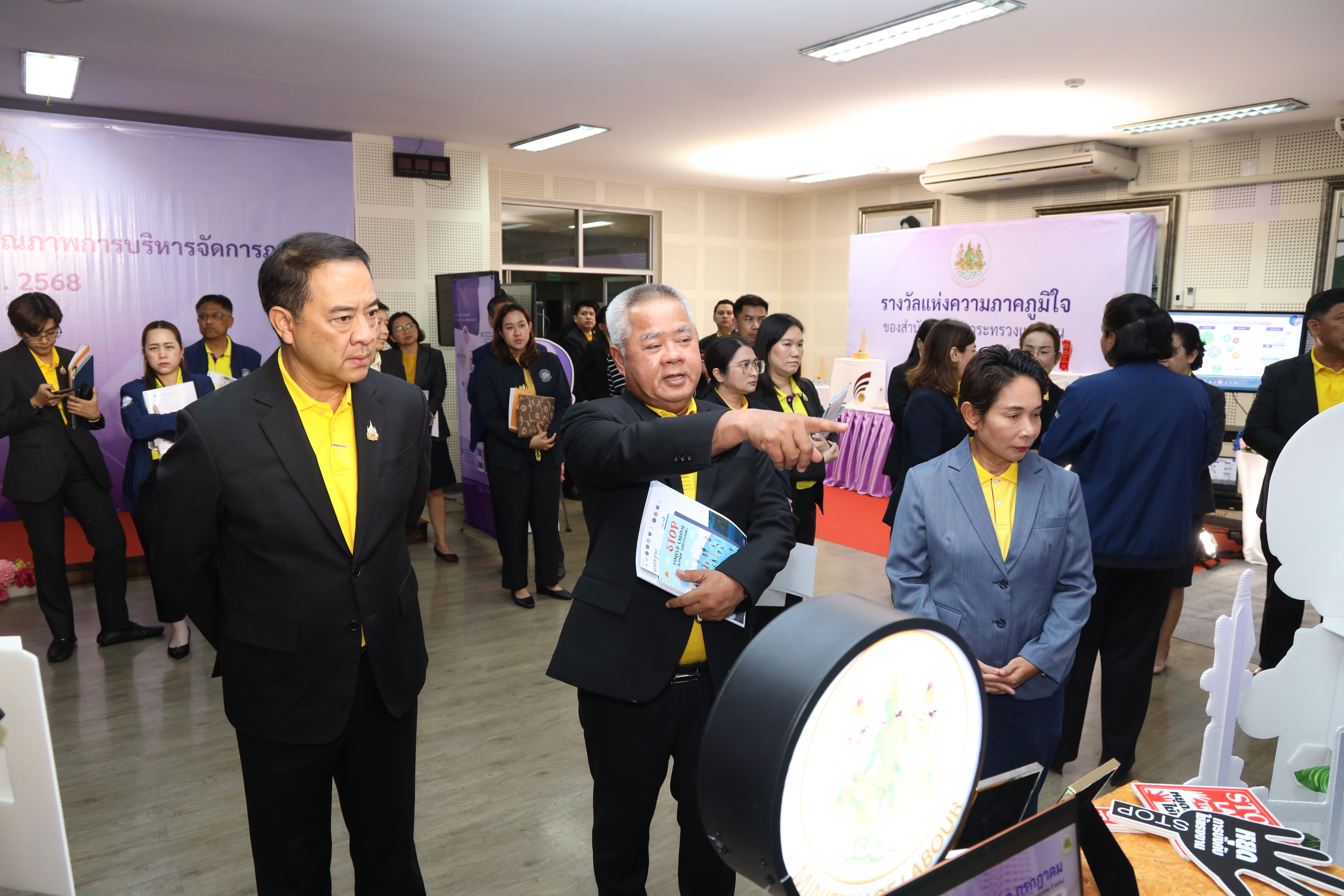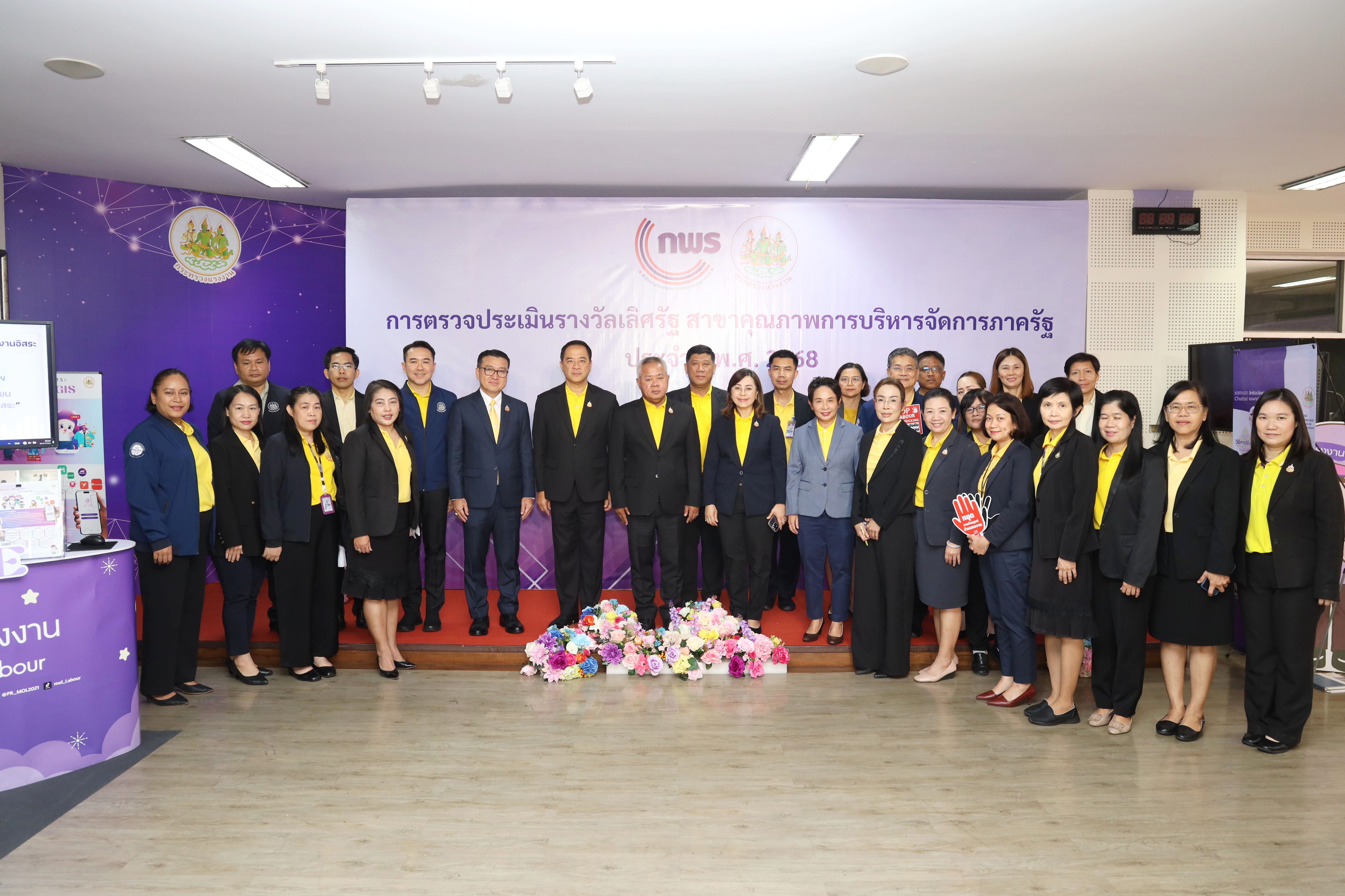 วันที่ 30 กรกฎาคม 2568 เวลา 11.30 น. นายบุญสงค์ ทัพชัยยุทธ์ ปลัดกระทรวงแรงงาน พร้อมด้วย นางสาวบุปผา เรืองสุด รองปลัดกระทรวงแรงงาน นายสมาสภ์ ปัทมะสุคนธ์ รองปลัดกระทรวงแรงงาน นายสันติ นันตสุวรรณ รองปลัดกระทรวงแรงงาน นางสาวจีระภา บุญรัตน์ ผู้ตรวจราชการกระทรวงแรงงาน และผู้บริหารกระทรวงแรงงาน เยี่ยมชมบูธนิทรรศการและรับฟังการนำเสนอข้อมูลที่จัดแสดงภายในนิทรรศการรองรับการตรวจประเมินรางวัลเลิศรัฐ ประจำปี 2568 สาขาคุณภาพการบริหารจัดการภาครัฐ รางวัลคุณภาพการบริหารจัดการภาครัฐ 4.0 (PMQA 4.0) ณ ห้องแถลงข่าว ชั้น 5 อาคารกระทรวงแรงงาน
