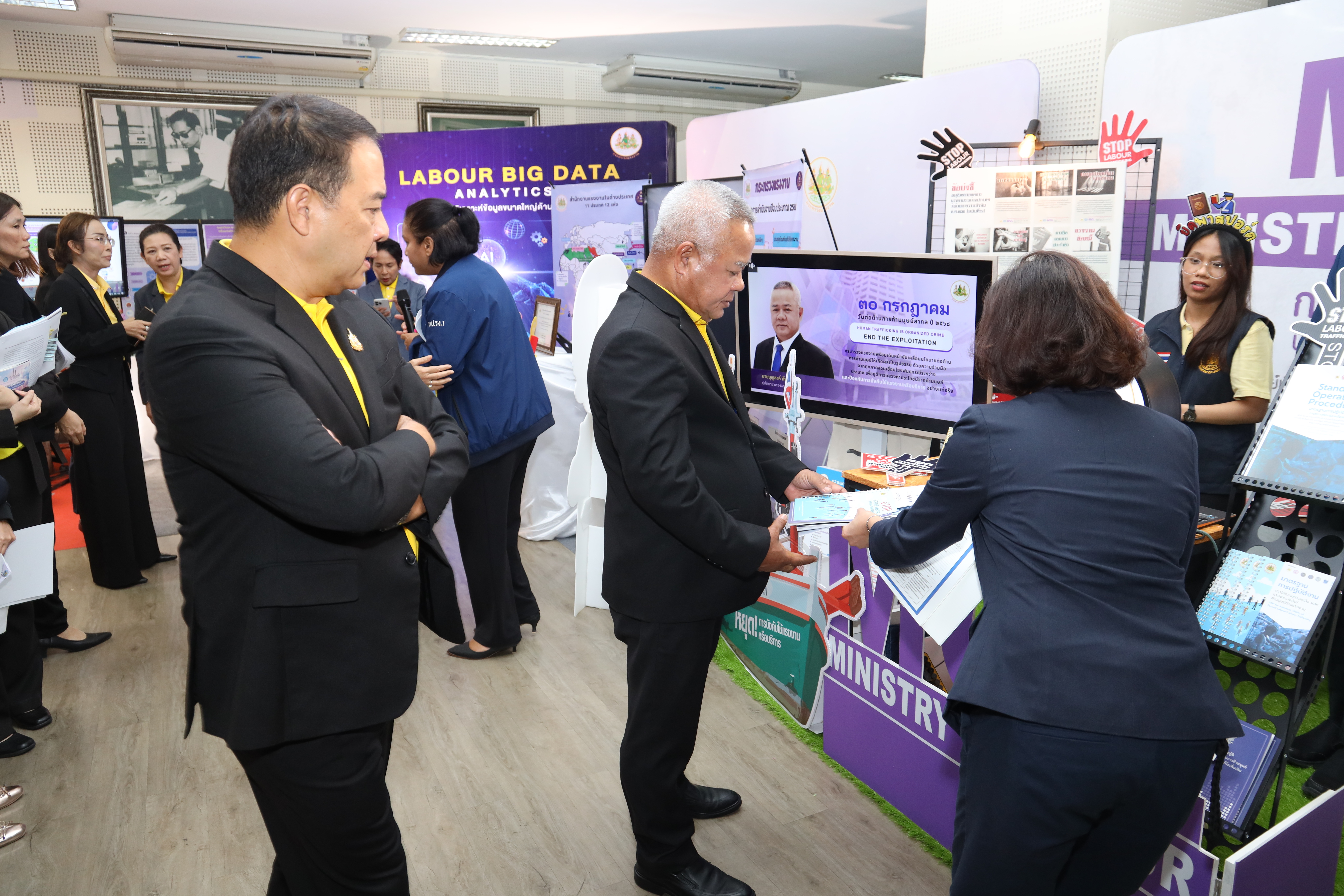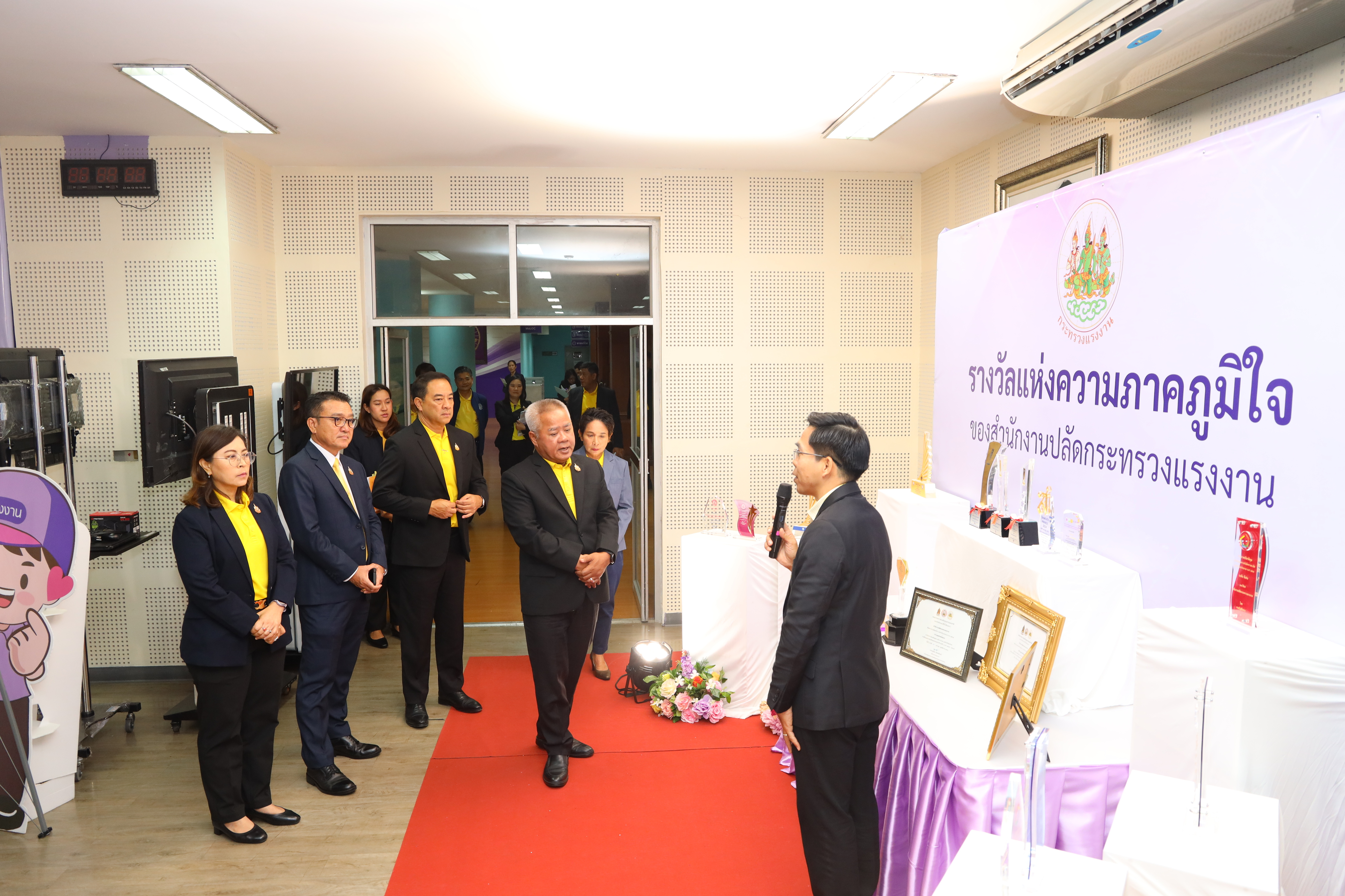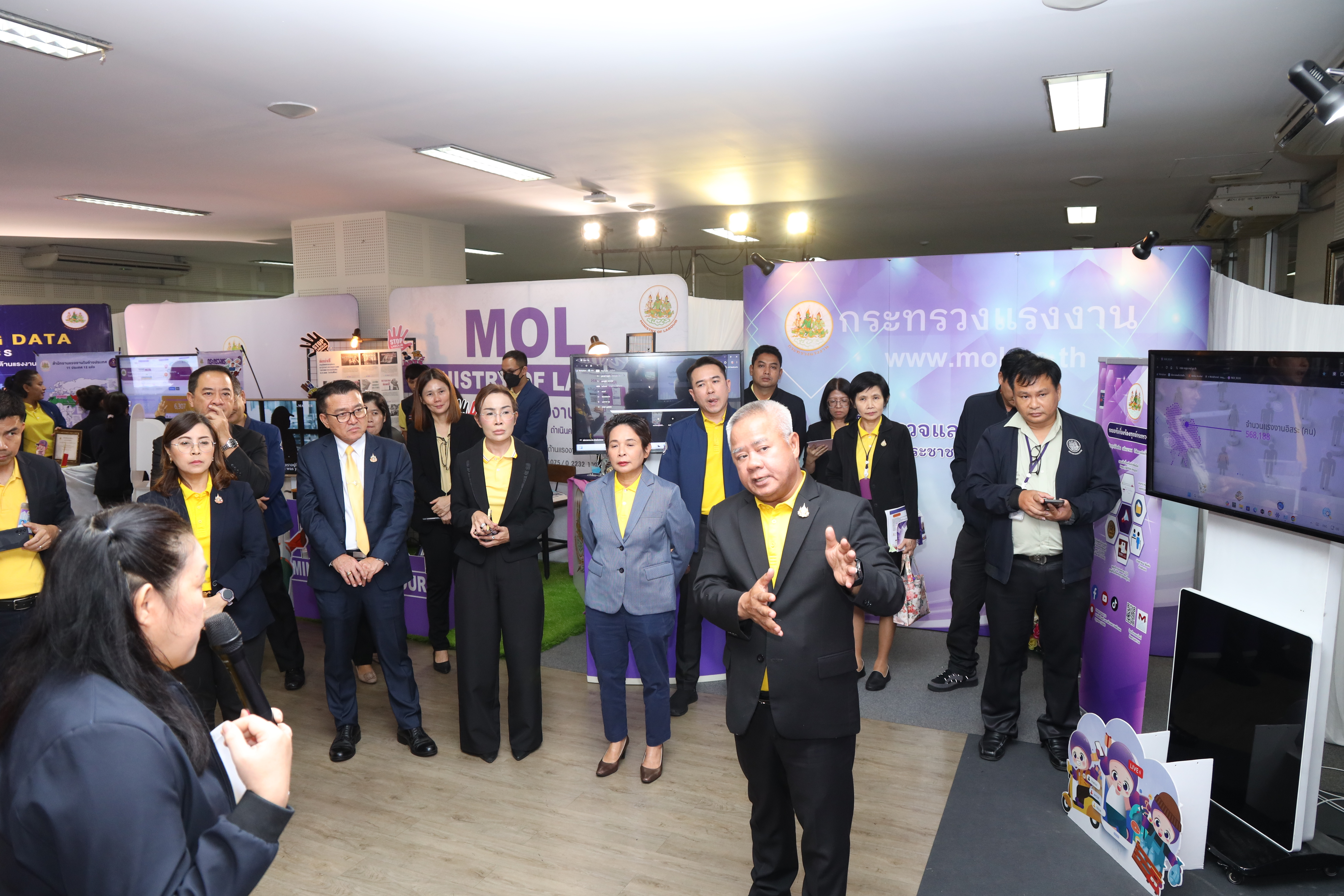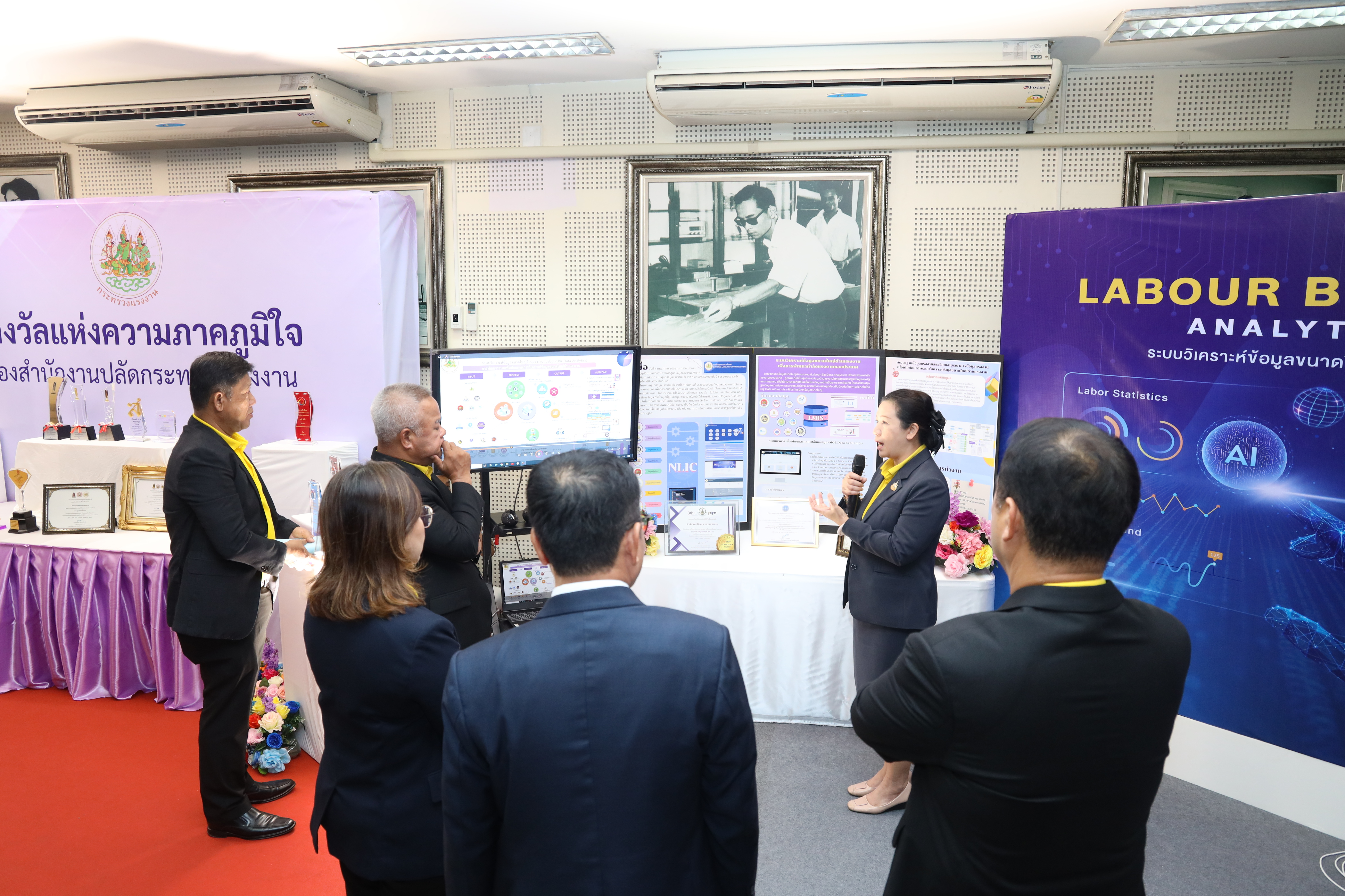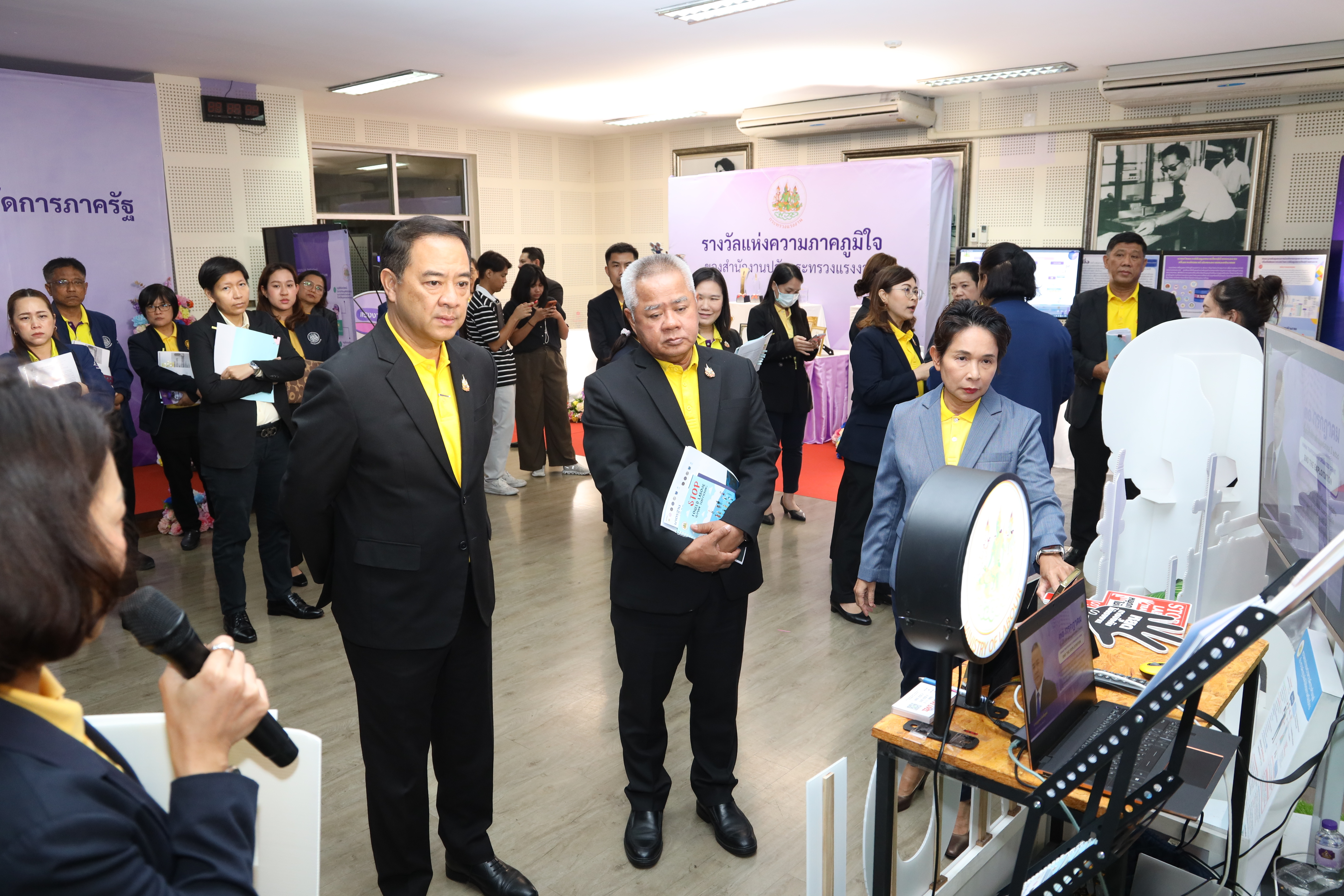 วันที่ 30 กรกฎาคม 2568 เวลา 11.30 น. นายบุญสงค์ ทัพชัยยุทธ์ ปลัดกระทรวงแรงงาน พร้อมด้วย นางสาวบุปผา เรืองสุด รองปลัดกระทรวงแรงงาน นายสมาสภ์ ปัทมะสุคนธ์ รองปลัดกระทรวงแรงงาน นายสันติ นันตสุวรรณ รองปลัดกระทรวงแรงงาน นางสาวจีระภา บุญรัตน์ ผู้ตรวจราชการกระทรวงแรงงาน และผู้บริหารกระทรวงแรงงาน เยี่ยมชมบูธนิทรรศการและรับฟังการนำเสนอข้อมูลที่จัดแสดงภายในนิทรรศการรองรับการตรวจประเมินรางวัลเลิศรัฐ ประจำปี 2568 สาขาคุณภาพการบริหารจัดการภาครัฐ รางวัลคุณภาพการบริหารจัดการภาครัฐ 4.0 (PMQA 4.0) ณ ห้องแถลงข่าว ชั้น 5 อาคารกระทรวงแรงงาน