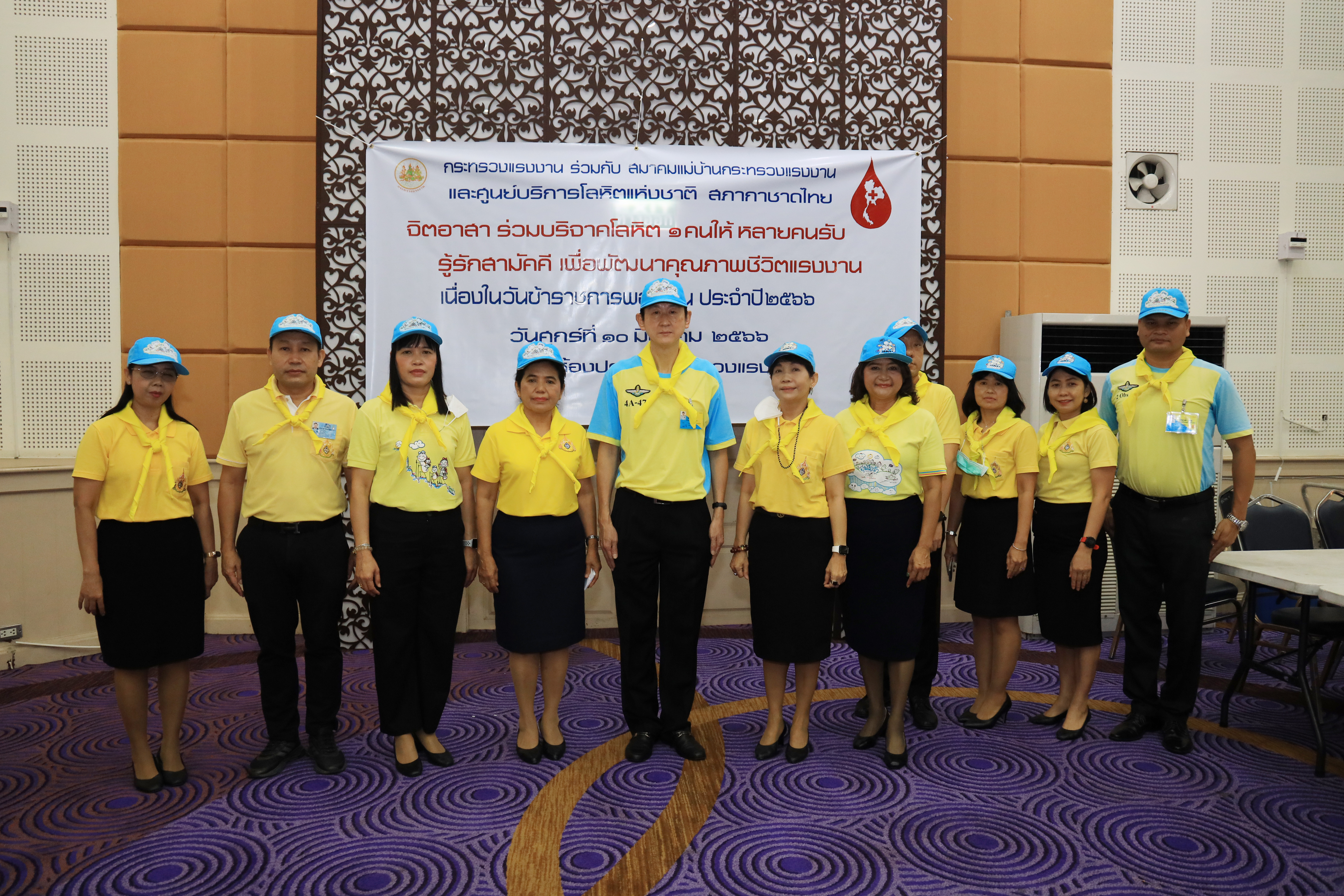 วันที่ 10 มีนาคม 2566 เวลา 9.20 น. นายบุญชอบ สุทธมนัสวงษ์ ปลัดกระทรวงแรงงาน ตรวจเยี่ยมให้กำลังใจผู้บริจาคโลหิต ในกิจกรรมจิตอาสา ร่วมบริจาคโลหิต 1 คนให้ หลายคนรับ รู้รักสามัคคี เพื่อพัฒนาคุณภาพชีวิตแรงงาน เนื่องในวันข้าราชการพลเรือน ประจำปี 2566 เพื่อเป็นการกระตุ้นให้ผู้บริจาคโลหิต ร่วมบริจาคโลหิตอย่างสม่ำเสมอในทุกๆ 3 เดือน รวมทั้งเพื่อให้ได้รับโลหิตบริจาคเพียงพอสำหรับผู้ป่วยทั่วประเทศ ซึ่งเป็นกิจกรรมบริจาคโลหิตครั้งแรกในปี 2566 โดยกระทรวงแรงงานร่วมกับสมาคมแม่บ้านกระทรวงแรงงานและศูนย์บริการโลหิตแห่งชาติ สภากาชาดไทย ณ ห้องประชุมกระทรวงแรงงาน ชั้น 5 อาคารกระทรวงแรงงาน