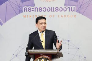 วันที่ 20 กันยายน 2567 นายไพโรจน์ โชติกเสถียร ปลัดกระทรวงแรงงาน แถลงข่าว ประเด็น “ผลการประชุมคณะกรรมการค่าจ้าง” ณ บริเวณห้องแถลงข่าว ชั้น 5 อาคารกระทรวงแรงงาน