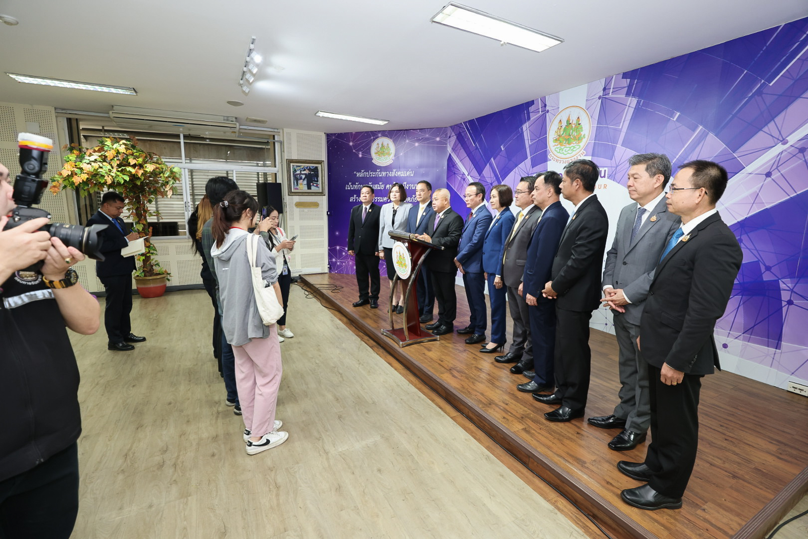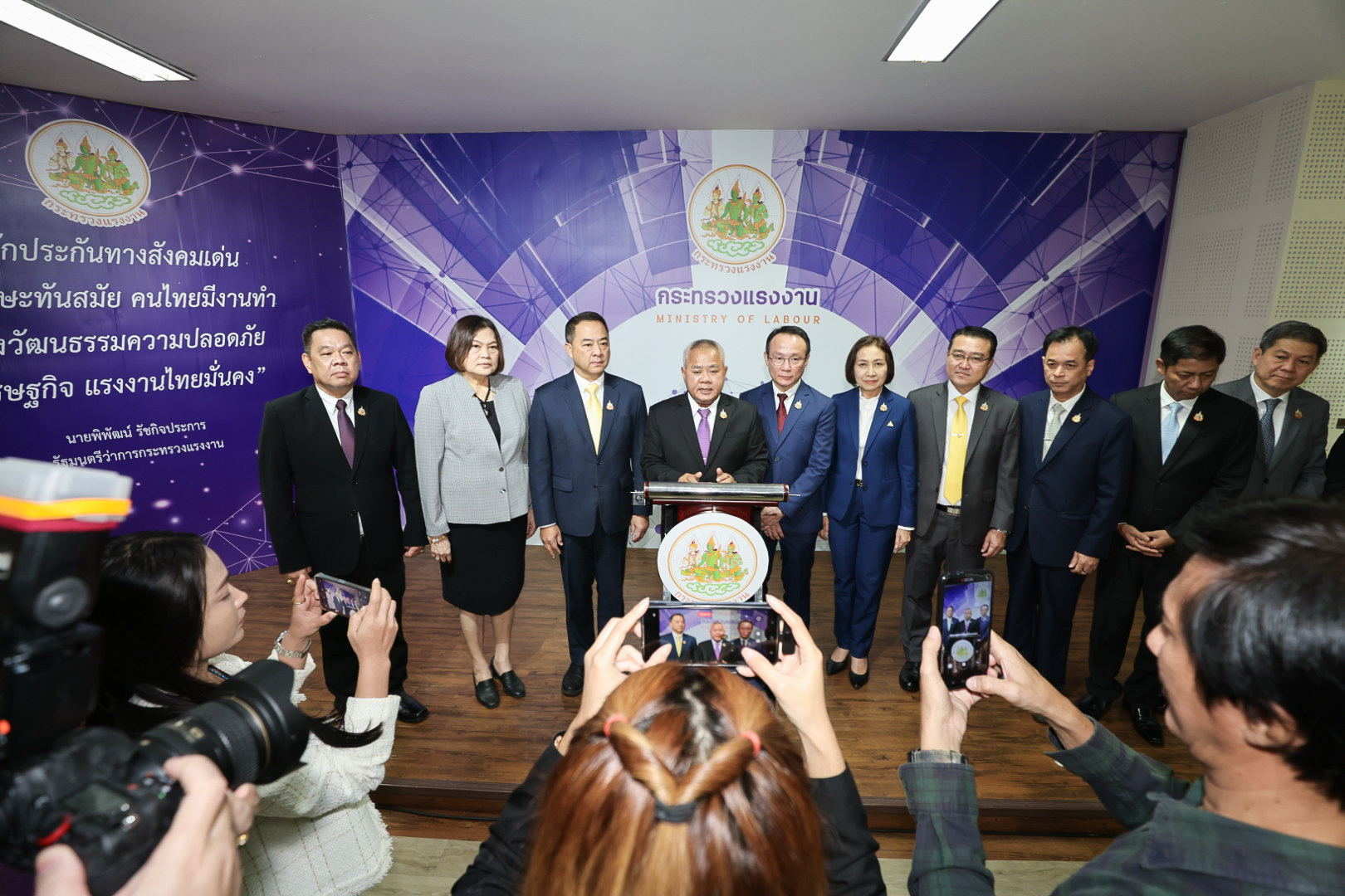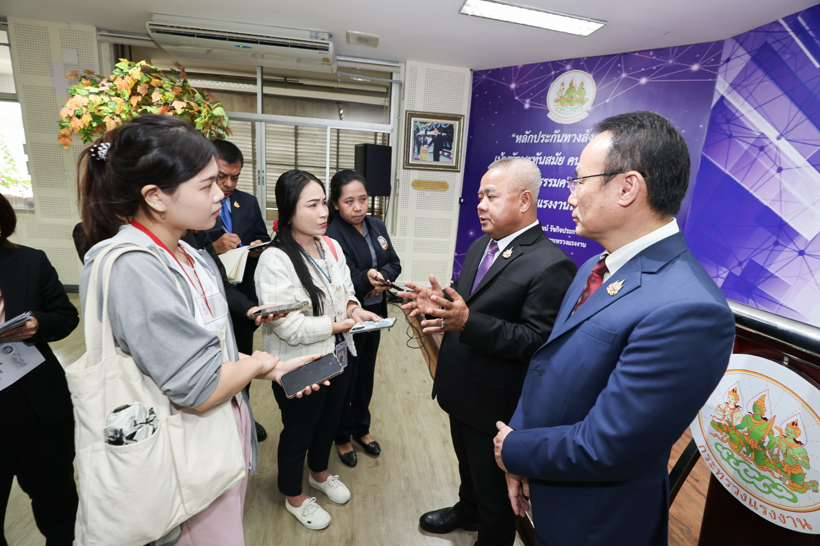 วันที่ 14 พฤศจิกายน 2567 เวลา 12.00 น. นายบุญสงค์ ทัพชัยยุทธ์ ปลัดกระทรวงแรงงาน ให้สัมภาษณ์ ผู้สื่อข่าว มติชน สวท. และหนังสือพิมพ์ไทยรัฐ เกี่ยวกับ “แนวทางการบริหารจัดการการทำงานของคนต่างด้าวตามมติคณะรัฐมนตรีเมื่อวันที่ 24 กันยายน 2567” ณ ห้องแถลงข่าว ชั้น 5 อาคารกระทรวงแรงงาน โดยปลัดกระทรวงแรงงาน ได้เน้นย้ำให้ นายจ้างสถานประกอบการ ที่จ้างแรงงานข้ามชาติที่อายุใบอนุญาตทำงานจะสิ้นสุดในวันที่ 13 กุมภาพันธ์ 2568 ให้ยื่นต่อใบอนุญาตทำงาน ภายในระยะเวลาที่กระทรวงแรงงานกำหนด ซึ่งหลังจากสิ้นสุดระยะเวลาดำเนินการดังกล่าวแล้ว กระทรวงแรงงานจะส่งหน่วยเฉพาะกิจลงพื้นที่ตรวจสอบ ปราบปราม จับกุม ดำเนินคดีแรงงานข้ามชาติที่ลักลอบทำงานผิดกฎหมาย รวมทั้งแรงงานข้ามชาติและนายจ้าง สถานประกอบการ ที่ไม่ปฏิบัติตามกฎหมายอย่างเคร่งครัด