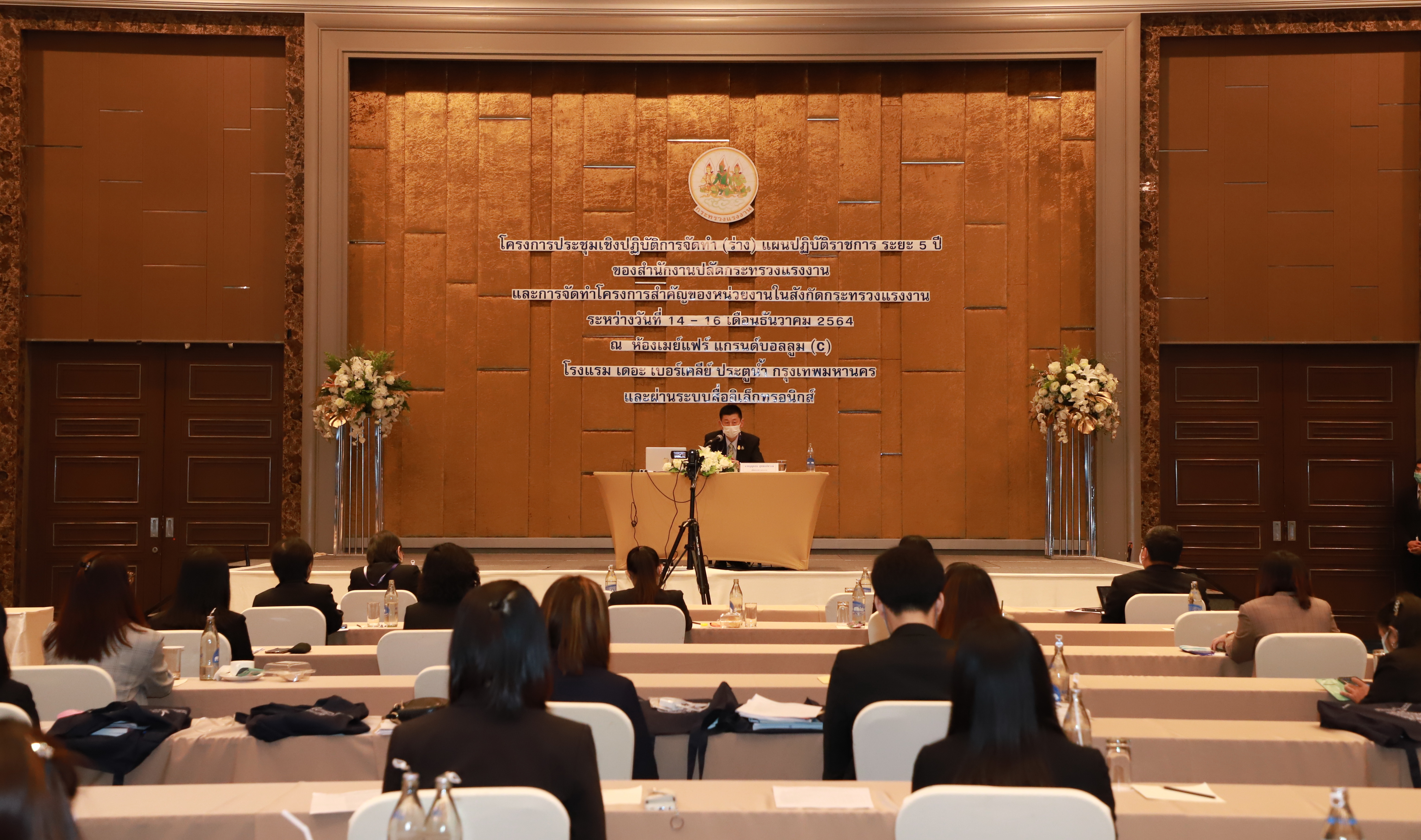 สำหรับการประชุมเชิงปฏิบัติการฯ ในครั้งนี้จัดขึ้นระหว่างวันที่ 13 – 16 ธันวาคม 2564 มีผู้เข้าร่วมประชุมประกอบด้วย ข้าราชการและเจ้าหน้าที่จากหน่วยงานในสังกัดกระทรวงแรงงานส่วนกลาง จำนวน 100 คน และข้าราชการจากหน่วยงานในสังกัดกระทรวงแรงงานส่วนภูมิภาคประชุมผ่านระบบสื่ออิเล็กทรอนิกส์ ณ สำนักงานแรงงานจังหวัดทุกจังหวัด