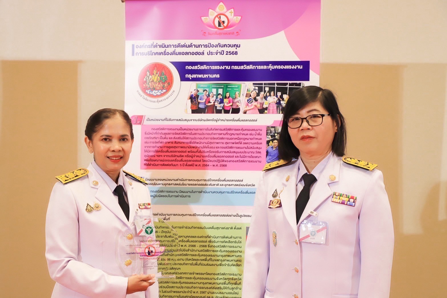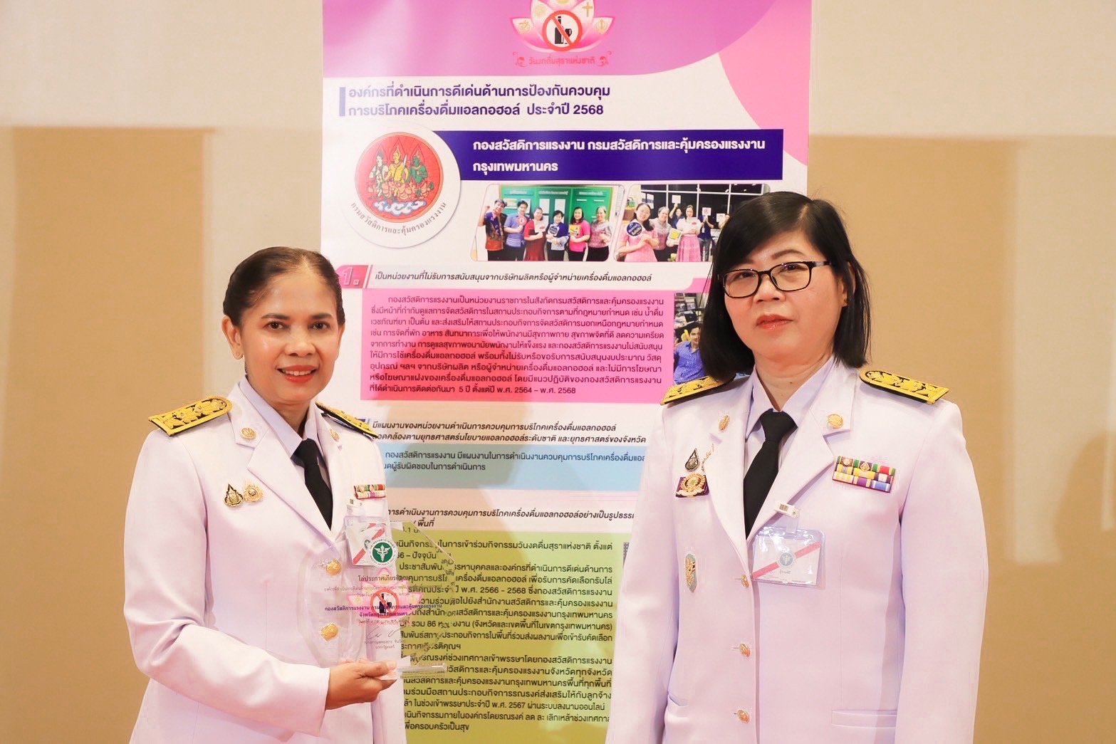 วันที่ 9 กรกฎาคม 2568 เวลา 13.00 น. นายบุญสงค์ ทัพชัยยุทธ์ ปลัดกระทรวงแรงงาน มอบหมายให้ นางสาวกาญจนา พูลแก้ว ผู้ตรวจราชการกระทรวงแรงงาน ร่วมเป็นเกียรติในกิจกรรมรณรงค์วันงดดื่มสุราแห่งชาติ ประจำปี พ.ศ. 2568 โดยมี พระเจ้าวรวงศ์เธอ พระองค์เจ้าอทิตยาทรกิติคุณ โปรดให้ นายบุญเชิด กันภัย เป็นผู้แทนพระองค์ เป็นประธานเปิดงาน ณ ห้องจูปีเตอร์ โรงแรมมิราเคิล แกรนด์ คอนเวนชั่น แขวงตลาดบางเขน เขตหลักสี่ กรุงเทพฯ
