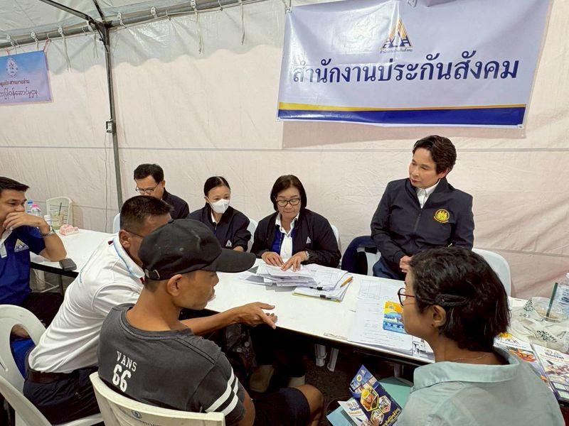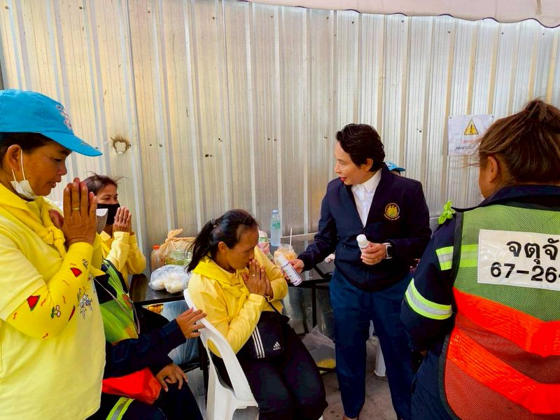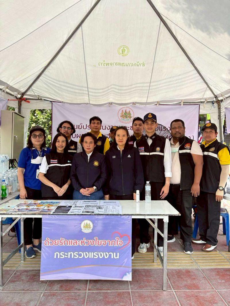 วันที่ 9 เมษายน 2568 นายบุญสงค์ ทัพชัยยุทธ์ ปลัดกระทรวงแรงงาน มอบหมายให้ นางสาวจีระภา บุญรัตน์ ผู้ตรวจราชการกระทรวงแรงงาน ลงพื้นที่เยี่ยมให้กำลังใจเจ้าหน้าที่ผู้ปฏิบัติงาน พร้อมมอบสเปรย์สูตรเย็น แก่เจ้าหน้าที่ ญาติพี่น้อง และครอบครัวแรงงานผู้ได้รับผลกระทบจากเหตุแผ่นดินไหว เพื่อสร้างขวัญกำลังใจ และติดตามการให้ความช่วยเหลือด้านสิทธิประโยชน์แรงงาน บริเวณศูนย์ประสานงานและช่วยเหลือแรงงาน ผู้ได้รับผลกระทบจากเหตุแผ่นดินไหว (ศปช.รง.) และจุดรับแจ้งสิทธิประโยชน์ประกันสังคมผู้ได้รับผลกระทบจากเหตุโครงสร้างอาคารของโครงการก่อสร้างอาคารสำนักงานการตรวจเงินแผ่นดิน ถนนกำแพงเพชร 2 เขตจตุจักร กรุงเทพมหานคร
