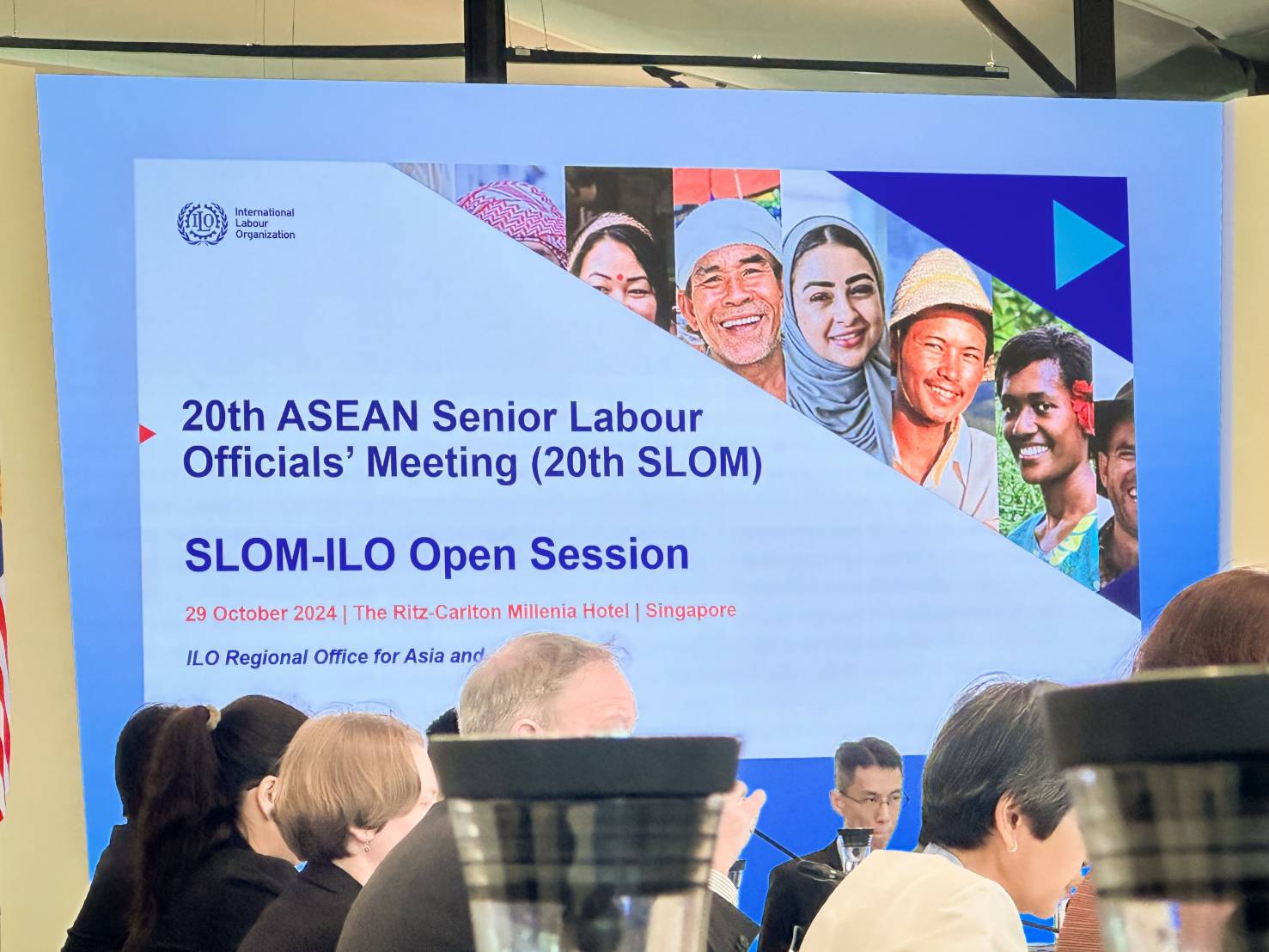 วันที่ 29 ตุลาคม 2567 เวลา 09.00 น.ตามเวลาท้องถิ่นของสาธารณรัฐสิงคโปร์ ซึ่งเร็วกว่าประเทศไทย 1 ชั่วโมง นายพิพัฒน์ รัชกิจประการ รัฐมนตรีว่าการกระทรวงแรงงาน มอบหมายให้ นายบุญสงค์ ทัพชัยยุทธ์ ปลัดกระทรวงแรงงาน ประธานร่วมประชุมปลัดแรงงานอาเซียน (SLOM) ในการประชุมระดับเจ้าหน้าที่อาวุโสแรงงานอาเซียน ครั้งที่ 20 (20th ASEAN Senior Labour Officials Meeting : 20th SLOM+ 3) โดยมี นายศักดินาถ สนธิศักดิ์โยธิน ผู้ช่วยปลัดกระทรวงแรงงาน นายวุฒิศักดิ์ ปฐมศาสตร์ อัครราชทูตที่ปรึกษา (ฝ่ายแรงงาน) สำนักงานแรงงานในประเทศสิงคโปร์ และคณะ เข้าร่วมประชุม ณ โรงแรม The Ritz Carlton Millenia สาธารณรัฐสิงคโปร์