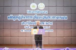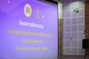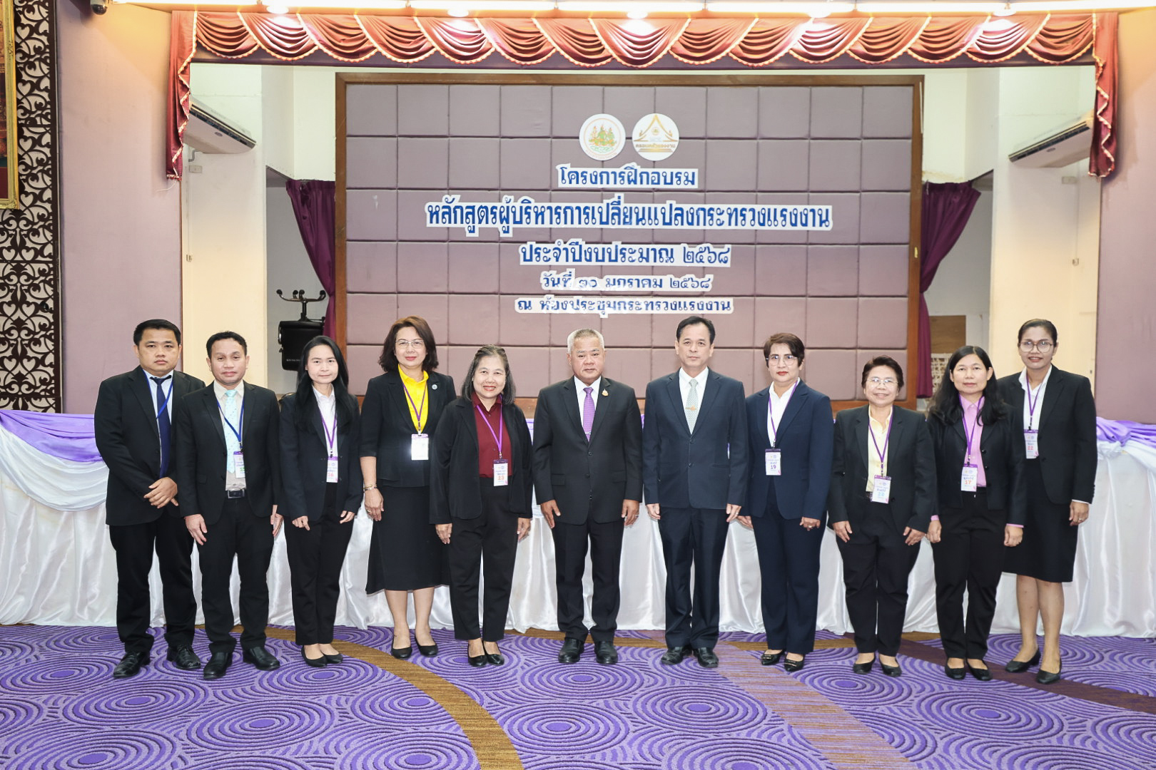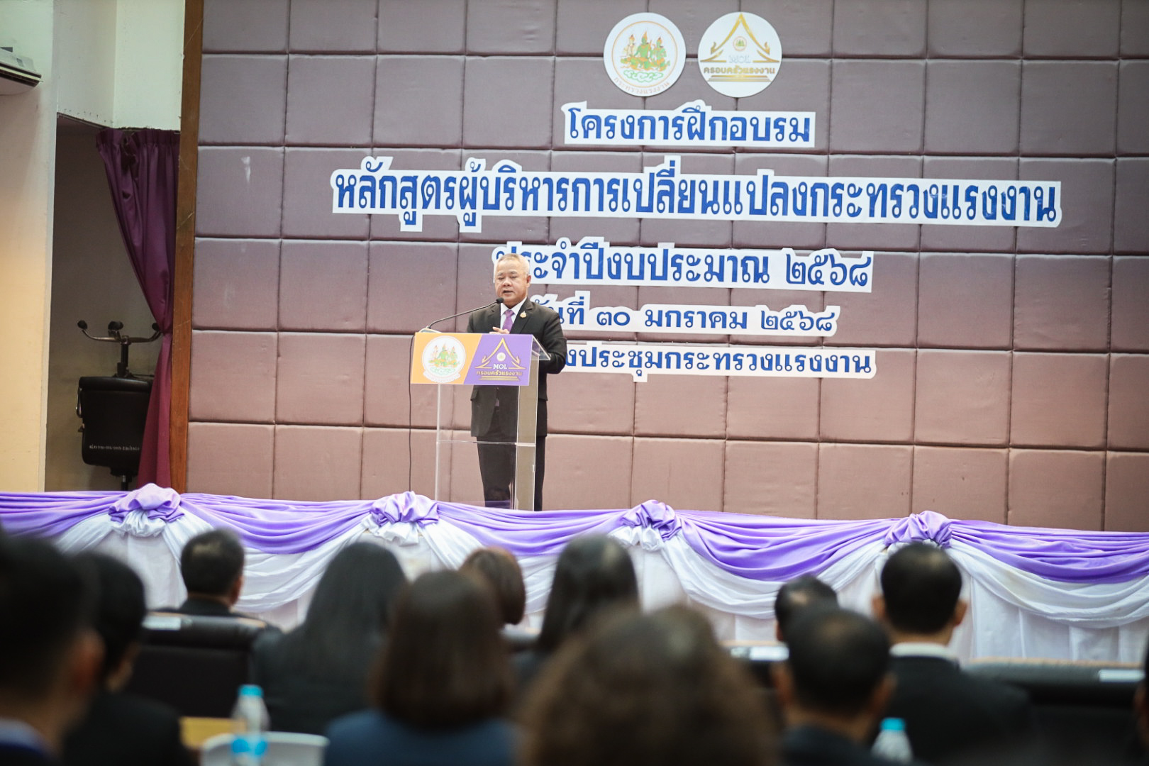 วันที่ 30 มกราคม 2568 นายบุญสงค์ ทัพชัยยุทธ์ ปลัดกระทรวงแรงงาน เป็นประธานพิธีเปิดโครงการฝึกอบรมหลักสูตรผู้บริหารการเปลี่ยนแปลงกระทรวงแรงงาน ประจำปีงบประมาณ พ.ศ. 2568 โดยมี นายสมาสภ์ ปัทมะสุคนธ์ รองปลัดกระทรวงแรงงาน นายสันติ นันตสุวรรณ ผู้ตรวจราชการกระทรวงแรงงาน รักษาราชการแทน รองปลัดกระทรวงแรงงาน นายณัฐวุฒิ ภัทรประยูร จัดหางานจังหวัดร้อยเอ็ดรักษาการในตำแหน่งที่ปรึกษาวิชาการแรงงาน นายเกริกไกร นาสมยนต์ ผู้ตรวจราชการกรมสวัสดิการ และคุ้มครองแรงงาน รักษาการในตำแหน่งที่ปรึกษากฎหมาย นางสาวกรจิรัฏฐ์ พงจันทร์ศธร ผู้ช่วยปลัดกระทรวงแรงงาน นายศักดินาถ สนธิศักดิ์โยธิน ผู้ช่วยปลัดกระทรวงแรงงาน และผู้บริหารระดับสูงหน่วยงานสังกัดกระทรวงแรงงาน เข้าร่วมด้วย ณ ห้องประชุมกระทรวงแรงงาน ชั้น 5 อาคารกระทรวงแรงงาน