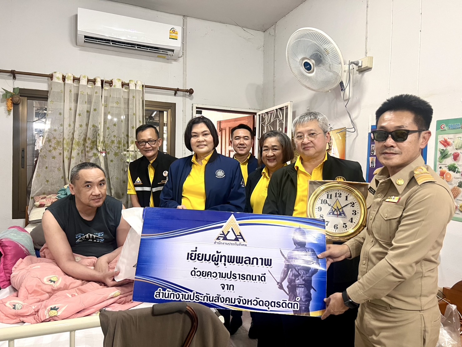 โดยในช่วงบ่าย หัวหน้าผู้ตรวจราชการกระทรวงแรงงาน ได้ลงพื้นที่เยี่ยมนายอัศวิน ใจใหญ่ อายุ 47 ปี ผู้ทุพพลภาพตามมาตรา 33 จากอาการเส้นเลือดในสมองแตก เมื่อวันที่ 20 มีนาคม 2566 ซึ่งปัจจุบันได้รับเงินทดแทนการขาดรายได้ เดือนละ 7,500 บาทตลอดชีวิต