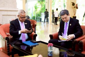 วันที่ 23 เมษายน 2568 เวลา 08.30 น. นายบุญสงค์ ทัพชัยยุทธ์ ปลัดกระทรวงแรงงาน ประชุมหารือร่วมกับกระทรวงการต่างประเทศ ประเด็นความคืบหน้าการดำเนินงานด้านแรงงานตามกรอบความร่วมมือทวิภาคีไทย – กัมพูชา เพื่อประกอบการประชุมแบบเต็มคณะของ นายพิพัฒน์ รัชกิจประการรัฐมนตรีว่าการกระทรวงแรงงาน ร่วมกับสมเด็จมหาบวรธิบดี ฮุน มาเนต นายกรัฐมนตรี ราชอาณาจักรกัมพูชา และซักซ้อมความเข้าใจกระบวนการลงนามเอกสารผลลัพธ์ด้านแรงงานจำนวน 2 ฉบับ ได้แก่