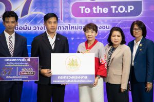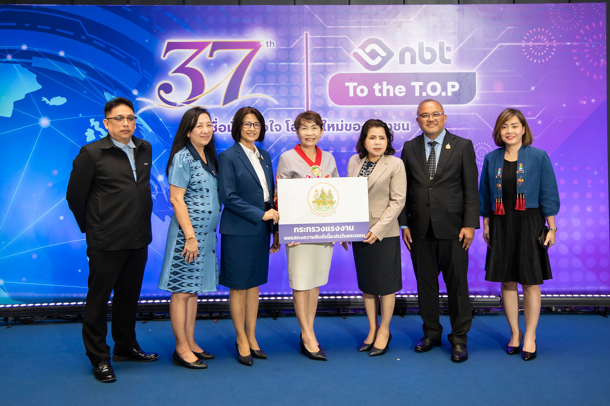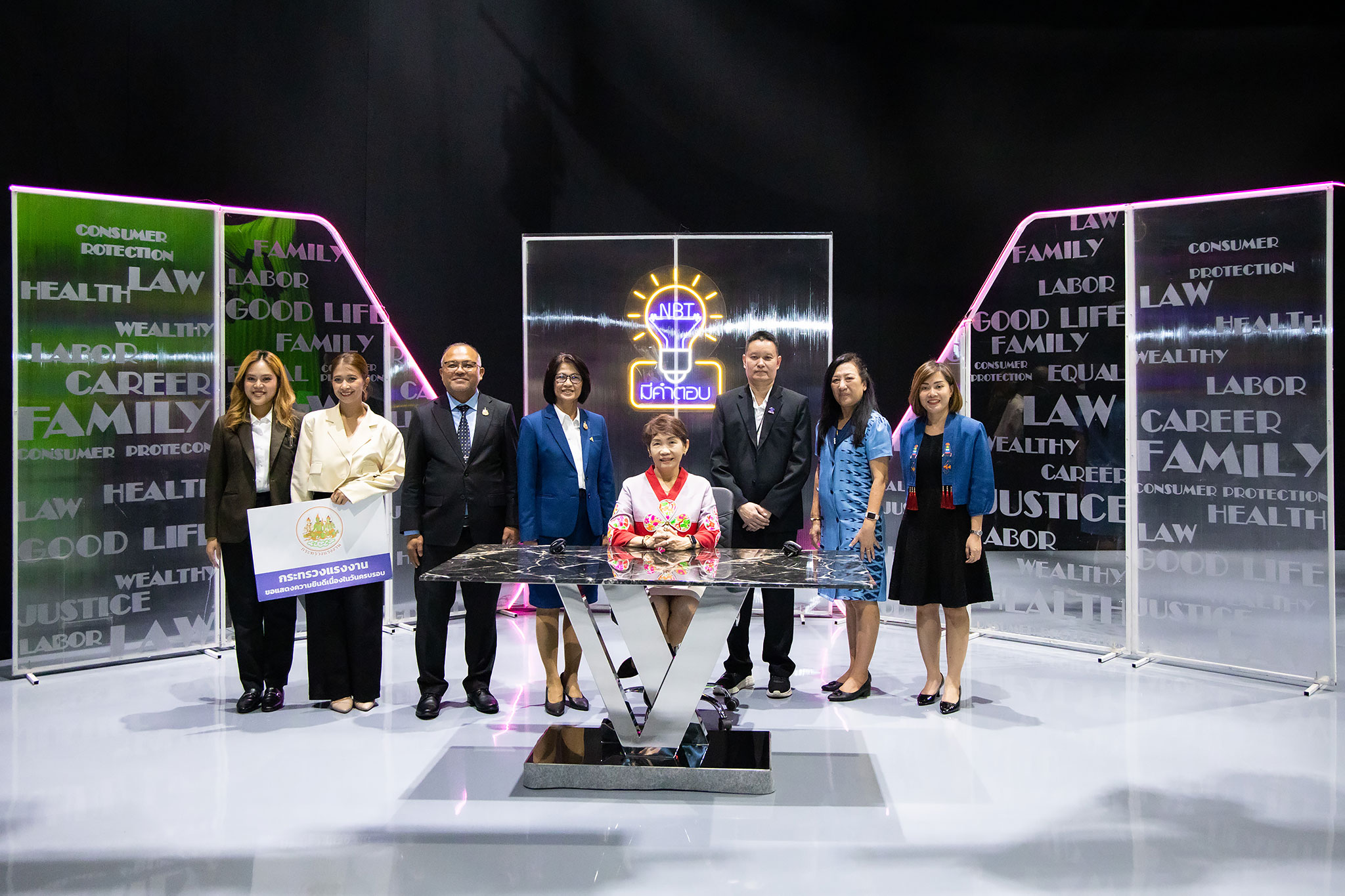 วันที่ 18 กรกฎาคม 2568 เวลา 11.30 น. นายบุญสงค์ ทัพชัยยุทธ์ ปลัดกระทรวงแรงงาน มอบหมายให้ นางสาวกรจิรัฏฐ์ พงจันทร์ศธร ผู้ช่วยปลัดกระทรวงแรงงาน นำคณะผู้บริหารและผู้แทนหน่วยงานในสังกัดกระทรวงแรงงานร่วมแสดงความยินดีเนื่องในโอกาสก้าวสู่ปีที่ 38 สถานีวิทยุโทรทัศน์แห่งประเทศไทย (NBT) และเพื่อแสดงความขอบคุณที่สถานีวิทยุโทรทัศน์แห่งประเทศไทย (NBT) ให้ความอนุเคราะห์ในการประชาสัมพันธ์ข่าวของกระทรวงแรงงานด้วยดีตลอดมา โดยมี นายปิยะ มีผล ผู้อำนวยการฝ่ายข่าวสถานีวิทยุโทรทัศน์แห่งประเทศไทย และคณะ ให้การต้อนรับและรับมอบกระเช้าดอกไม้ ณ บริเวณชั้น 2 อาคารศูนย์ปฏิบัติการแพร่ภาพ ออกอากาศการกระจายเสียงวิทยุและการให้บริการข้อมูลข่าวสารภาครัฐ ถนนวิภาวดี แขวงรัชดาภิเษก เขตดินแดง กรุงเทพมหานคร