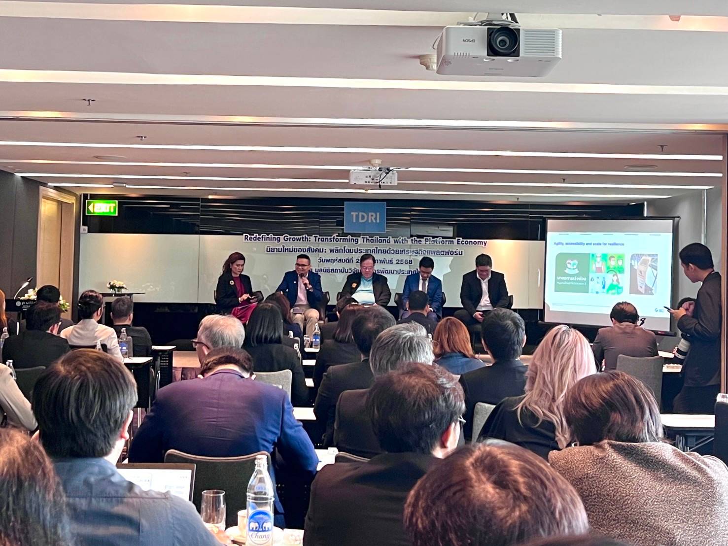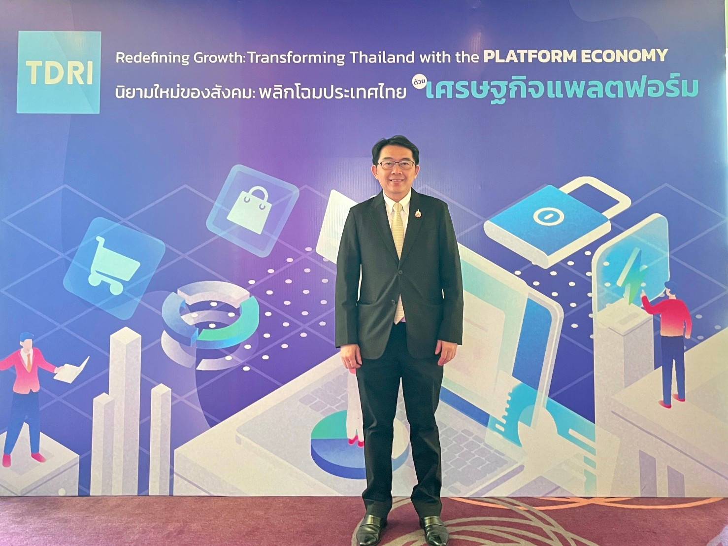 วันที่ 20 กุมภาพันธ์ 2568 เวลา 10.00 น. นายบุญสงค์ ทัพชัยยุทธ์ ปลัดกระทรวงแรงงาน มอบหมายให้ นายณัฐวุฒิ ภัทรประยูร จัดหางานจังหวัดร้อยเอ็ด รักษาการในตำแหน่งที่ปรึกษาวิชาการแรงงาน ร่วมงานเสวนาเชิงวิชาการในห้วข้อ “นิยามใหม่ของสังคม : พลิกโฉมประเทศไทยด้วยเศรษฐกิจแพลตฟอร์ม (Redefining Growth : Transforming Thailand with the Platform Economy) ” ห้อง Sigma Room ชั้น 6 โรงแรมพูลแมน คิง พาวเวอร์ กรุงเทพมหานคร โดยมี ดร.กิริฎา เภาพิจิตร จากมูลนิธิสถาบันวิจัยเพื่อการพัฒนาประเทศไทย เป็นผู้ดำเนินการอภิปราย ทั้งนี้ งานดังกล่าวจัดขึ้นเพื่อเป็นเวทีในการแลกเปลี่ยนความคิดเห็นและนำเสนอผลกระทบเชิงบวกของเศรษฐกิจแพลตฟอร์มที่มีต่อโครงสร้างเศรษฐกิจของประเทศไทย โดยได้รับเกียรติจากผู้นำทางความคิดจากภาควิชาการ ภาครัฐ และภาคเอกชน