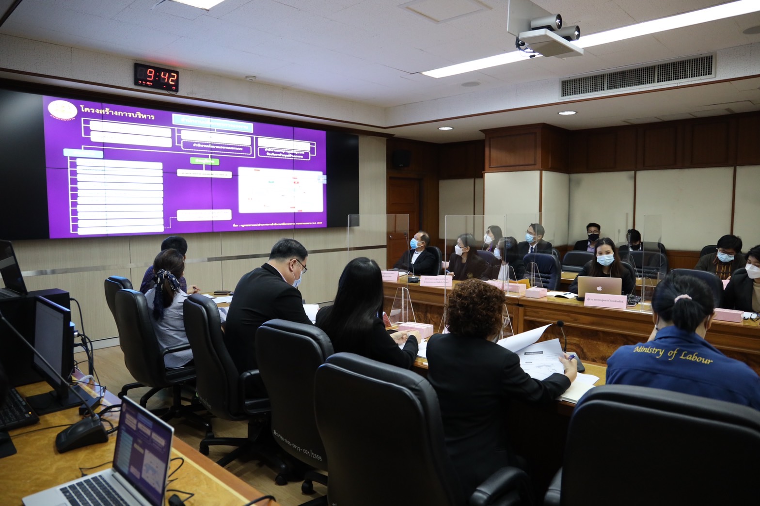 วันที่ 11 พฤศจิกายน 2564 นายบุญชอบ สุทธมนัสวงษ์ ปลัดกระทรวงแรงงาน เป็นประธานการประชุมตรวจเยี่ยมและมอบแนวทางการปฏิบัติงานสำนักงานปลัดกระทรวง ปีงบประมาณ พ.ศ. 2565 เพื่อรับฟังการนำเสนอภารกิจในภาพรวมของกระทรวงแรงงาน การนำเสนองานสำคัญของสำนักงานปลัดกระทรวงแรงงานที่มีการดำเนินการทั้งในส่วนกลางและส่วนภูมิภาค การนำเสนองานสนับสนุนและการพัฒนาองค์กรจากผู้อำนวยการที่รับผิดชอบในแต่ละเรื่อง รวมถึงมอบแนวทางการปฏิบัติงานให้ข้าราชการและเจ้าหน้าที่ประจำกระทรวงแรงงาน โดยมีนางสาวบุปผา เรืองสุด รองปลัดกระทรวงแรงงาน ผู้บริหารระดับสูง และผู้เกี่ยวข้อง เข้าร่วมประชุม ณ ห้องประชุมประสงค์ รณะนันทน์ ชั้น 5 อาคารกระทรวงแรงงาน