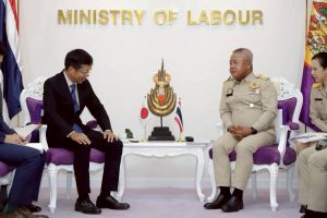 วันที่ 21 กรกฎาคม 2568 เวลา 13.00 น. นายบุญสงค์ ทัพชัยยุทธ์ ปลัดกระทรวงแรงงาน ให้การต้อนรับ นายคะจิวาระ โทรุ (Mr. KAJIWARA Toru) อัครราชทูตและหัวหน้าฝ่ายเศรษฐกิจ สถานเอกอัครราชทูตญี่ปุ่นประจำประเทศไทย และคณะ ในโอกาสเข้าพบเพื่อหารือใน ประเด็นด้านแรงงาน โดยมี นายสมชาย มรกตศรีวรรณ อธิบดีกรมการจัดหางาน และผู้บริหารระดับสูง กระทรวงแรงงาน ร่วมด้วย ณ ห้องประชุมปลัดกระทรวงแรงงาน ชั้น 7 อาคารกระทรวงแรงงาน