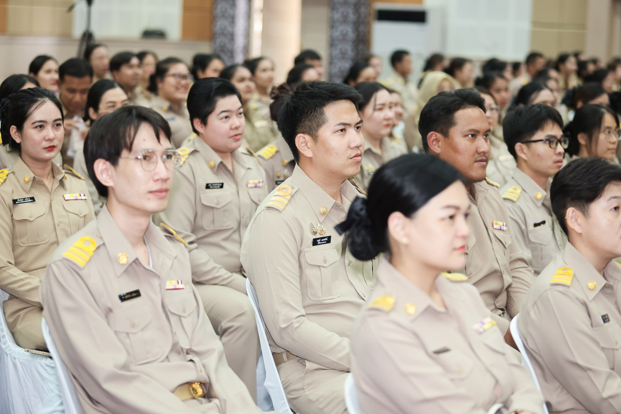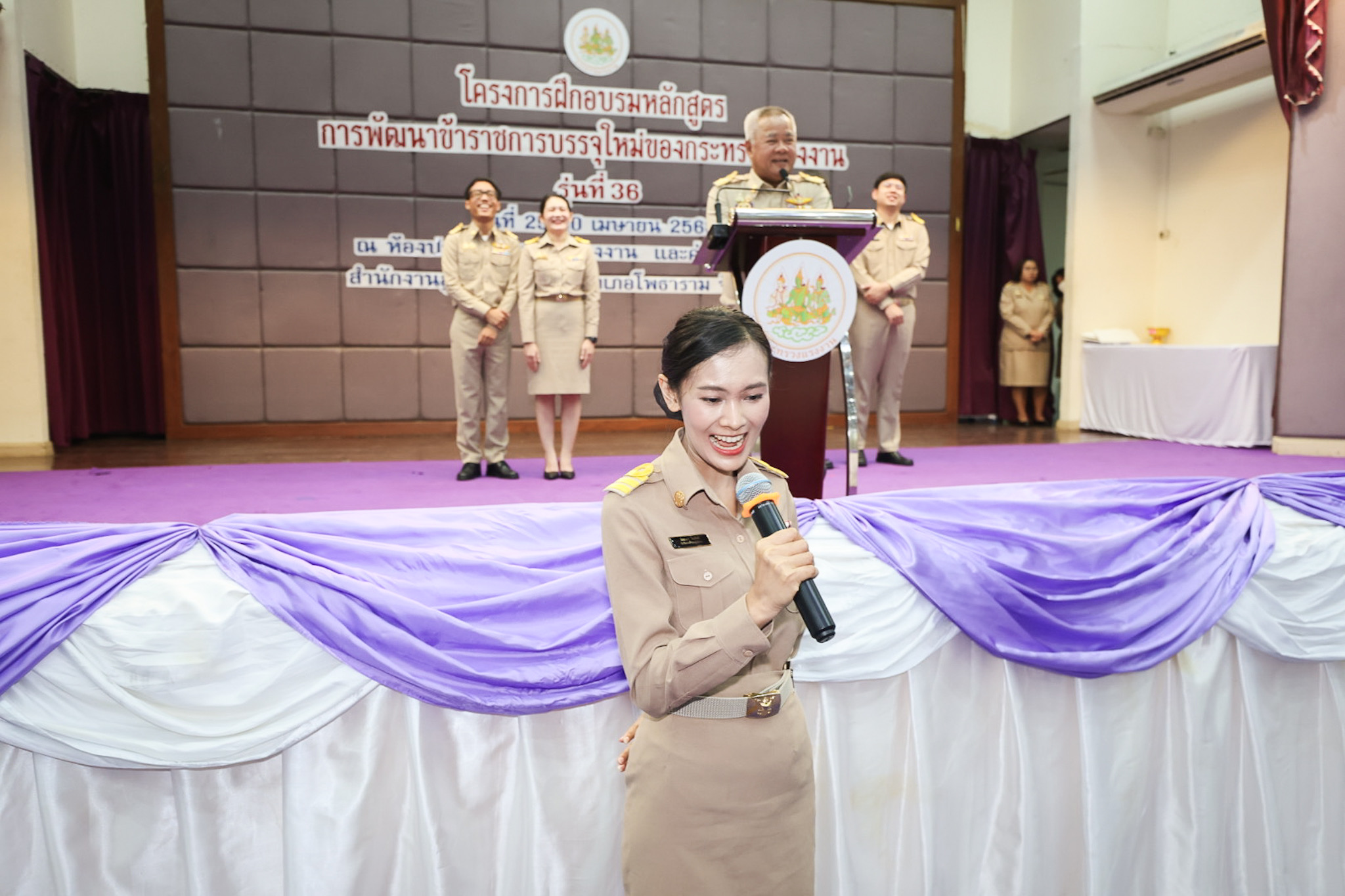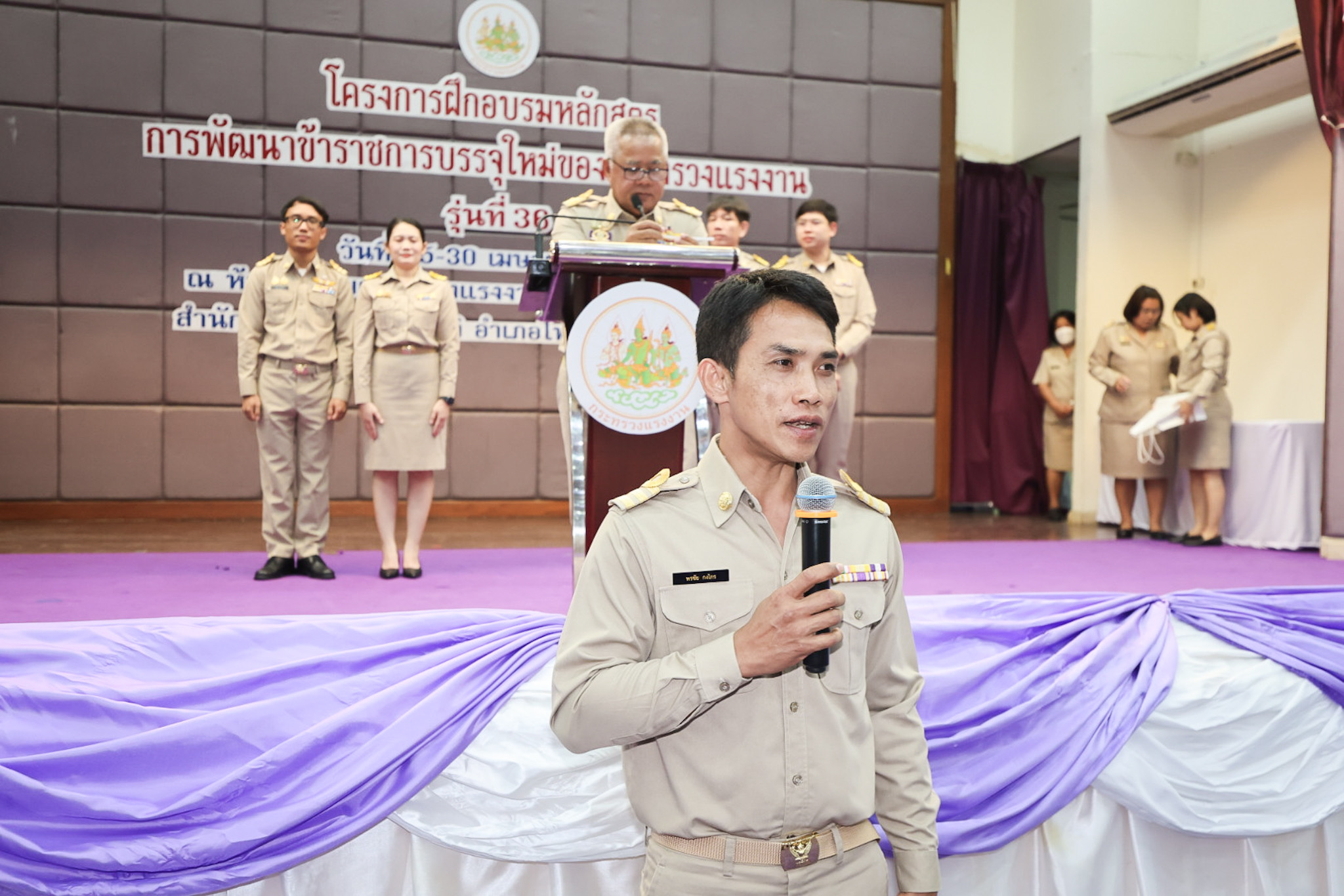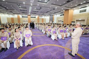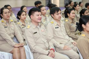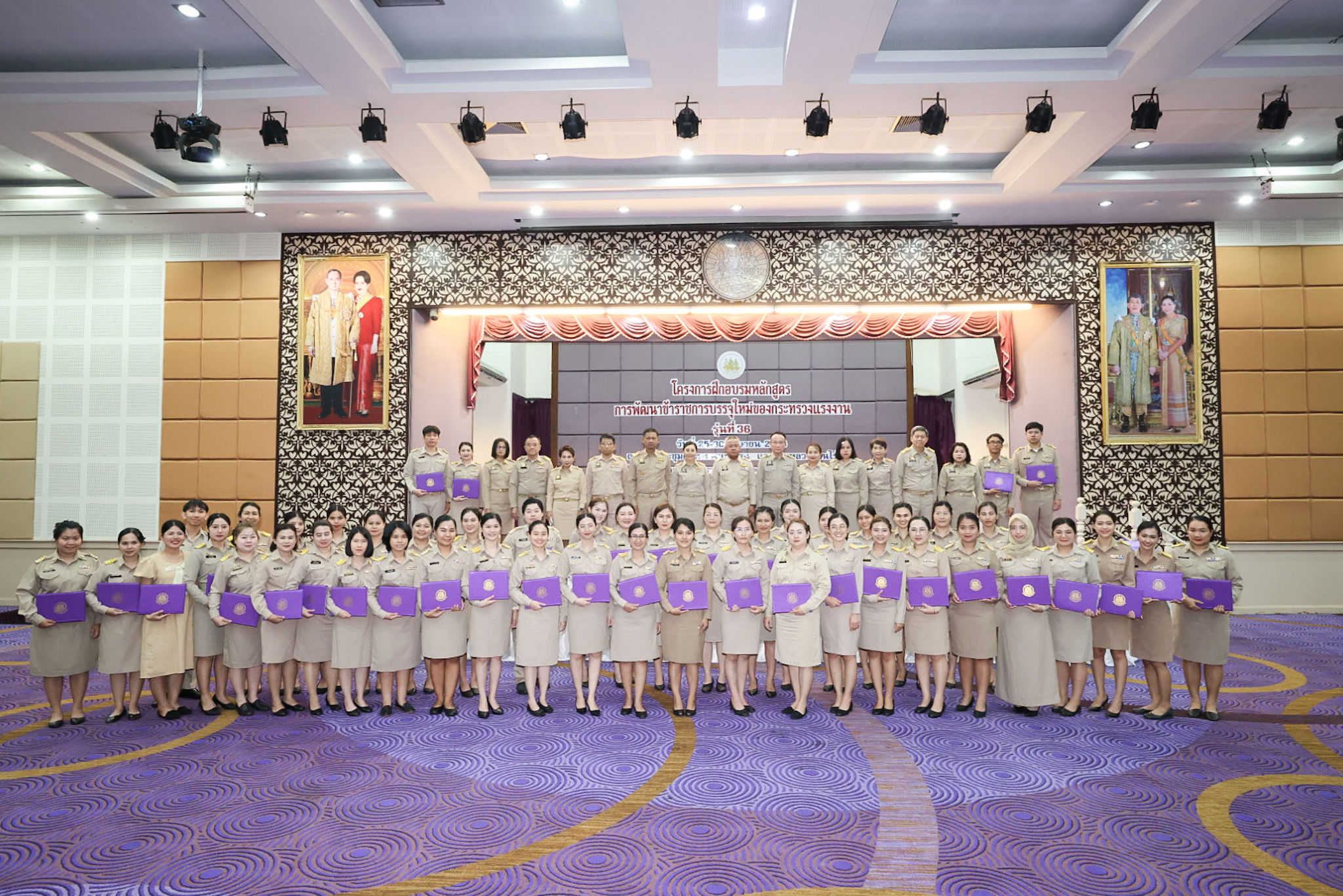 สำหรับโครงการฝึกอบรมหลักสูตรการพัฒนาข้าราชการบรรจุใหม่ของกระทรวงแรงงาน รุ่นที่ 36 ดำเนินการตามแนวทางที่สำนักงาน ก.พ. กำหนด มีผู้เข้ารับการฝึกอบรม 218 คน ดำเนินการตั้งแต่วันที่ 25 – 30 เมษายน 2568 รวมระยะเวลาฝึกอบรม 6 วัน โดยผู้เข้ารับการฝึกอบรมได้เรียนรู้เนื้อหาวิชาในภาควิชาการและกิจกรรมกลุ่มสัมพันธ์จากวิทยากรผู้ทรงคุณวุฒิ รวมทั้งมีการลงมือปฏิบัติจริงในห้องเรียนและนอกห้องเรียน ซึ่งผู้เข้ารับการฝึกอบรมทุกคนได้เข้าร่วมกิจกรรมตามที่กำหนด และมีส่วนร่วมในกิจกรรมต่าง ๆ เป็นอย่างดี ทำให้การฝึกอบรมในครั้งนี้เป็นไปด้วยความเรียบร้อย บรรลุตามวัตถุประสงค์ที่ตั้งไว้ในโครงการ