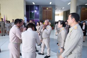 วันที่ 25 สิงหาคม 2568 เวลา 06.30 น. นายบุญสงค์ ทัพชัยยุทธ์ ปลัดกระทรวงแรงงาน สักการะสิ่งศักดิ์สิทธิ์ประจำกระทรวงแรงงาน ประกอบด้วย พระพุทธสุทธิธรรมบพิตร พระพุทธชินราช ศาลพ่อปู่ชัยมงคล ศาลท้าวมหาพรหมเทวฤทธิ์ ศาลพ่อปู่ชินพรหมมา เนื่องในโอกาสอำลาตำแหน่ง โดยมี นางสาวบุปผา เรืองสุด รองปลัดกระทรวงแรงงาน นายสมาสภ์ ปัทมะสุคนธ์ รองปลัดกระทรวงแรงงาน นางสาวบุณยวีร์ ไขว้พันธุ์ หัวหน้าผู้ตรวจราชการกระทรวงแรงงาน นายพิเชษฐ์ ทองพันธ์ ผู้ตรวจราชการกระทรวงแรงงาน ว่าที่ร้อยตรี สมศักดิ์ พรหมดำ ผู้ตรวจราชการกระทรวงแรงงาน นายเกริกไกร นาสมยนต์ ที่ปรึกษากฎหมาย นายณัฐวุฒิ ภัทรประยูร ที่ปรึกษาวิชาการแรงงาน นางสาวกรจิรัฏฐ์ พงจันทร์ศธร ผู้ช่วยปลัดกระทรวงแรงงาน นายศักดินาถ สนธิศักดิ์โยธิน ผู้ช่วยปลัดกระทรวงแรงงาน พร้อมด้วย ผู้บริหารระดับสูงกระทรวงแรงงาน ข้าราชการ เจ้าหน้าที่ จากทุกหน่วยงานในสังกัดกระทรวงแรงงาน ร่วมมอบดอกไม้ให้กำลังใจ ณ บริเวณโถงด้านล่างกระทรวงแรงงาน