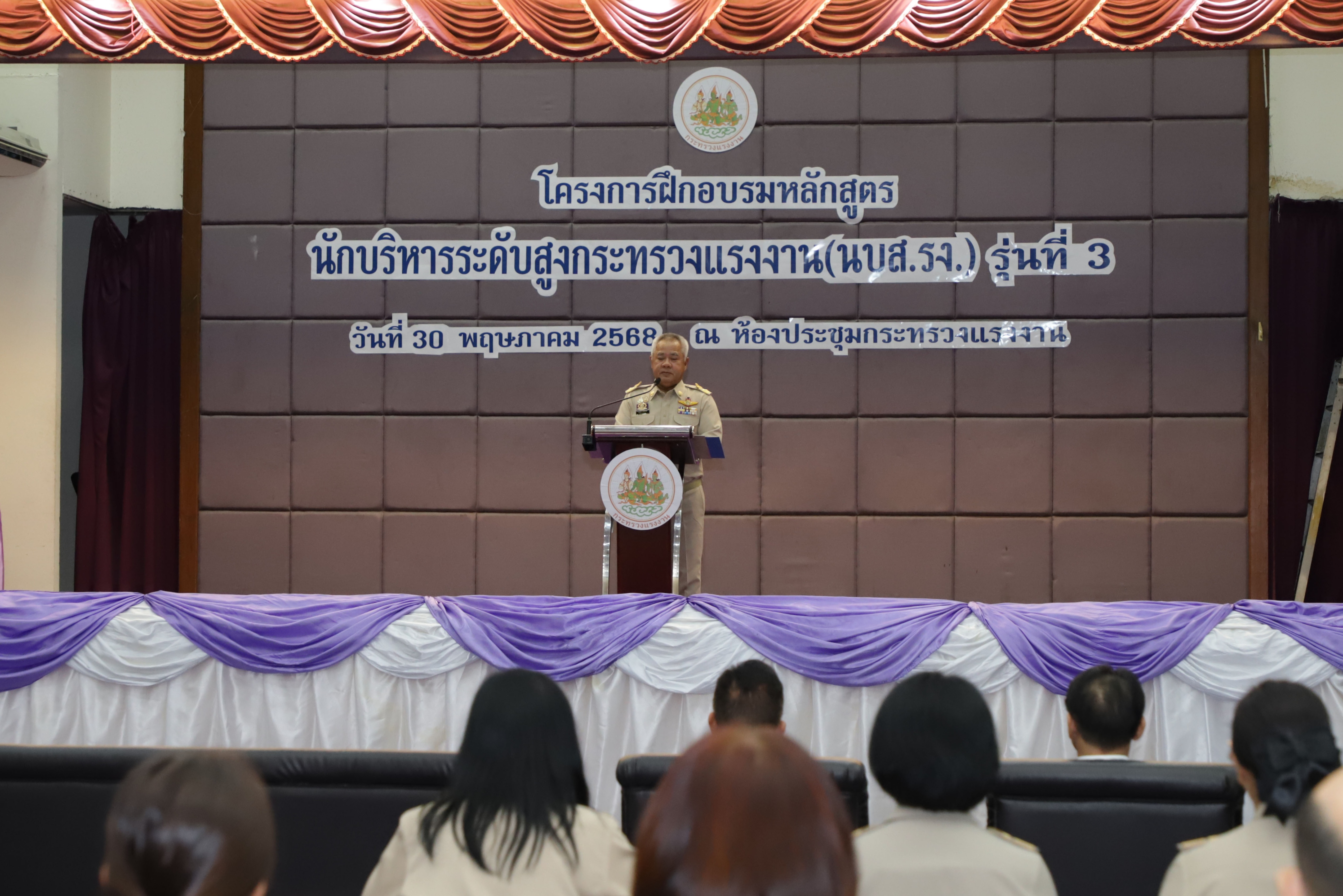วันที่ 30 พฤษภาคม 2568 เวลา 11.00 น. นายบุญสงค์ ทัพชัยยุทธ์ ปลัดกระทรวงแรงงาน เป็นประธานเปิดการฝึกอบรมหลักสูตรนักบริหารระดับสูงกระทรวงแรงงาน (นบส.รง.) รุ่นที่ 3 โดยมี นางสาวบุปผา เรืองสุด รองปลัดกระทรวงแรงงาน ว่าที่ร้อยตรี สมศักดิ์ พรหมดำ ผู้ตรวจราชการกระทรวงแรงงาน นางสาวจีระภา บุญรัตน์ ผู้ตรวจราชการกระทรวงแรงงาน นายศักดินาถ สนธิศักดิ์โยธิน ผู้ช่วยปลัดกระทรวงแรงงาน พร้อมด้วย ผู้บริหารกระทรวงแรงงานเข้าร่วมงานดังกล่าว ณ ห้องประชุมกระทรวงแรงงาน ชั้น 5 อาคารกระทรวงแรงงาน