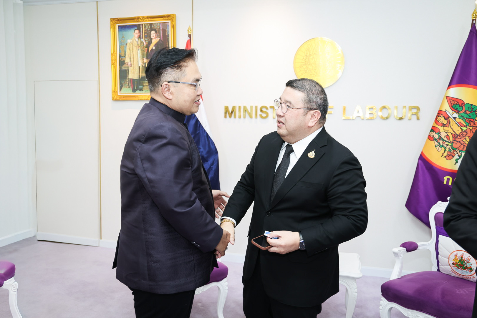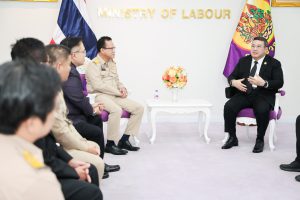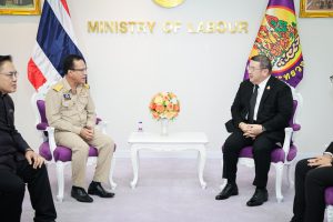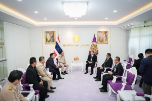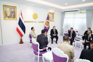 วันที่ 9 มีนาคม 2569 เวลา 10.00 น. พันตำรวจโท วรรณพงษ์ คชรักษ์ ปลัดกระทรวงแรงงาน ให้การต้อนรับ นายจักรพงศ์ คำจันทร์ ผู้ว่าการการประปาส่วนภูมิภาค (กปภ.) ในโอกาสนำคณะผู้บริหารและตัวแทนสหภาพแรงงานการประปาส่วนภูมิภาค เข้าพบเพื่อแนะนำตัวในโอกาสเข้ารับตำแหน่งคณะกรรมการแรงงานรัฐวิสาหกิจสัมพันธ์ พร้อมหารือประเด็นสวัสดิการพนักงานและการผลักดันการปรับโครงสร้างเงินเดือน โดยมี เรือเอก สาโรจน์ คมคาย อธิบดีกรมสวัสดิการและคุ้มครองแรงงาน พร้อมด้วย นายโสภณ ปราบณรงค์ ผู้อำนวยการสำนักแรงงานสัมพันธ์ กรมสวัสดิการและคุ้มครองแรงงาน เข้าร่วมด้วย ณ ห้องรับรองปลัดกระทรวงแรงงาน ชั้น 7 อาคารกระทรวงแรงงาน