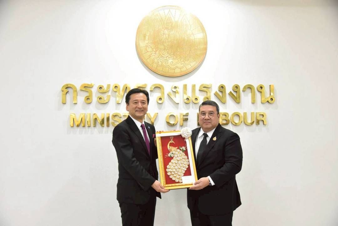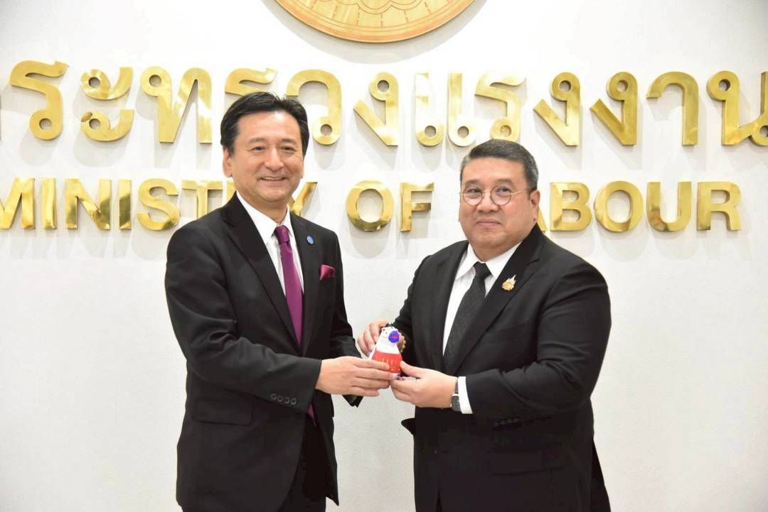 วันที่ 5 กุมภาพันธ์ 2569 เวลา 14.00 น. พันตำรวจโท วรรณพงษ์ คชรักษ์ ปลัดกระทรวงแรงงาน ให้การต้อนรับ นายยามากุจิ โยชิโนริ ผู้ว่าราชการจังหวัดซากะ ประเทศญี่ปุ่น ในโอกาสเข้าพบเพื่อเยี่ยมคารวะและหารือแนวทางความร่วมมือด้านแรงงานและวัฒนธรรม โดยมี นายศักดินาถ สนธิศักดิ์โยธิน ผู้ช่วยปลัดกระทรวงแรงงาน นายมงคล สงคราม รองอธิบดีกรมการจัดหางาน พร้อมผู้บริหารและเจ้าหน้าที่หน่วยงานในสังกัดกระทรวงแรงงานร่วมให้การต้อนรับ ณ ห้องประชุมปลัดกระทรวงแรงงาน ชั้น 7 อาคารกระทรวงแรงงาน