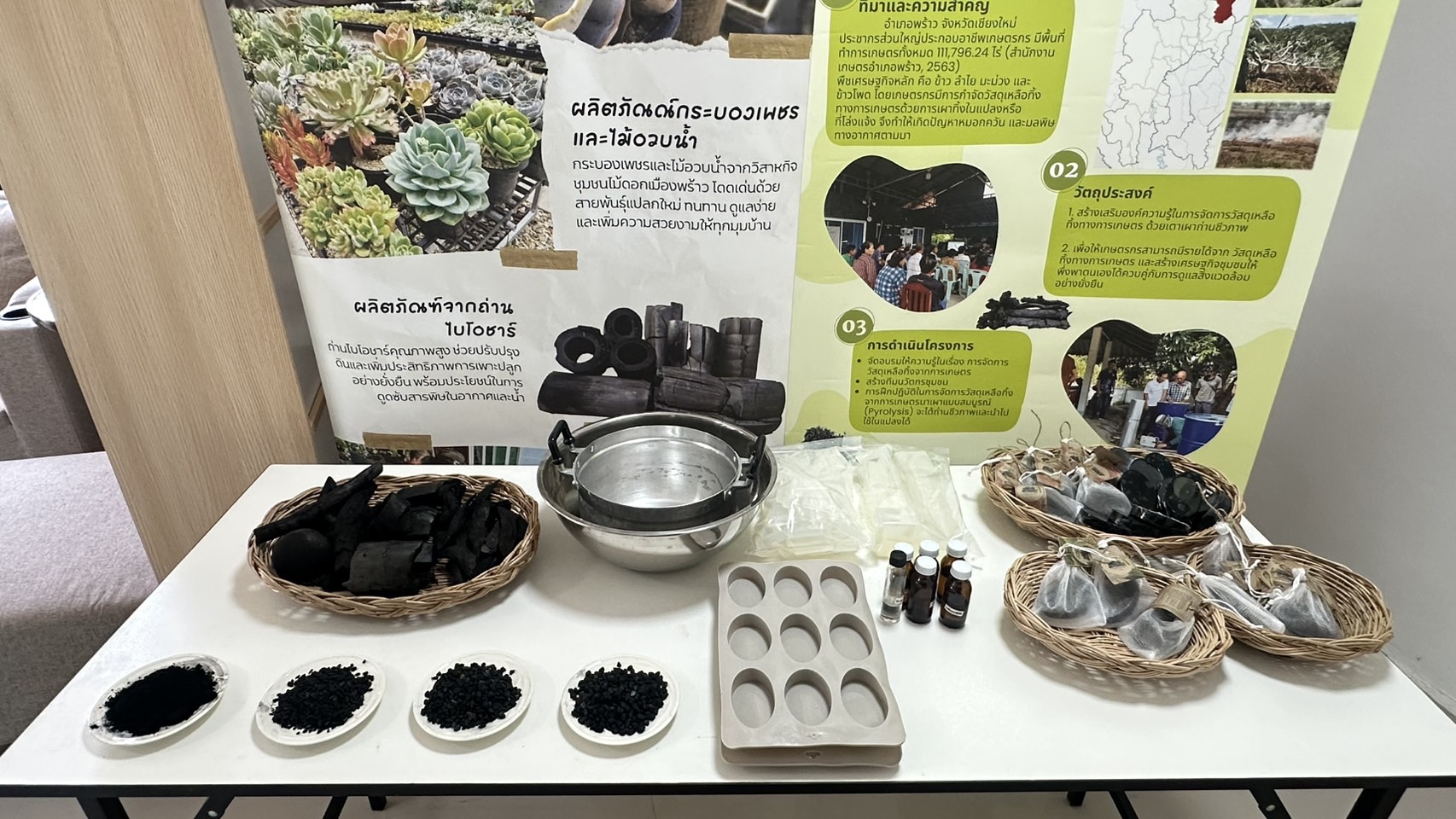 สำหรับกลุ่มดังกล่าว มีจำนวนสมาชิก 12 คน เป็นผู้ประกันตนมาตรา 33 จำนวน 1 คน ผู้ประกันตนตามมาตรา 40 ทางเลือกที่ 2 จำนวน 10 คน โดยมีวัตถุประสงค์เพื่อรับผลิตจากถ่านไปโอชา ผลิตถ่านไบโอชาร์ และผลิตเตาเผาถ่านไบโอชาร์