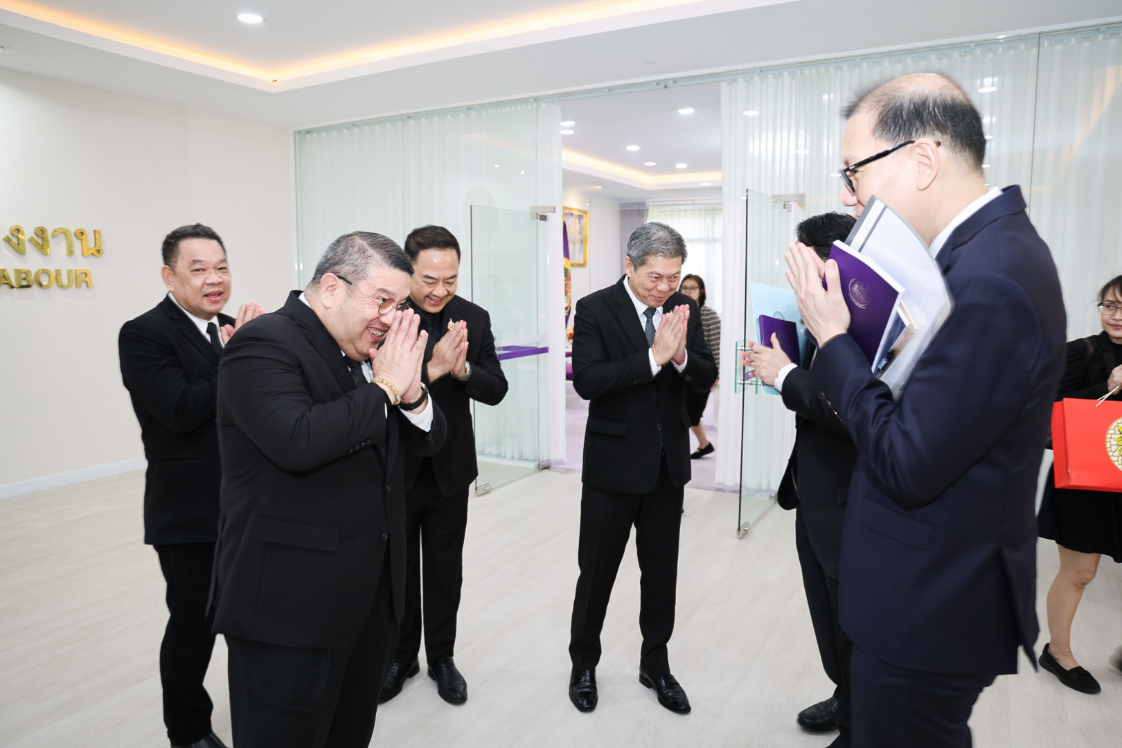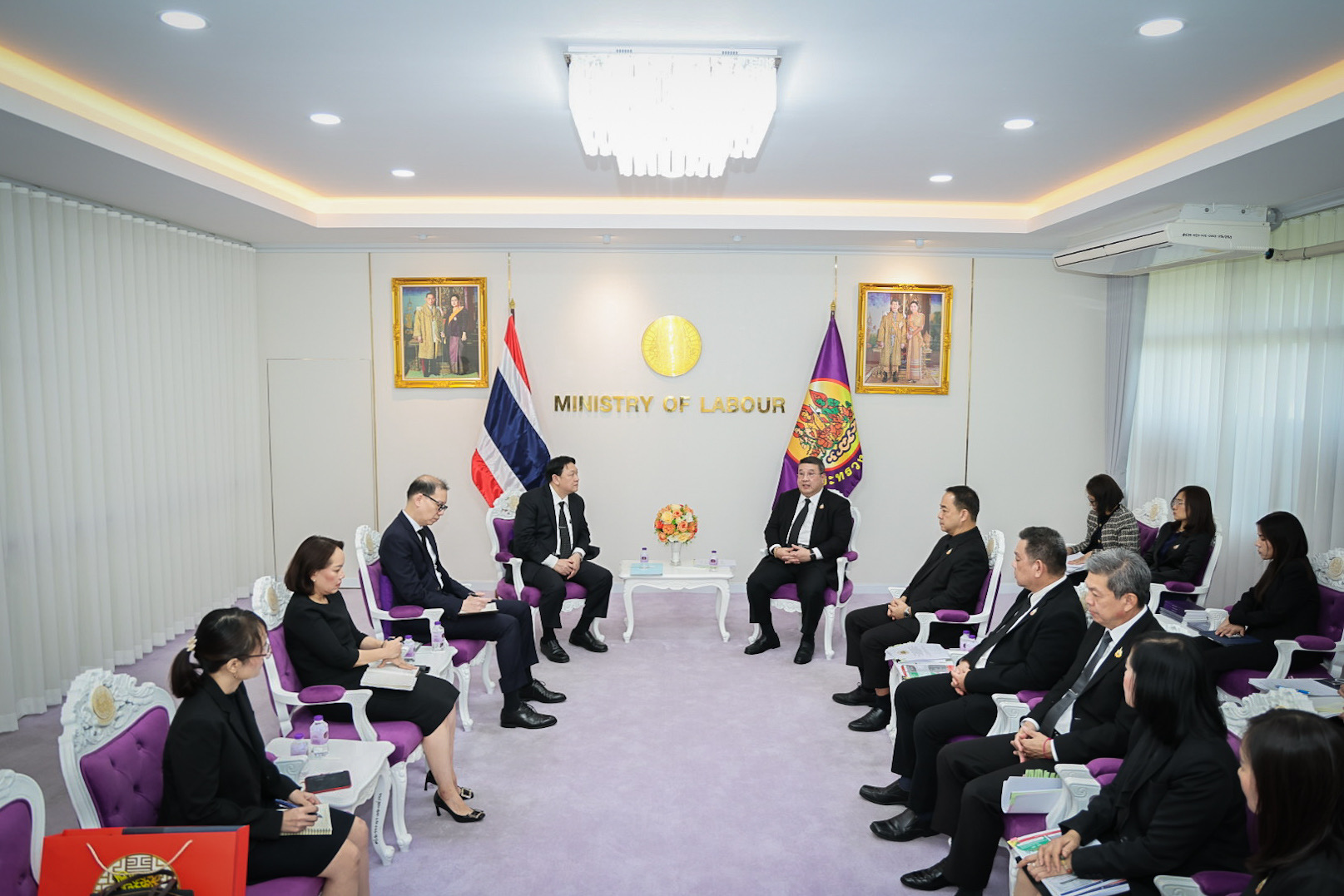 เมื่อวันที่ 19 กุมภาพันธ์ 2569 พันตำรวจโท วรรณพงษ์ คชรักษ์ ปลัดกระทรวงแรงงาน ให้การต้อนรับ นายพงศ์ปราชญ์ มากแจ้ง เอกอัครราชทูตวิสามัญผู้มีอำนาจเต็มประจำราชอาณาจักรซาอุดิอาระเบีย พร้อมด้วย นายทรงชัย ชัยปฏิยุทธ เอกอัครราชทูตวิสามัญผู้มีอำนาจเต็มประจำรัฐคูเวต และคณะ ในโอกาสเข้าพบเพื่อเยี่ยมคารวะและหารือข้อราชการด้านแรงงาน รวมถึงประเด็นที่เกี่ยวข้องเพื่อผลักดันแรงงานไทยเข้าสู่ตลาดตะวันออกกลาง โดยมี นายสมาสภ์ ปัทมะสุคนธ์ อธิบดีกรมพัฒนาฝีมือแรงงาน นายมงคล สงคราม รองอธิบดีกรมการจัดหางาน นายศักดินาถ สนธิศักดิ์โยธิน ผู้ช่วยปลัดกระทรวงแรงงาน ผู้อำนวยการสำนักประสานความร่วมมือระหว่างประเทศ สำนักงานปลัดกระทรวงแรงงาน ร่วมให้การต้อนรับและหารือ ณ ห้องรับรองปลัดกระทรวงแรงงาน ชั้น 7 อาคารกระทรวงแรงงาน