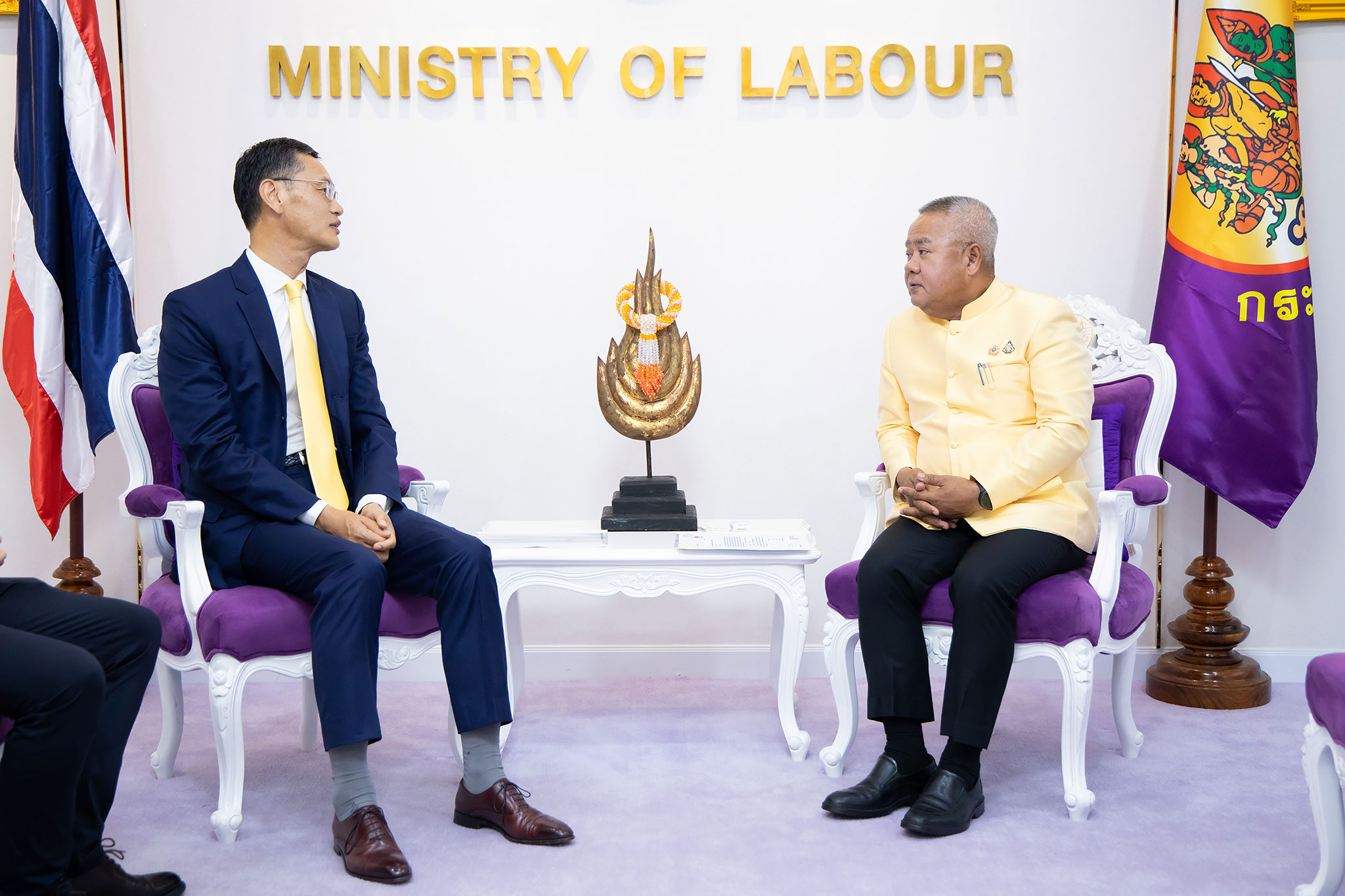 วันที่ 25 กรกฎาคม 2568 เวลา 16.00 น. นายบุญสงค์ ทัพชัยยุทธ์ ปลัดกระทรวงแรงงาน ให้การต้อนรับ นายเจย์ เฉิน ประธานกรรมการ บริษัท หัวเว่ย เทคโนโลยี (ประเทศไทย) จำกัด และ คณะผู้บริหารบริษัทหัวเว่ยฯ ในโอกาสหารือ ประเด็นการพัฒนาทักษะแรงงานดิจิทัลขั้นสูง พร้อมแลกเปลี่ยนวิสัยทัศน์ด้านแรงงานระหว่างกัน ณ ห้องรับรองปลัดกระทรวงแรงงาน ชั้น 7 อาคารกระทรวงแรงงาน
