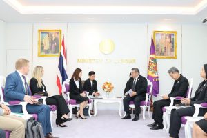 โดยมี นายศักดินาถ สนธิศักดิ์โยธิน ผู้ช่วยปลัดกระทรวงแรงงาน นางอุสนีย์ ศิลปศร รองเลขาธิการสำนักงานประกันสังคม และเจ้าหน้าที่ที่เกี่ยวข้อง ร่วมให้การต้อนรับ ณ ห้องรับรองปลัดกระทรวงแรงงาน ชั้น 7 อาคารกระทรวงแรงงาน
