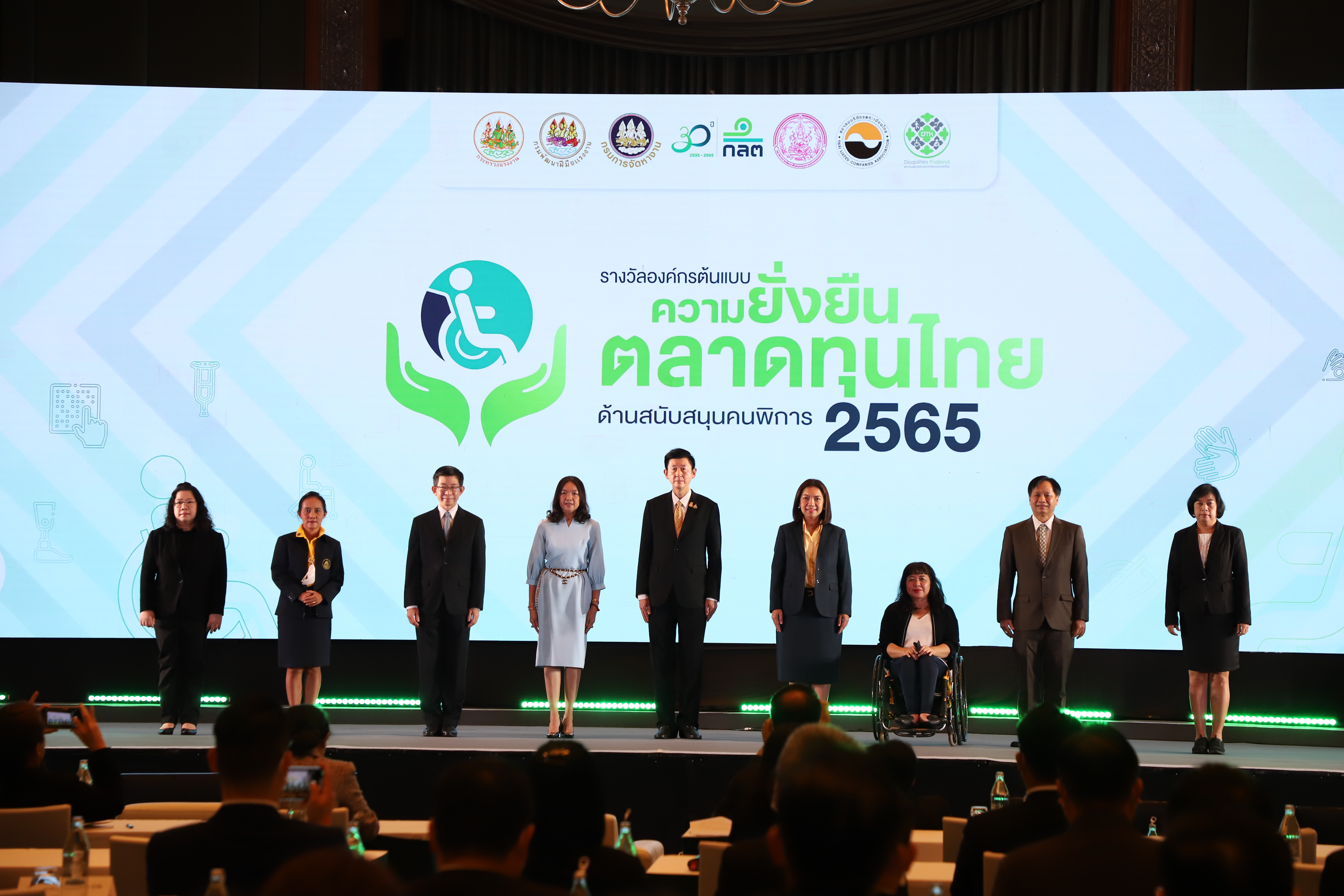 วันที่ 21 พฤศจิกายน 2565 เวลา 10.00 น. นายบุญชอบ สุทธมนัสวงษ์ ปลัดกระทรวงแรงงาน เป็นประธานในพิธีมอบรางวัล “องค์กรต้นแบบความยั่งยืนในตลาดทุนไทยด้านสนับสนุนคนพิการ” ณ ห้องแกรนด์ บอลรูม โรงแรมแกรนด์ ไฮแอท เอราวัณ กรุงเทพฯ เพื่อยกย่องเชิดชูเกียรติบริษัท/หน่วยงานในตลาดทุนที่สนับสนุนส่งเสริมการจ้างงานคนพิการตาม มาตรา 33 และ 35 แห่ง พ.ร.บ.ส่งเสริมและพัฒนาคุณภาพชีวิตคนพิการ พ.ศ. 2550 ทำให้คนพิการมีงานทำ มีอาชีพ มีรายได้ มีคุณภาพชีวิตที่ดี