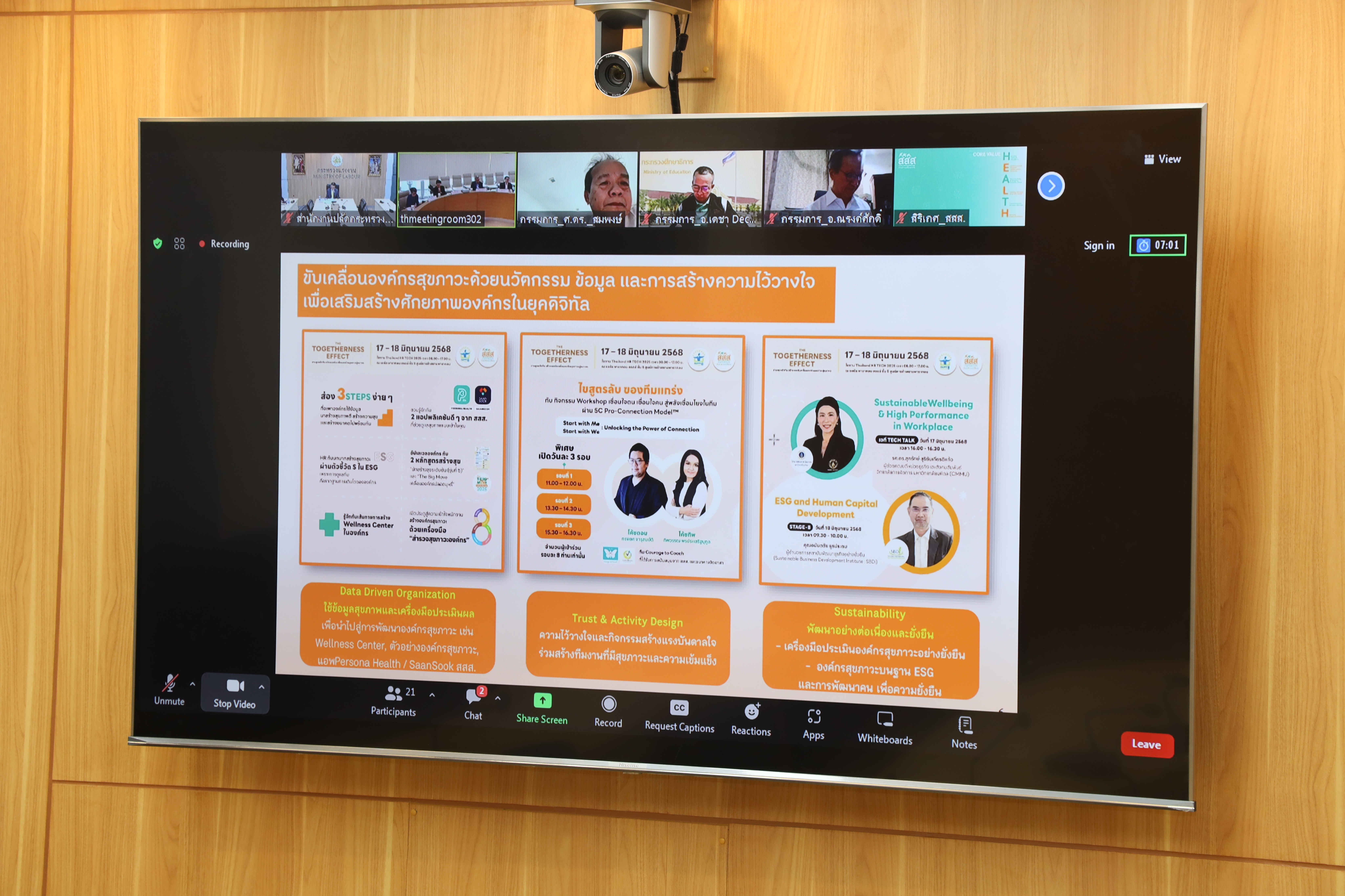 สำหรับการประชุมในครั้งนี้ ที่ประชุมได้พิจารณา (ร่าง) แผนการดำเนินงานของแผนสร้างเสริมสุขภาวะในองค์กร ปีงประมาณ 2569 และ (ร่าง) แผนการดำเนินงานของแผนสุขภาวะเด็ก เยาวชน และครอบครัว ปีงบประมาณ 2569