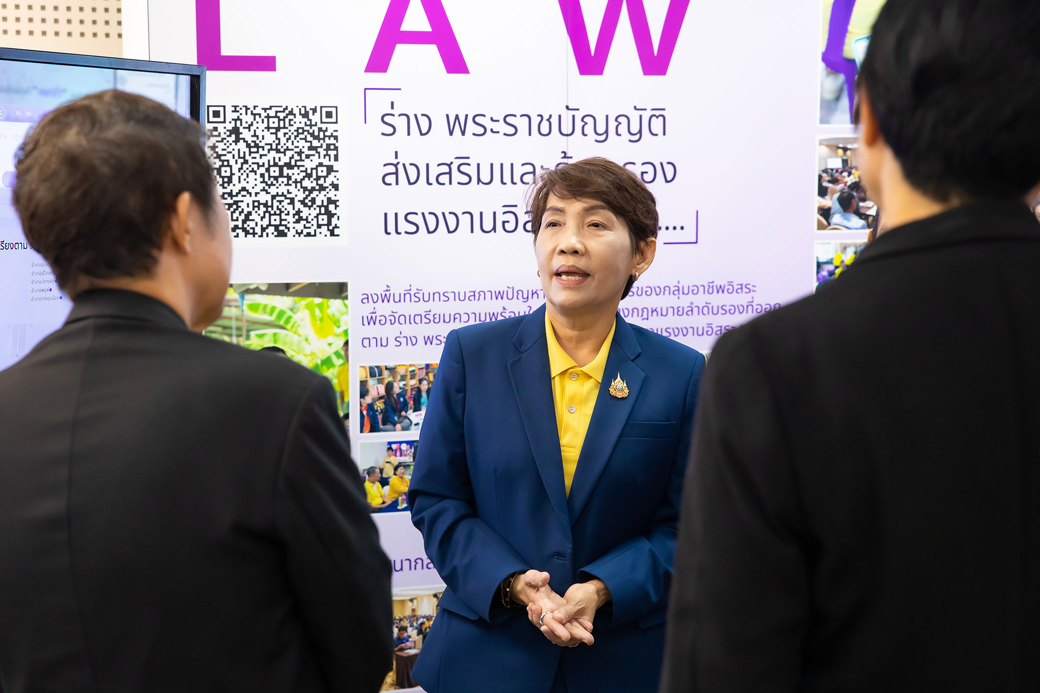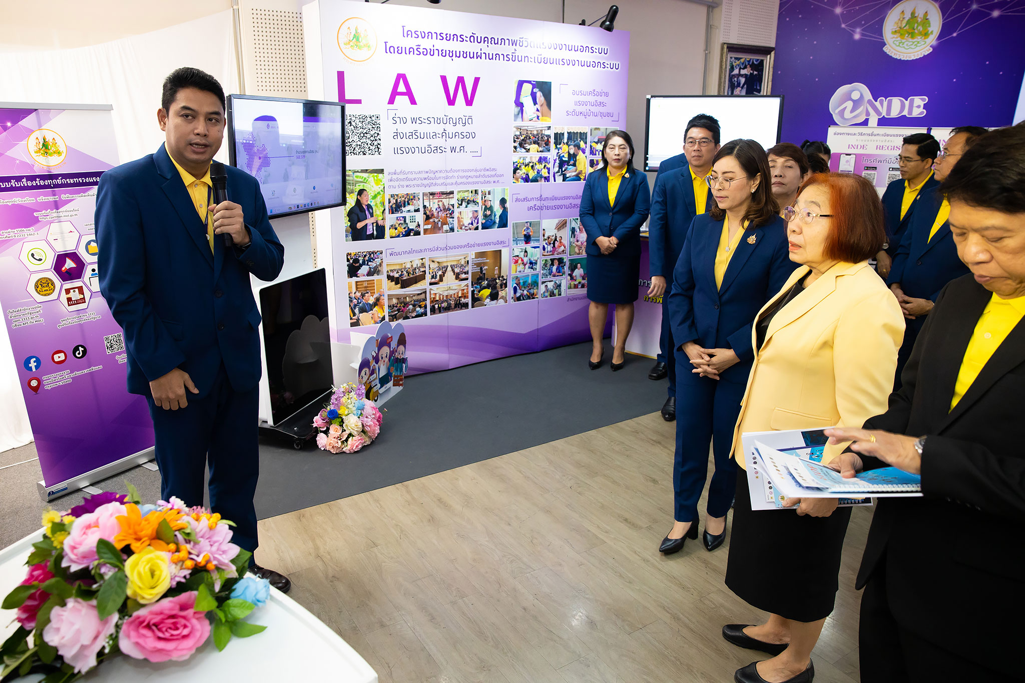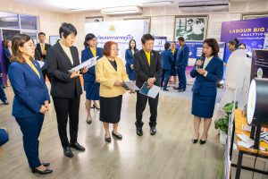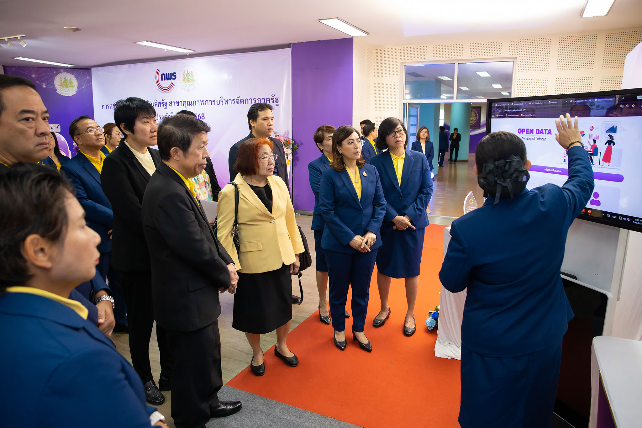 ในการนี้ รองปลัดกระทรวงแรงงาน ได้พาคณะผู้ตรวจประเมินฯ เยี่ยมชมบูทนิทรรศการ โดย สำนักงานปลัดกระทรวงแรงงานได้นำเสนอผลงานรางวัลเลิศรัฐ ประจำปี พ.ศ. 2568 สาขาคุณภาพการบริหารจัดการภาครัฐ 4.0 (PMQA 4.0) ได้แก่ ผลงานเด่นเรื่องที่ 1 การพัฒนาระบบเพิ่มศักยภาพการวิเคราะห์ข้อมูลขนาดใหญ่ด้านแรงงาน (Labour Big Data Analytics) ผลงานเด่นเรื่องที่ 2 การพัฒนาแนวทางการช่วยเหลือแรงงานไทยในประเทศอิสราเอล ผลงานเด่นเรื่องที่ 3 การพัฒนามาตรฐานการปฏิบัติงาน (SOP) การตรวจคัดกรองเบื้องต้นแรงงานบังคับ ผลงานเด่นเรื่องที่ 4 การพัฒนาระบบศูนย์บริการประชาชนกระทรวงแรงงาน (MOL Service Center System) และผลงานเด่นเรื่องที่ 5 (การยกระดับสู่การเป็นระบบราชการ 4.0 ในอนาคต) การพัฒนาคุณภาพชีวิตแรงงานอิสระ