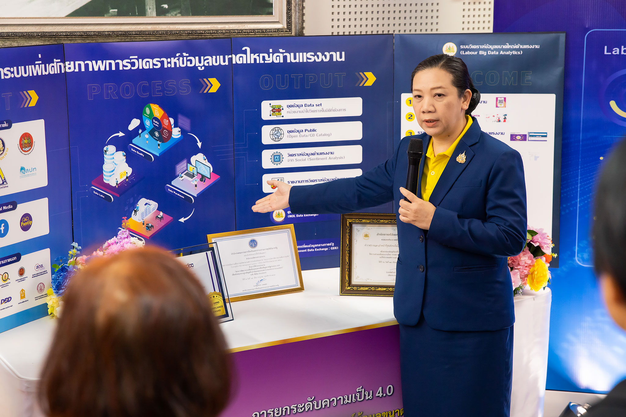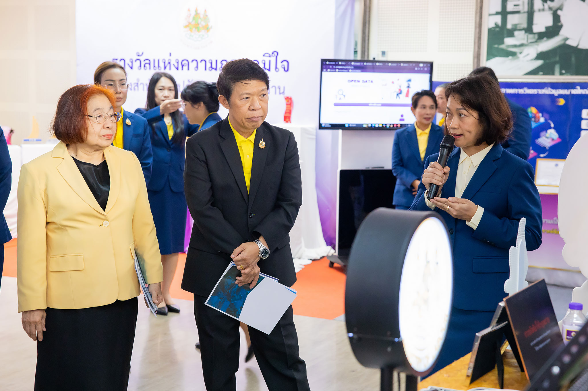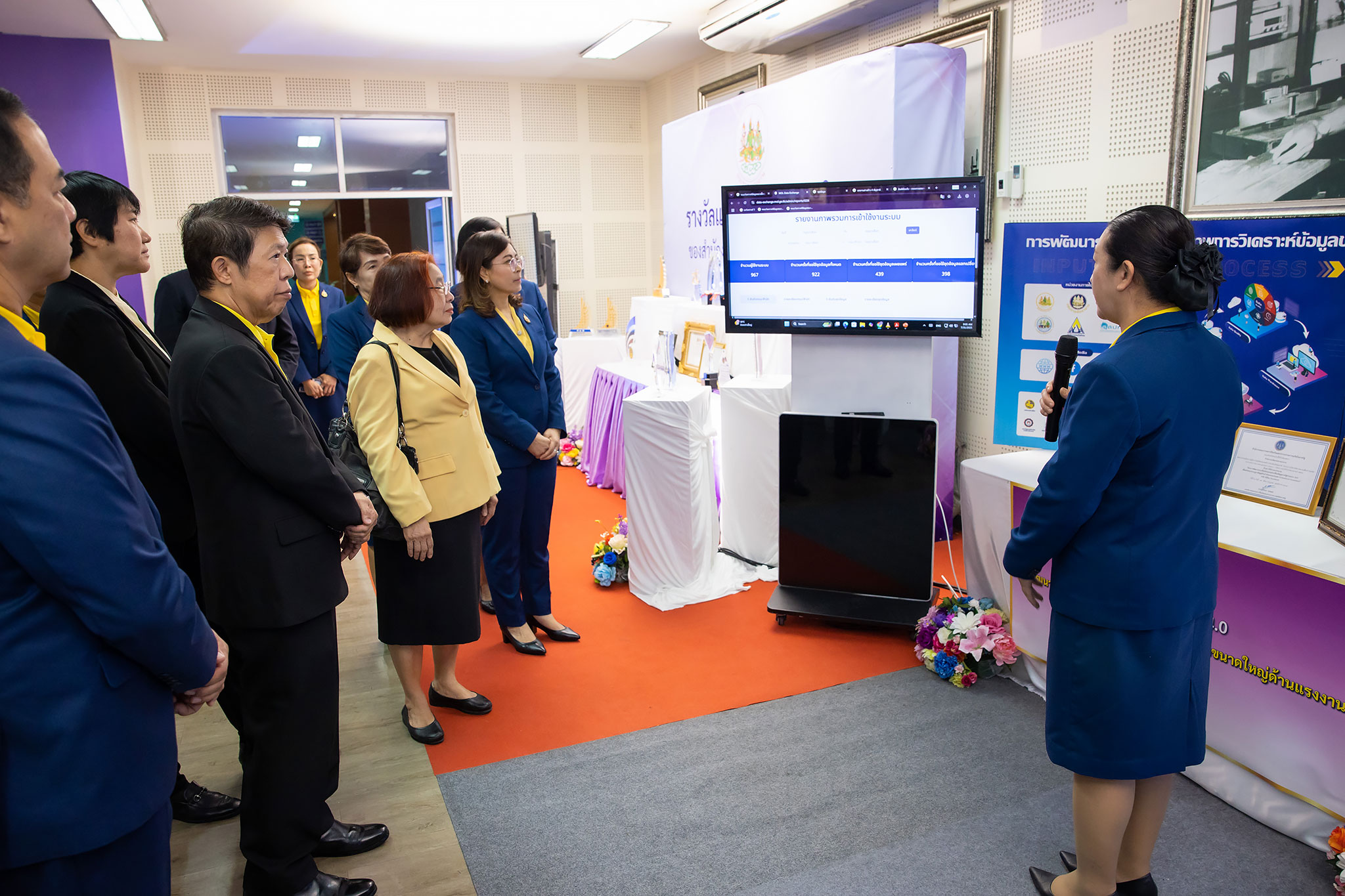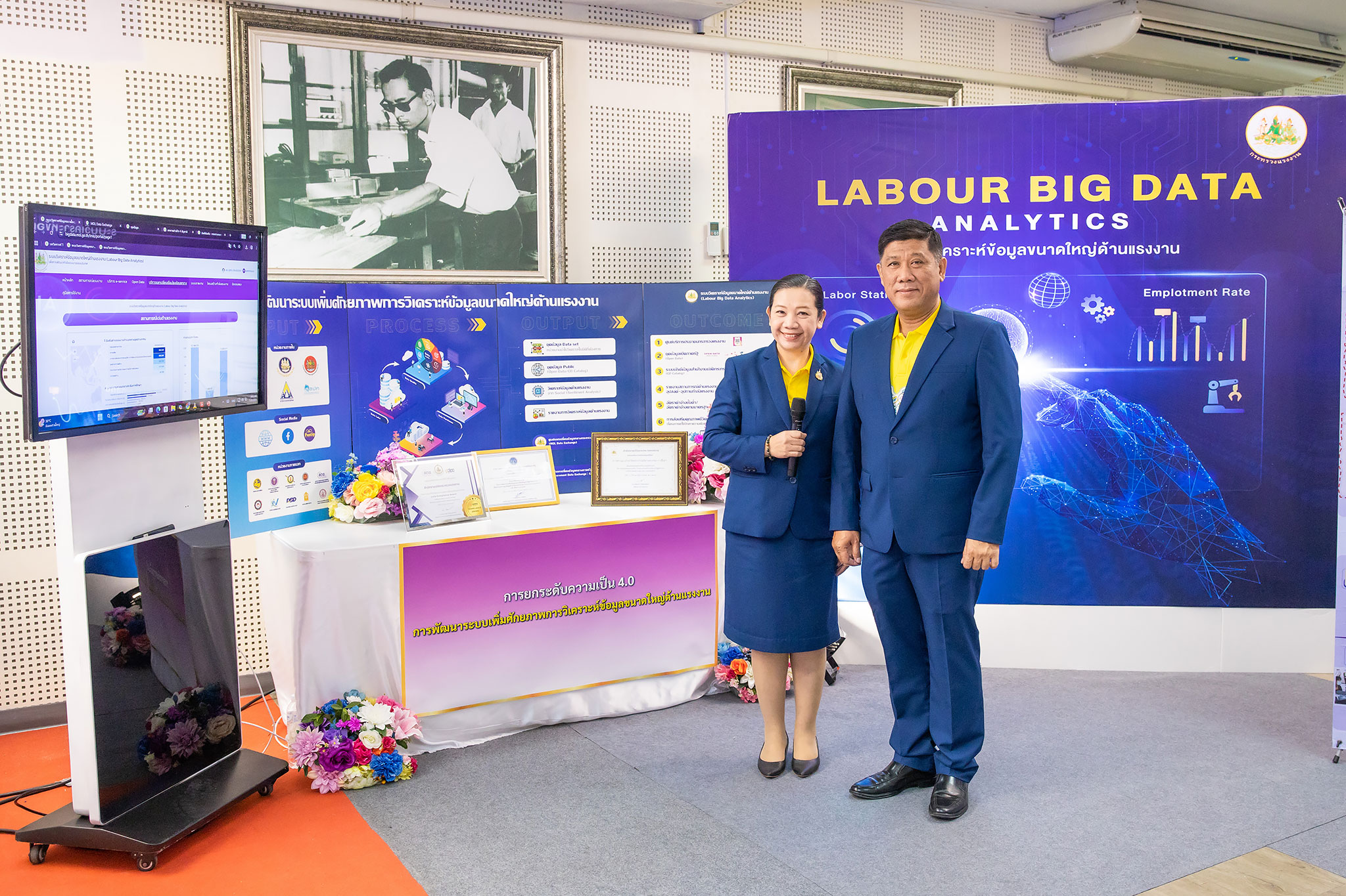 ในการนี้ รองปลัดกระทรวงแรงงาน ได้พาคณะผู้ตรวจประเมินฯ เยี่ยมชมบูทนิทรรศการ โดย สำนักงานปลัดกระทรวงแรงงานได้นำเสนอผลงานรางวัลเลิศรัฐ ประจำปี พ.ศ. 2568 สาขาคุณภาพการบริหารจัดการภาครัฐ 4.0 (PMQA 4.0) ได้แก่ ผลงานเด่นเรื่องที่ 1 การพัฒนาระบบเพิ่มศักยภาพการวิเคราะห์ข้อมูลขนาดใหญ่ด้านแรงงาน (Labour Big Data Analytics) ผลงานเด่นเรื่องที่ 2 การพัฒนาแนวทางการช่วยเหลือแรงงานไทยในประเทศอิสราเอล ผลงานเด่นเรื่องที่ 3 การพัฒนามาตรฐานการปฏิบัติงาน (SOP) การตรวจคัดกรองเบื้องต้นแรงงานบังคับ ผลงานเด่นเรื่องที่ 4 การพัฒนาระบบศูนย์บริการประชาชนกระทรวงแรงงาน (MOL Service Center System) และผลงานเด่นเรื่องที่ 5 (การยกระดับสู่การเป็นระบบราชการ 4.0 ในอนาคต) การพัฒนาคุณภาพชีวิตแรงงานอิสระ