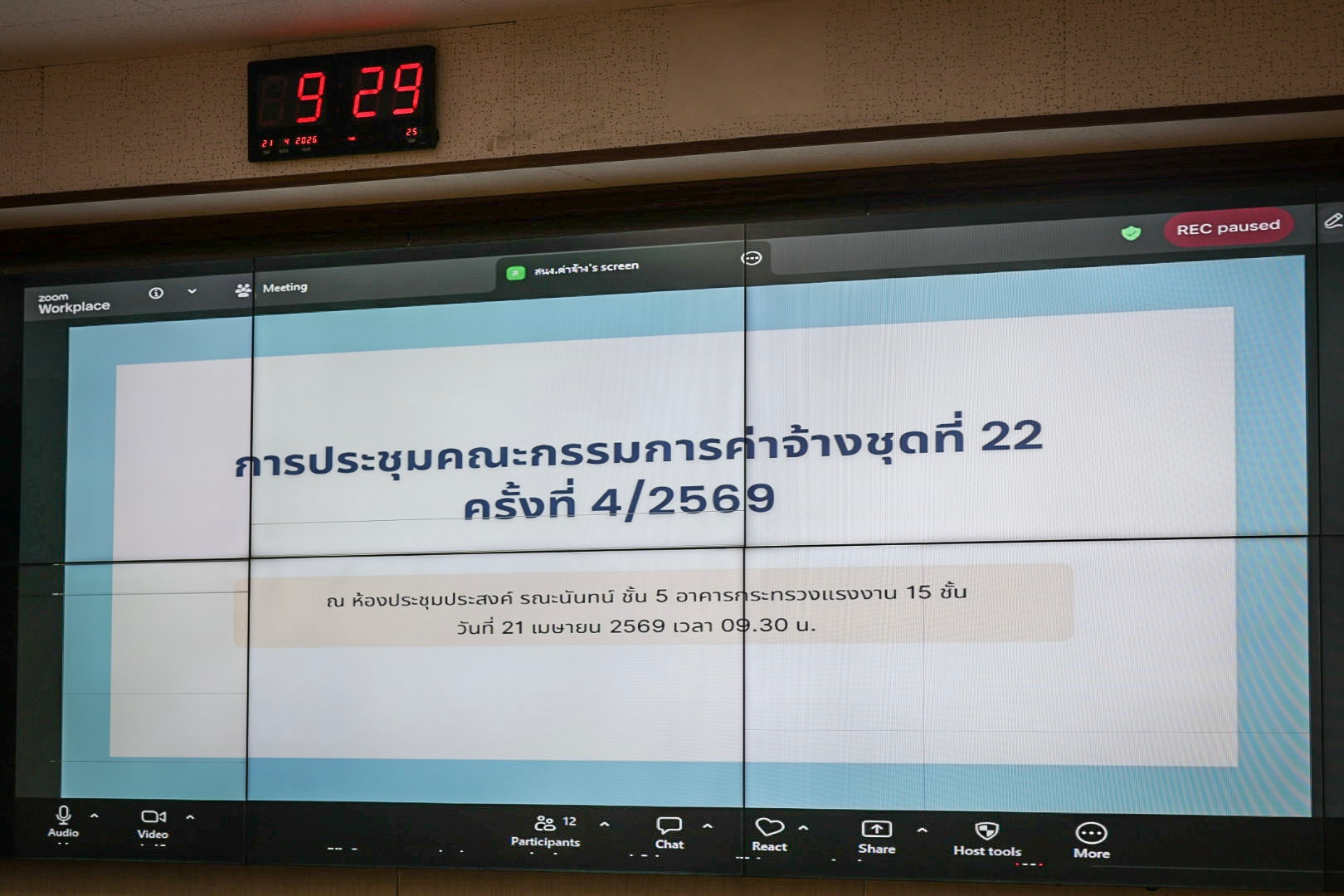 วันที่ 21 เมษายน 2569 เวลา 09.30 น. พันตำรวจโท วรรณพงษ์ คชรักษ์ ปลัดกระทรวง เป็นประธานการประชุมคณะกรรมการค่าจ้าง ครั้งที่ 4/2569 โดยมี เรือเอก สาโรจน์ คมคาย อธิบดีกรมสวัสดิการและคุ้มครองแรงงาน และคณะกรรมการค่าจ้าง ประกอบด้วย ผู้แทนจากฝ่ายนายจ้าง ผู้แทนจากฝ่ายลูกจ้าง และผู้แทนจากฝ่ายรัฐบาล เข้าร่วมการประชุม ณ ห้องประชุมประสงค์ รณะนันทน์ ชั้น 5 อาคารกระทรวงแรงงาน