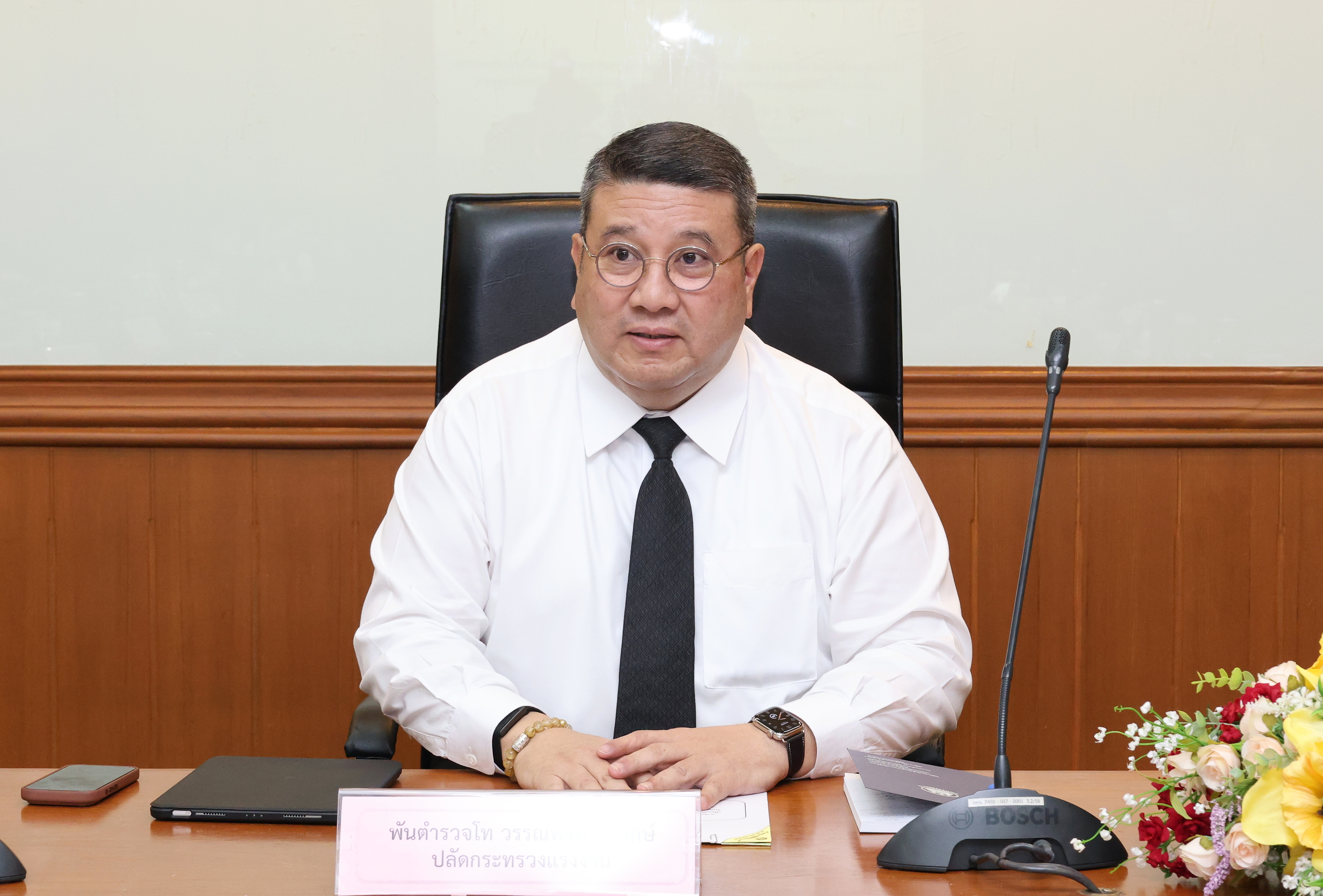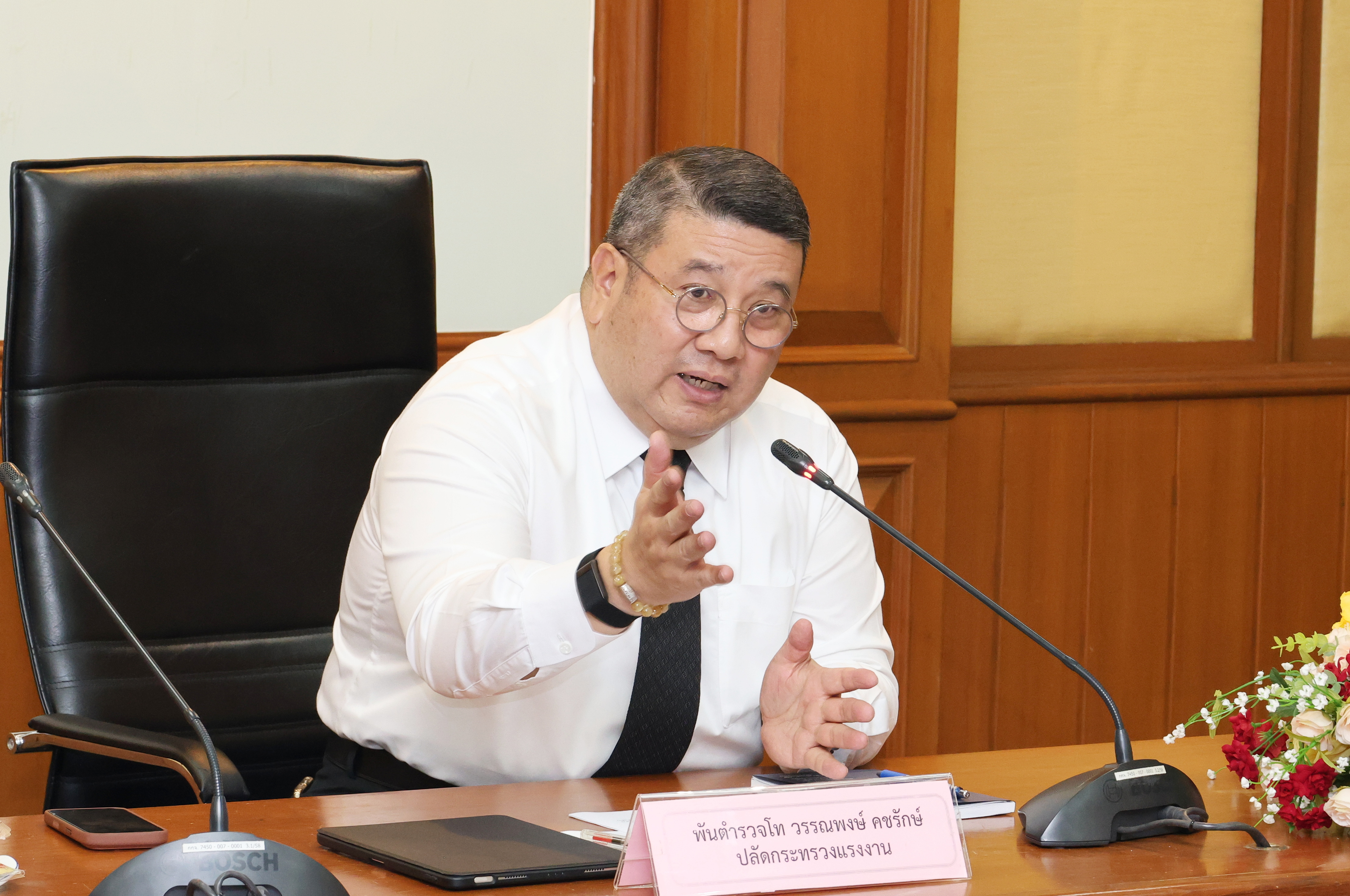 วันที่ 4 มีนาคม 2569 เวลา 09.30 น. พันตำรวจโท วรรณพงษ์ คชรักษ์ ปลัดกระทรวงแรงงาน เป็นประธานการประชุมเพื่อหารือการนำผู้ต้องกักออกมาทำงานในภาคเกษตร เพื่อแก้ไขปัญหาการขาดแคลนแรงงานสัญชาติกัมพูชา โดยมี นายวิชิต อินทรเจริญ รองอธิบดีกรมการจัดหางาน และหน่วยงานที่เกี่ยวข้อง เข้าร่วมการประชุมด้วย ณ ห้องประชุมเทียน อัชกุล ชั้น 10 กรมการจัดหางาน อาคารกระทรวงแรงงาน