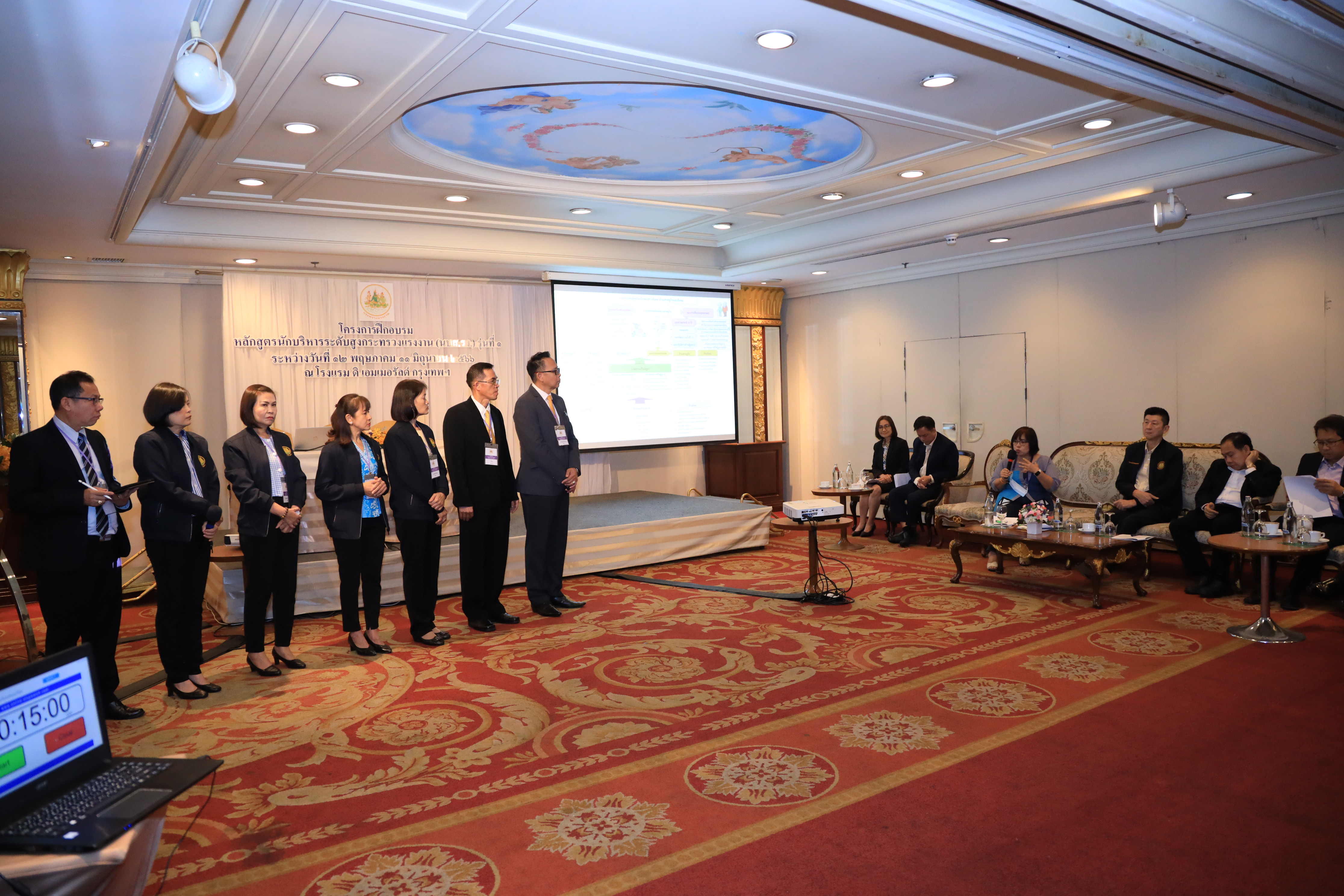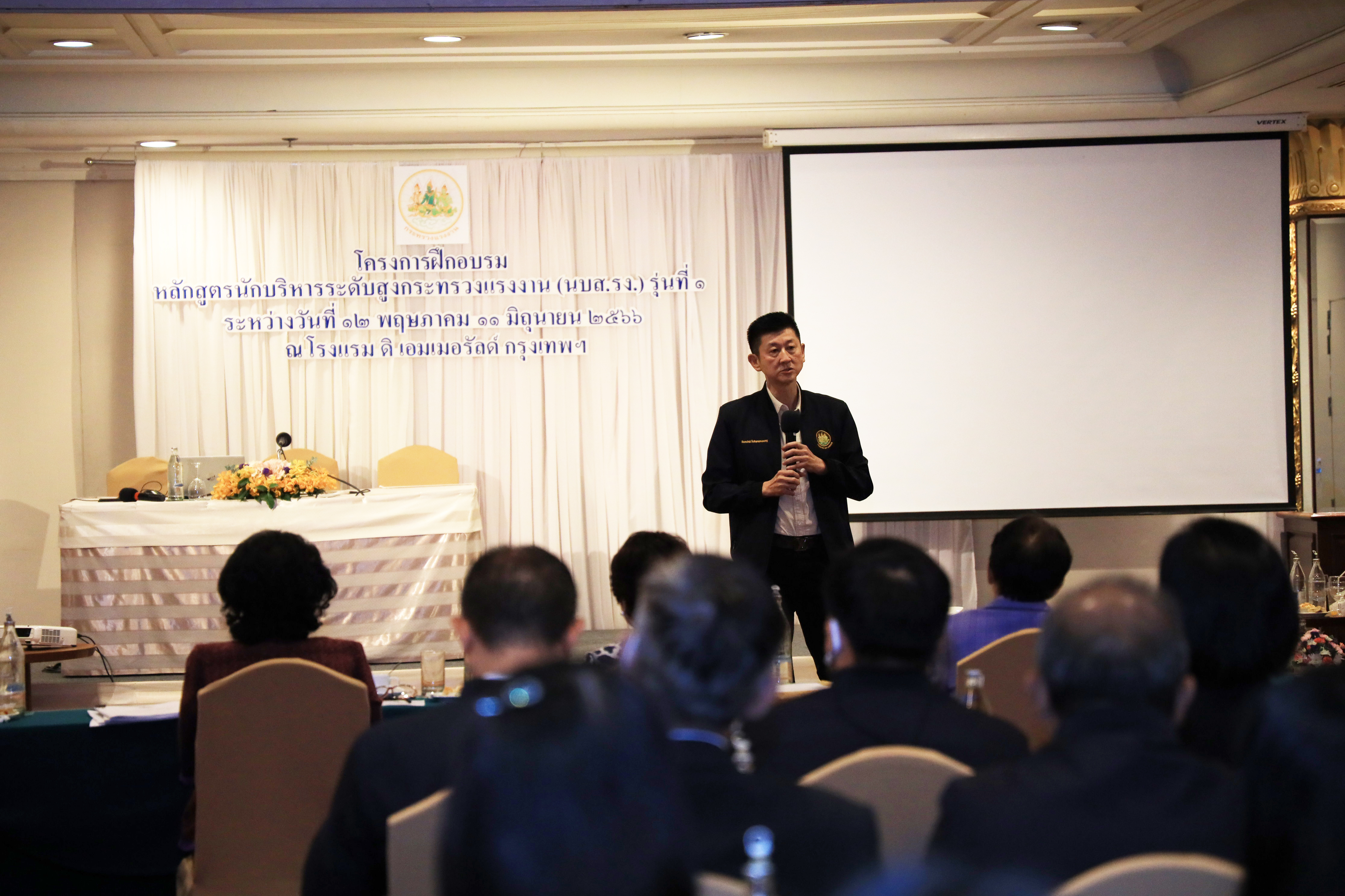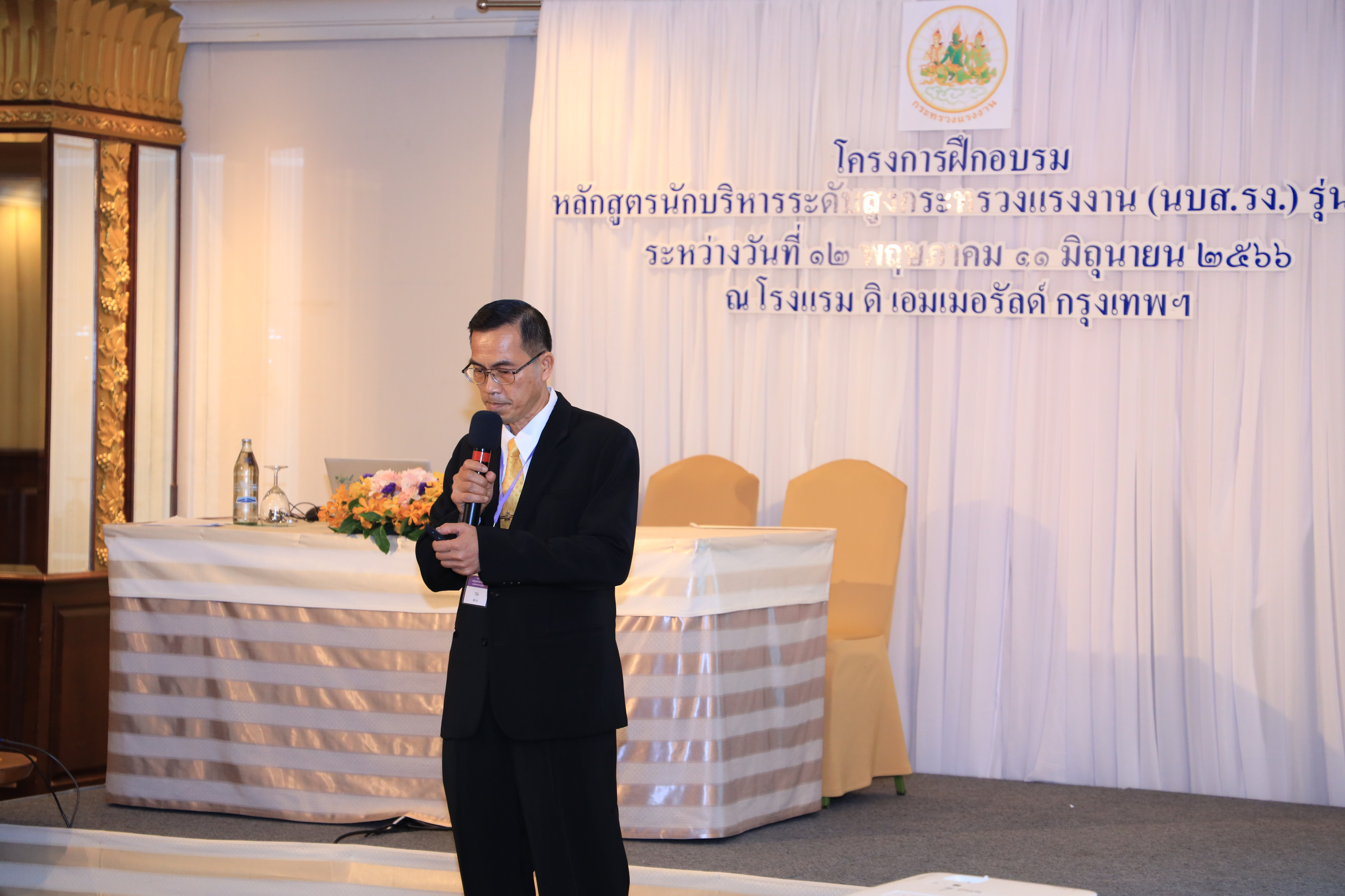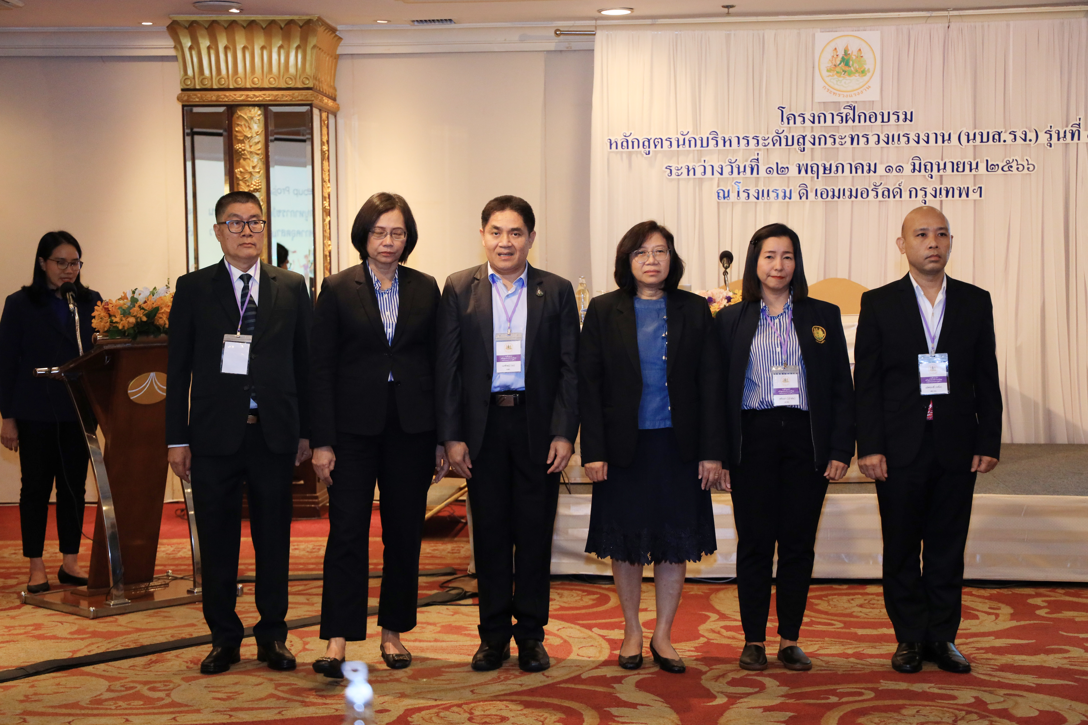 วันที่ 10 มิถุนายน 2566 เวลา 10.30 น. นายบุญชอบ สุทธมนัสวงษ์ ปลัดกระทรวงแรงงาน พร้อมด้วย นายประทีป ทรงลำยอง รองปลัดกระทรวงแรงงาน นางนภสร ทุ่งสุกใส ที่ปรึกษาวิชาการแรงงาน และผู้บริหารระดับสูงกระทรวงแรงงาน ร่วมรับฟังการนำเสนอผลงานกลุ่มของผู้เข้ารับการฝึกอบรมหลักสูตรนักบริหารระดับสูงกระทรวงแรงงาน (นบส.รง.) รุ่นที่ 1 ประจำปีงบประมาณ พ.ศ.2566 โดยมี ผู้ทรงคุณวุฒิจากหน่วยงานภายนอกเข้าร่วมรับฟังการนำเสนอผลงานด้วย ดังนี้ ดร.อริยะ ผู้อำนวยการวิทยาลัยนักบริหาร สำนักงาน กพ. พ.ต.ต.หญิง รมยง สุรกิจบรรหาร อดีตรองปลัดกระทรวงแรงงาน ดร.จูอะดี พงศ์มณีรัตน์ อดีตเลขาธิการสำนักงานมาตรฐานสินค้าเกษตรและอาหารแห่งชาติ นางสายพิรุณ น้อยศิริ อดีตผู้ตรวจราชการกระทรวงมหาดไทย นายทรงพล ชีวะปัญญาโรจน์ ผู้อำนวยการสถาบันคุ้มครองเงินฝาก และ ดร.ศุภชัย ศรีสุชาติ คณบดีคณะเศรษฐศาสตร์ มหาวิทยาลัยธรรมศาสตร์ ณ โรงแรมดิเอมเมอรัลด์ ถนนรัชดาภิเษก กรุงเทพมหานคร