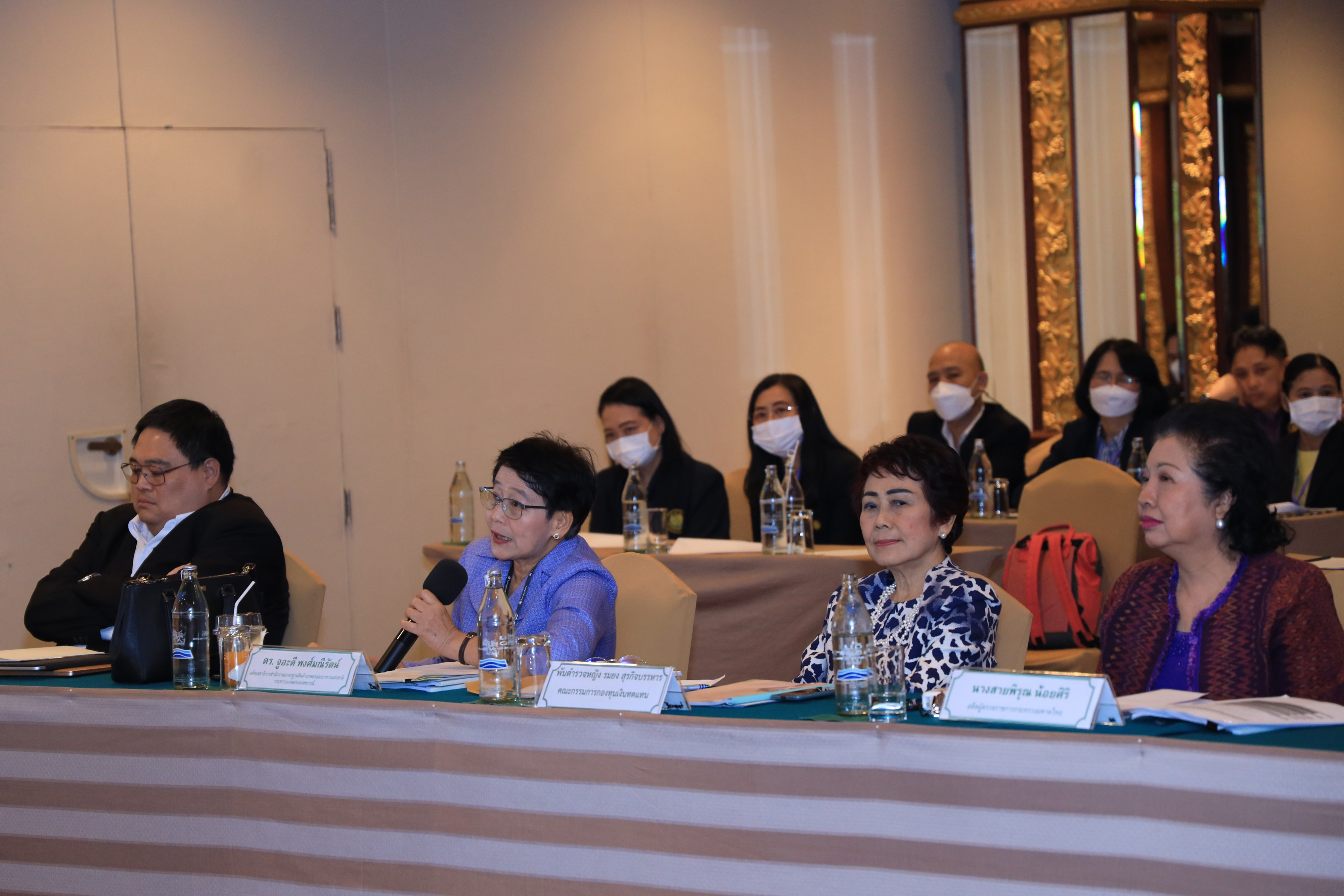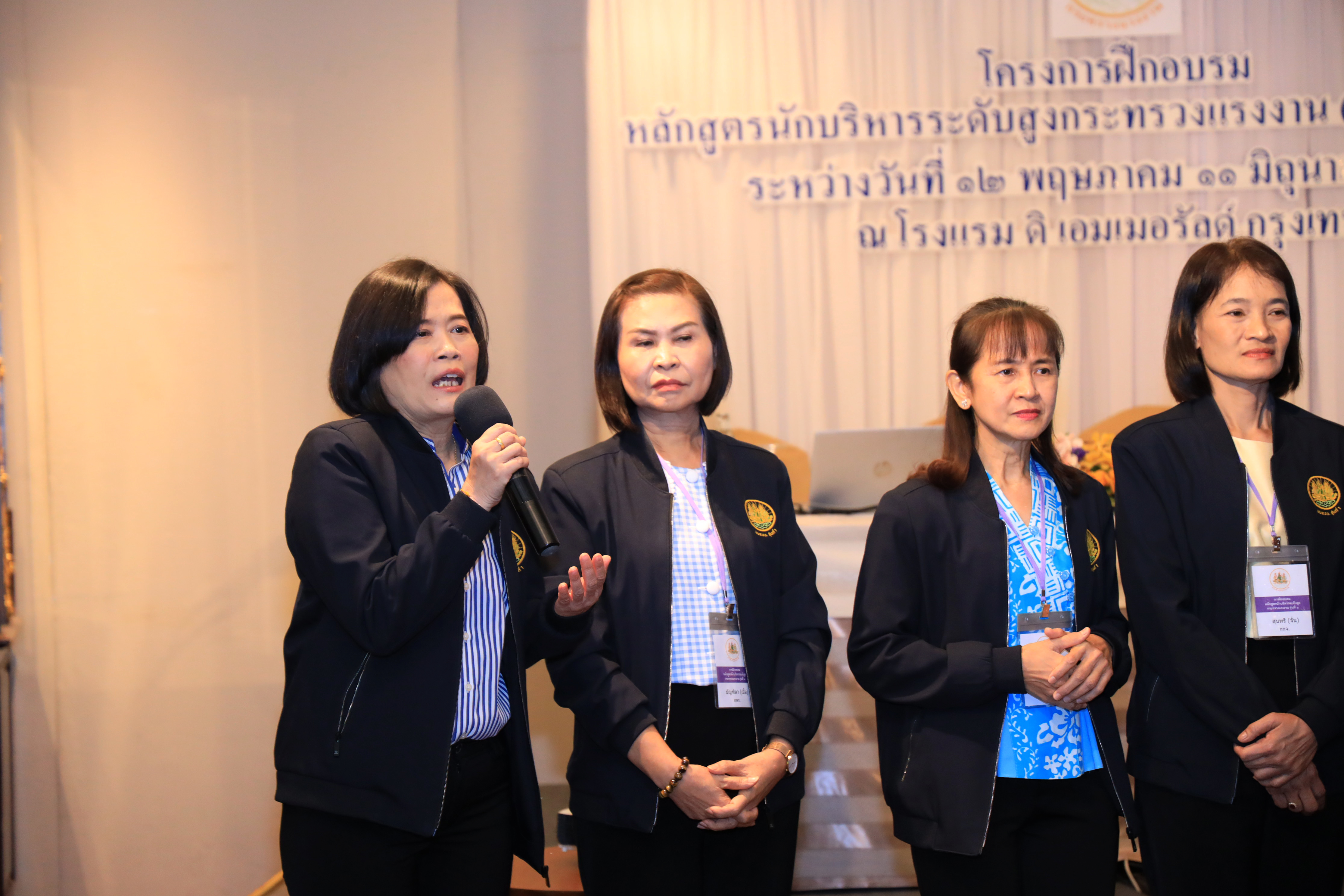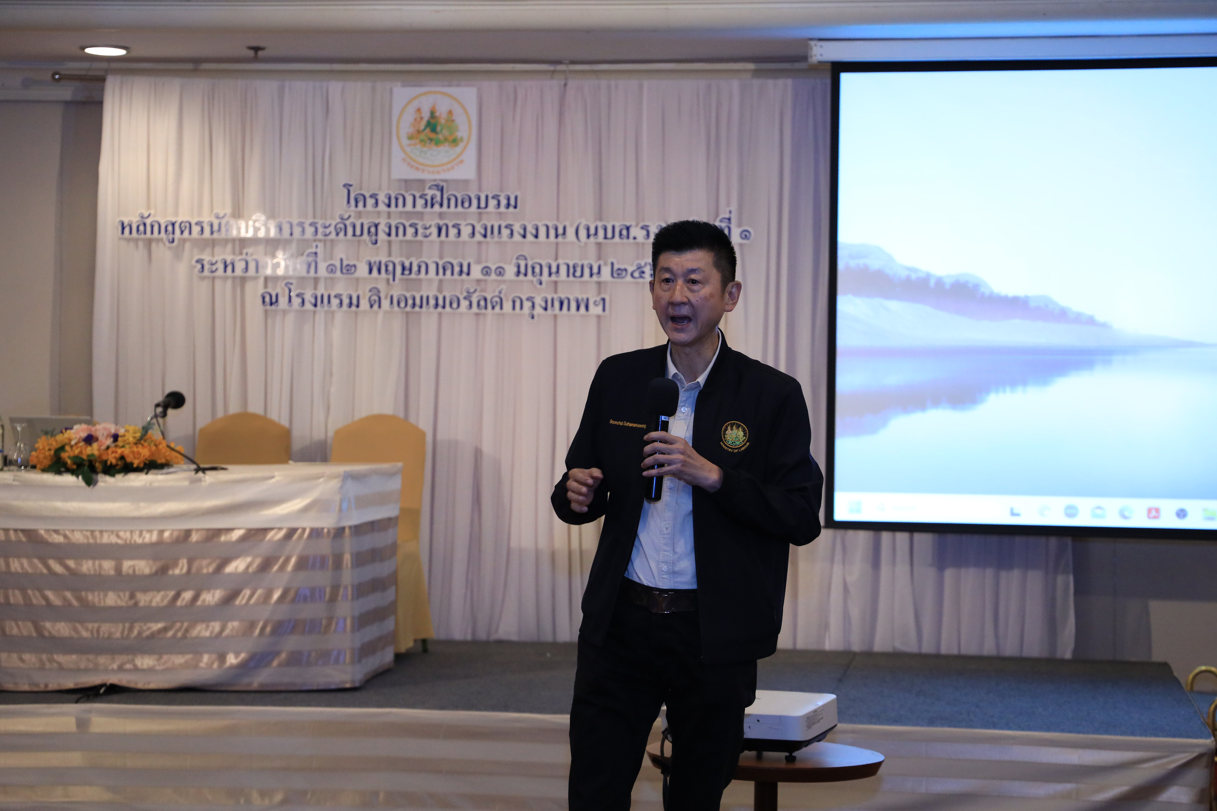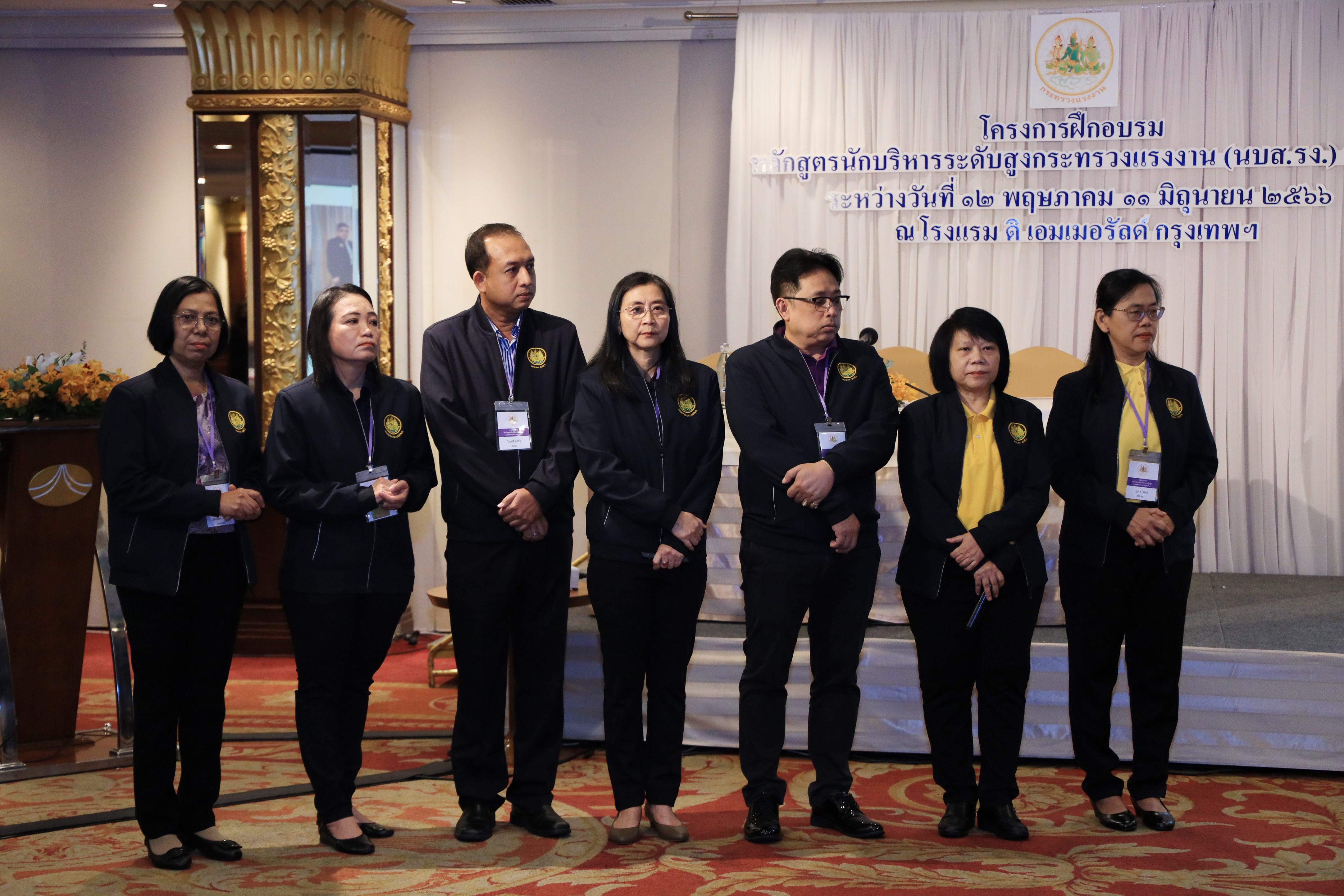 วันที่ 10 มิถุนายน 2566 เวลา 10.30 น. นายบุญชอบ สุทธมนัสวงษ์ ปลัดกระทรวงแรงงาน พร้อมด้วย นายประทีป ทรงลำยอง รองปลัดกระทรวงแรงงาน นางนภสร ทุ่งสุกใส ที่ปรึกษาวิชาการแรงงาน และผู้บริหารระดับสูงกระทรวงแรงงาน ร่วมรับฟังการนำเสนอผลงานกลุ่มของผู้เข้ารับการฝึกอบรมหลักสูตรนักบริหารระดับสูงกระทรวงแรงงาน (นบส.รง.) รุ่นที่ 1 ประจำปีงบประมาณ พ.ศ.2566 โดยมี ผู้ทรงคุณวุฒิจากหน่วยงานภายนอกเข้าร่วมรับฟังการนำเสนอผลงานด้วย ดังนี้ ดร.อริยะ ผู้อำนวยการวิทยาลัยนักบริหาร สำนักงาน กพ. พ.ต.ต.หญิง รมยง สุรกิจบรรหาร อดีตรองปลัดกระทรวงแรงงาน ดร.จูอะดี พงศ์มณีรัตน์ อดีตเลขาธิการสำนักงานมาตรฐานสินค้าเกษตรและอาหารแห่งชาติ นางสายพิรุณ น้อยศิริ อดีตผู้ตรวจราชการกระทรวงมหาดไทย นายทรงพล ชีวะปัญญาโรจน์ ผู้อำนวยการสถาบันคุ้มครองเงินฝาก และ ดร.ศุภชัย ศรีสุชาติ คณบดีคณะเศรษฐศาสตร์ มหาวิทยาลัยธรรมศาสตร์ ณ โรงแรมดิเอมเมอรัลด์ ถนนรัชดาภิเษก กรุงเทพมหานคร